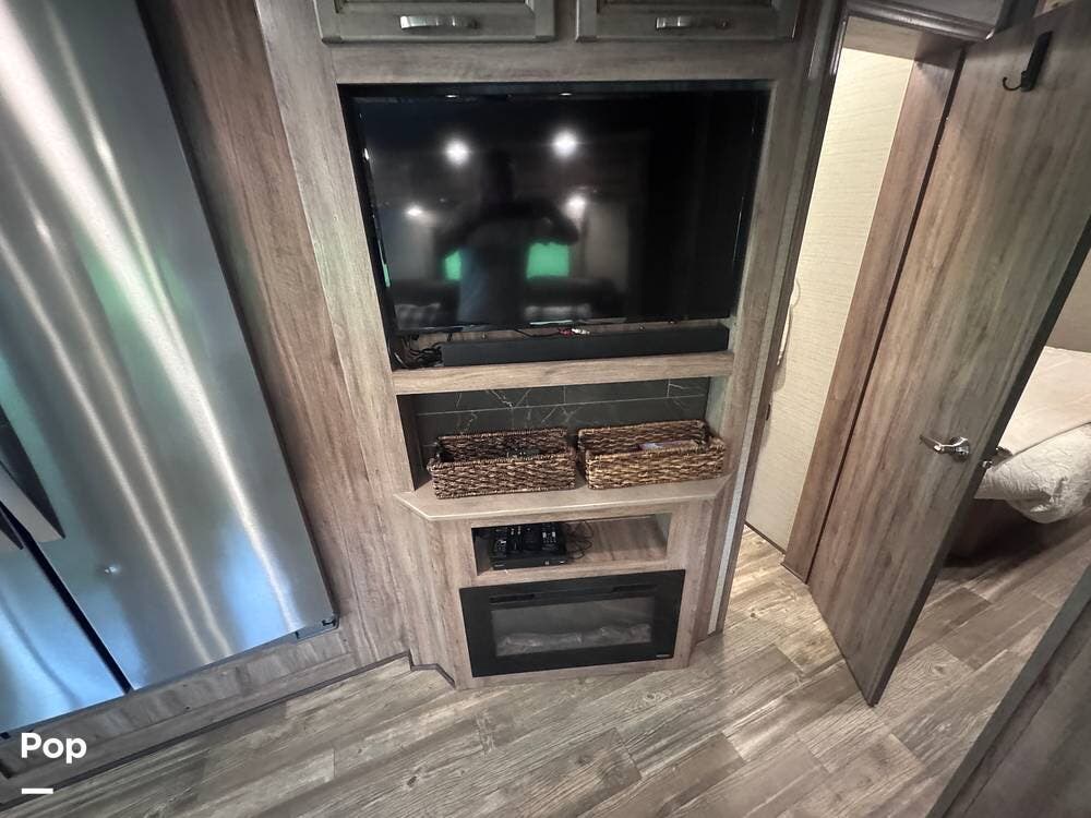 Enjoy 1.5 baths, a cozy fireplace, 3 TVs, a washer/dryer combo, and a residential fridge/freezer. The kitchen includes a stove, oven, microwave, and an exterior quick connect for your BBQ.