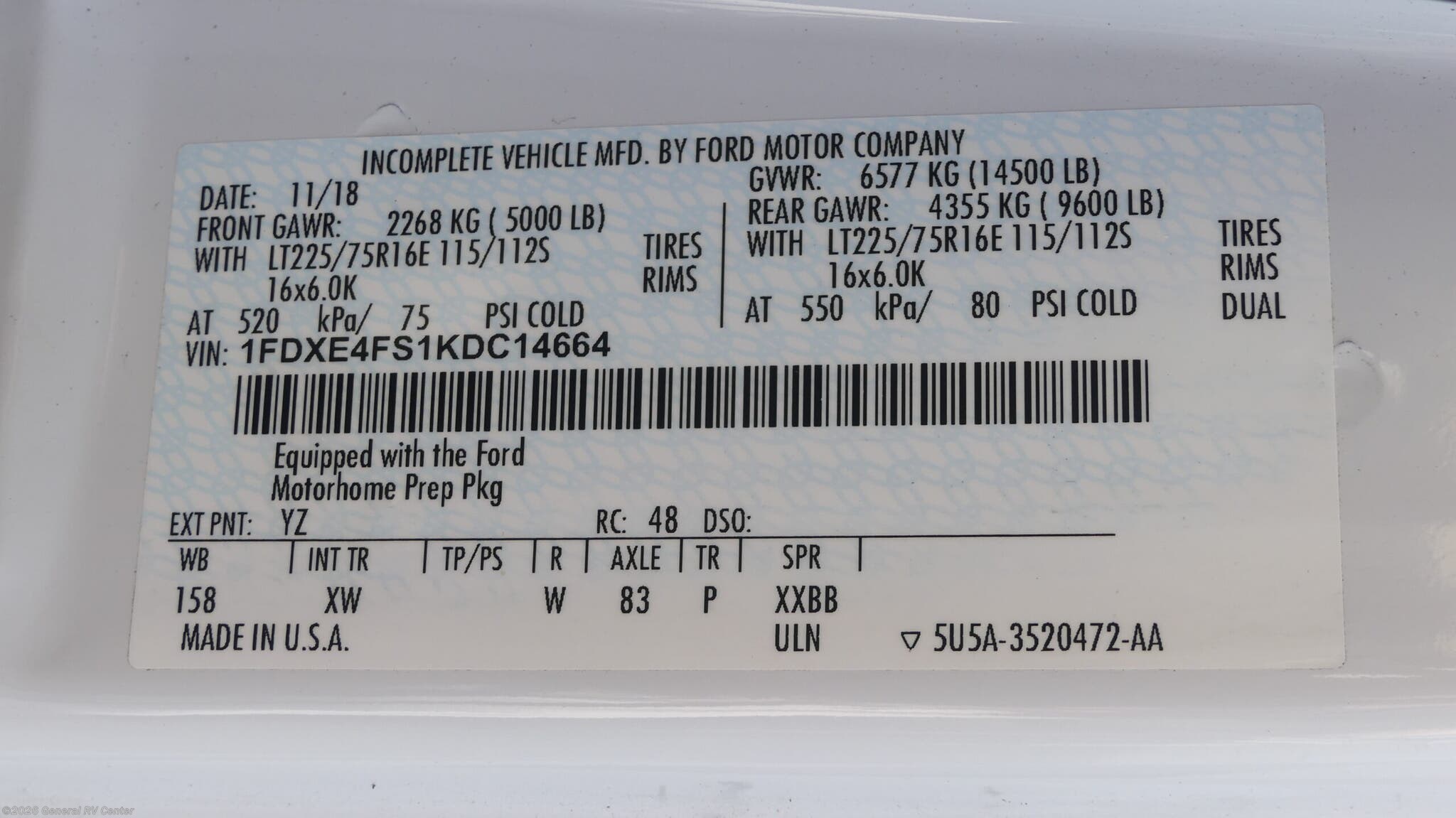 - VIN1FDXE4FS1KDC14664