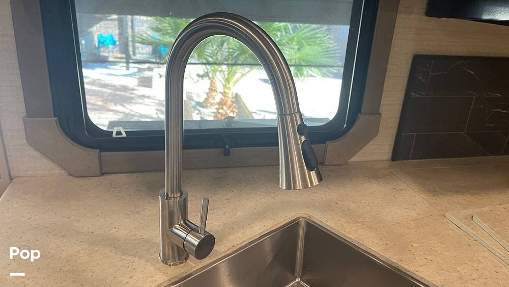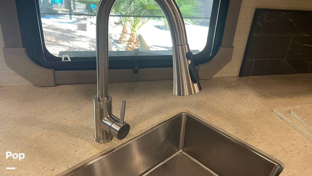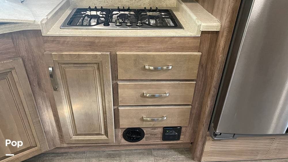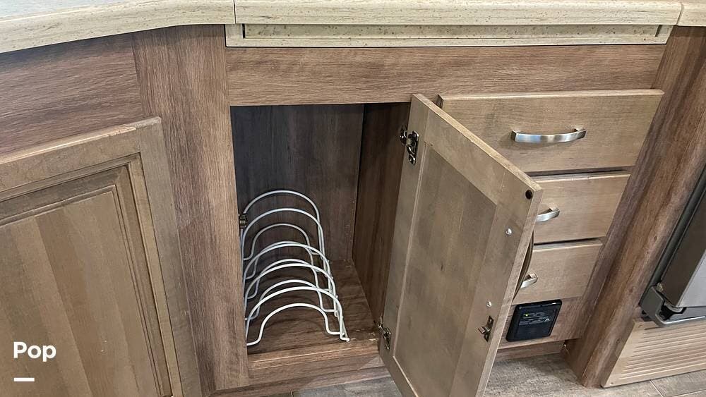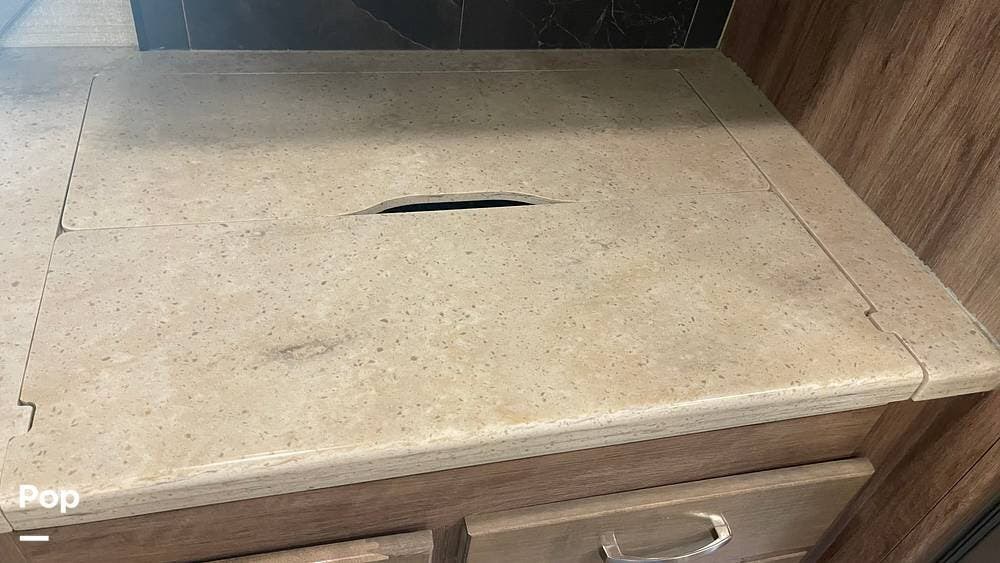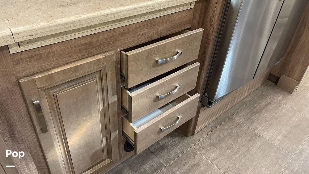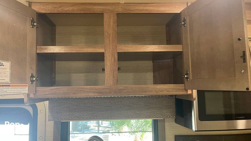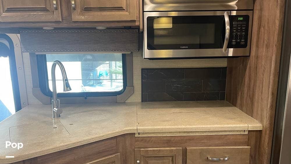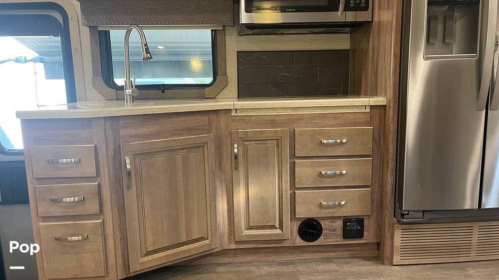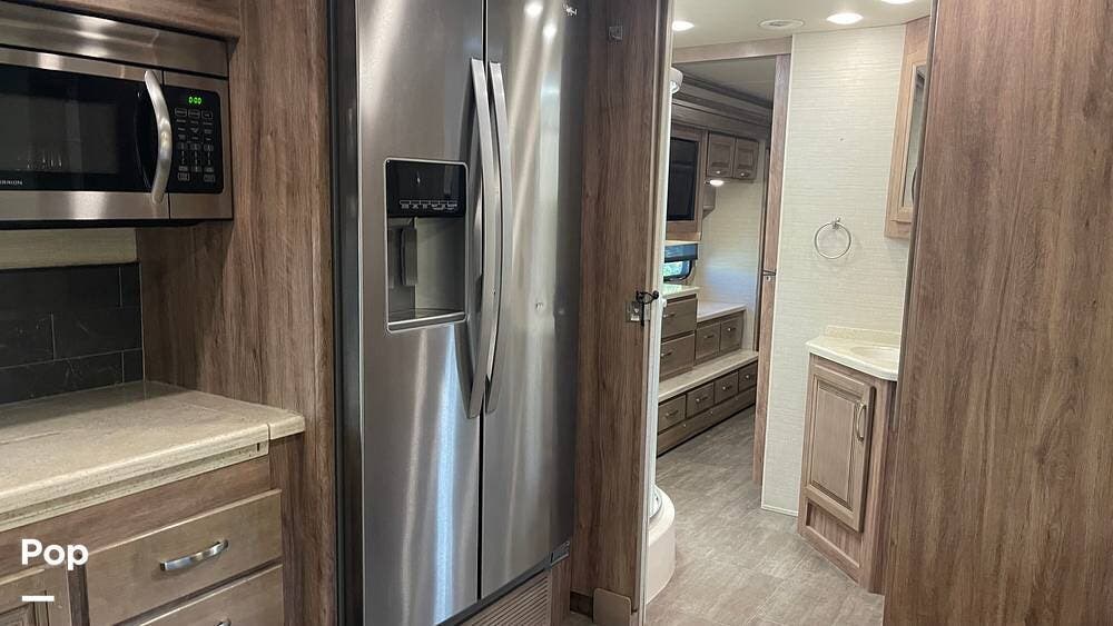 Complete with a fully equipped kitchen, a full-size Whirlpool Refrigerator with ice maker, a 3-burner cooktop, a microwave convection oven, a pantry, and a water softener system - all you need for home-like cooking/enjoyment on the road.