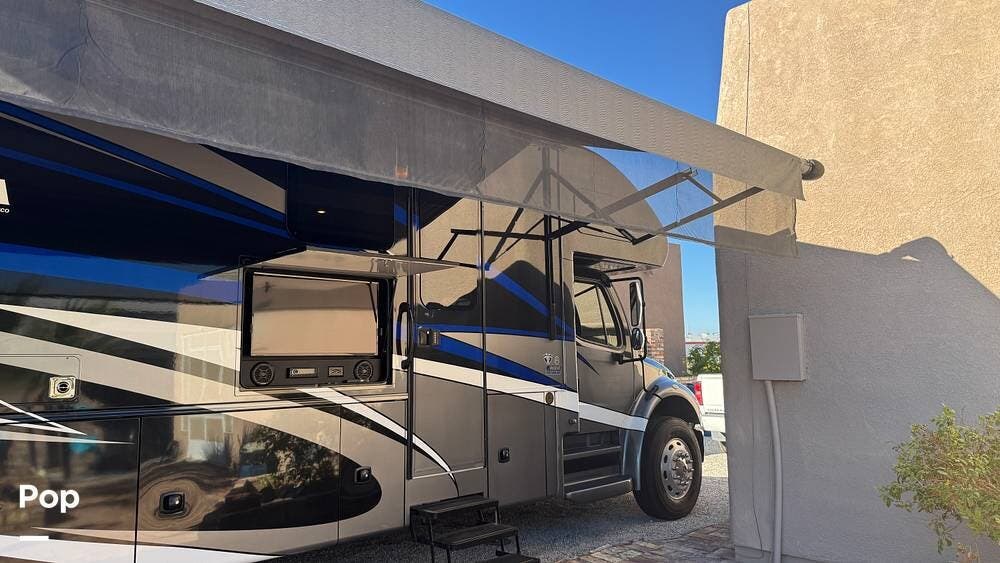 This one-owner, unbelievable coach has several upgrades, including a Shade Pro Screen that attaches to the awning, protective coating on exterior and interior surfaces, a RoadMaster flat-towing system, and a hitch-mounted lighted flag pole.