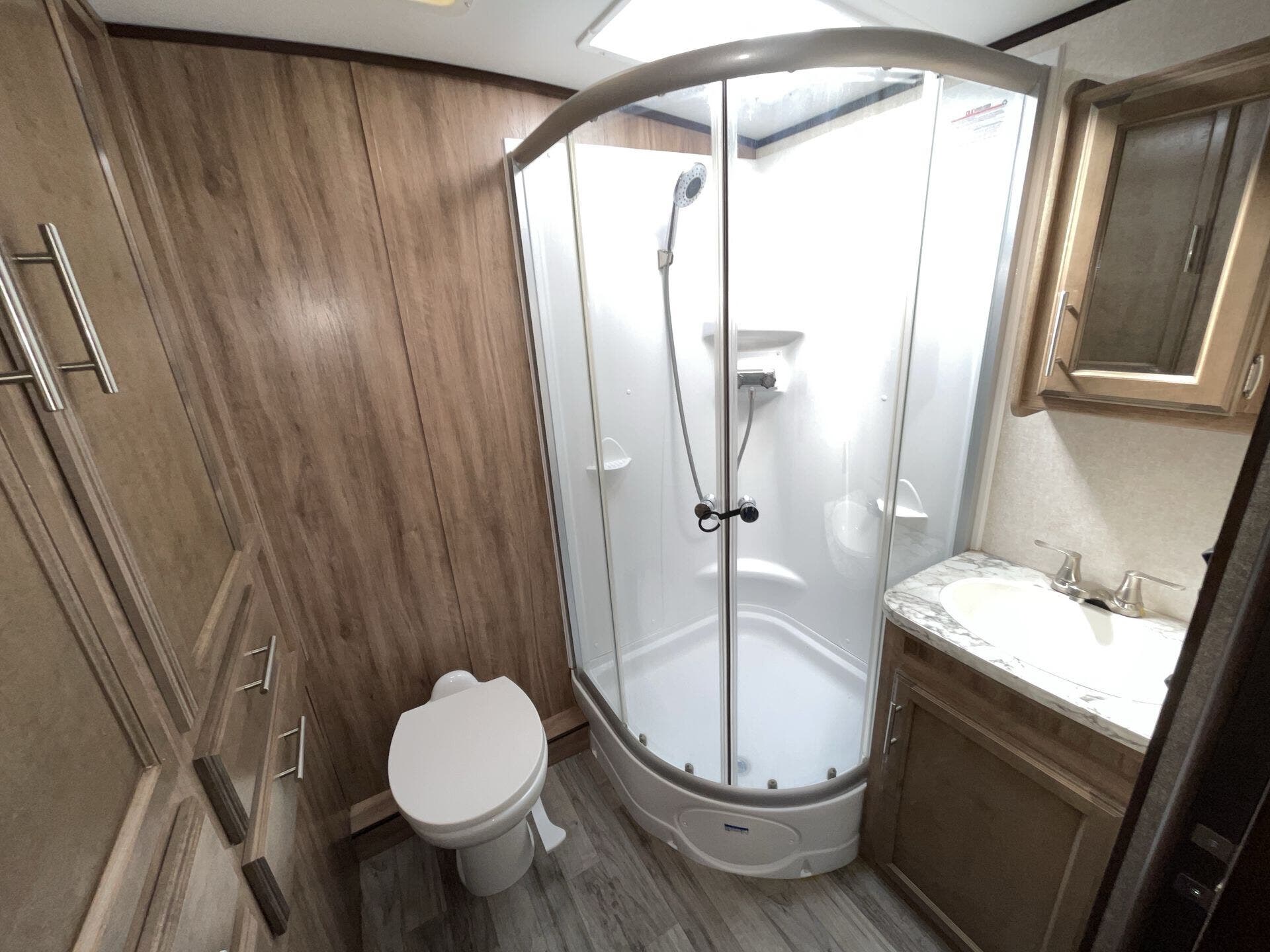 Medicine Cabinet, Queen Bed, Shower, Theater Seating, Toilet