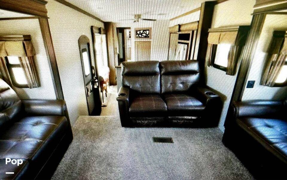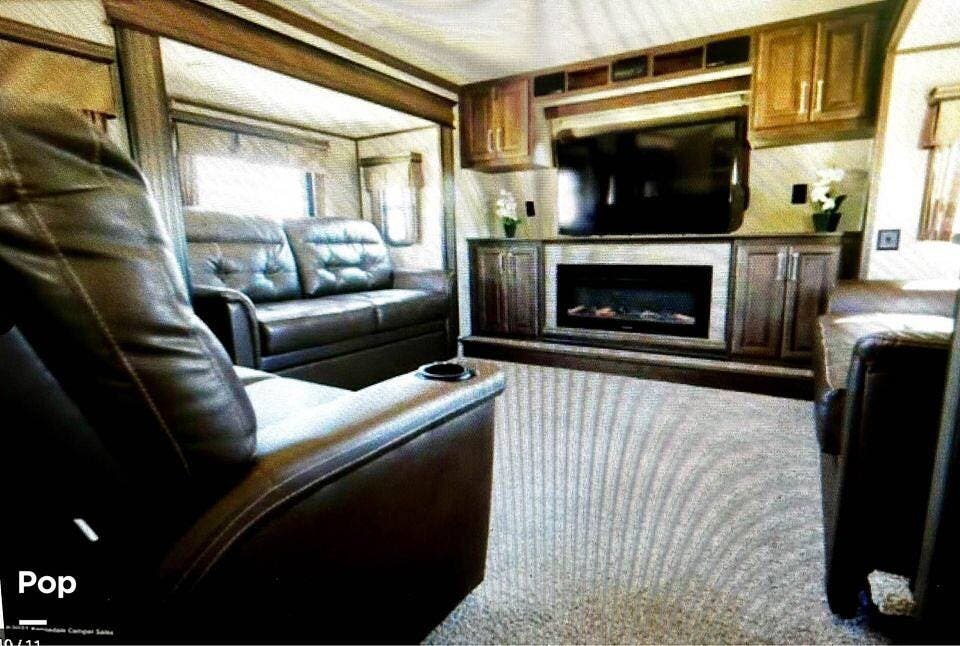 The Front Living room layout provides Two Sofa/Sleepers and Two Theater Seats. Sit back and enjoy the Entertainment Center with a large flat-screen TV and fireplace.