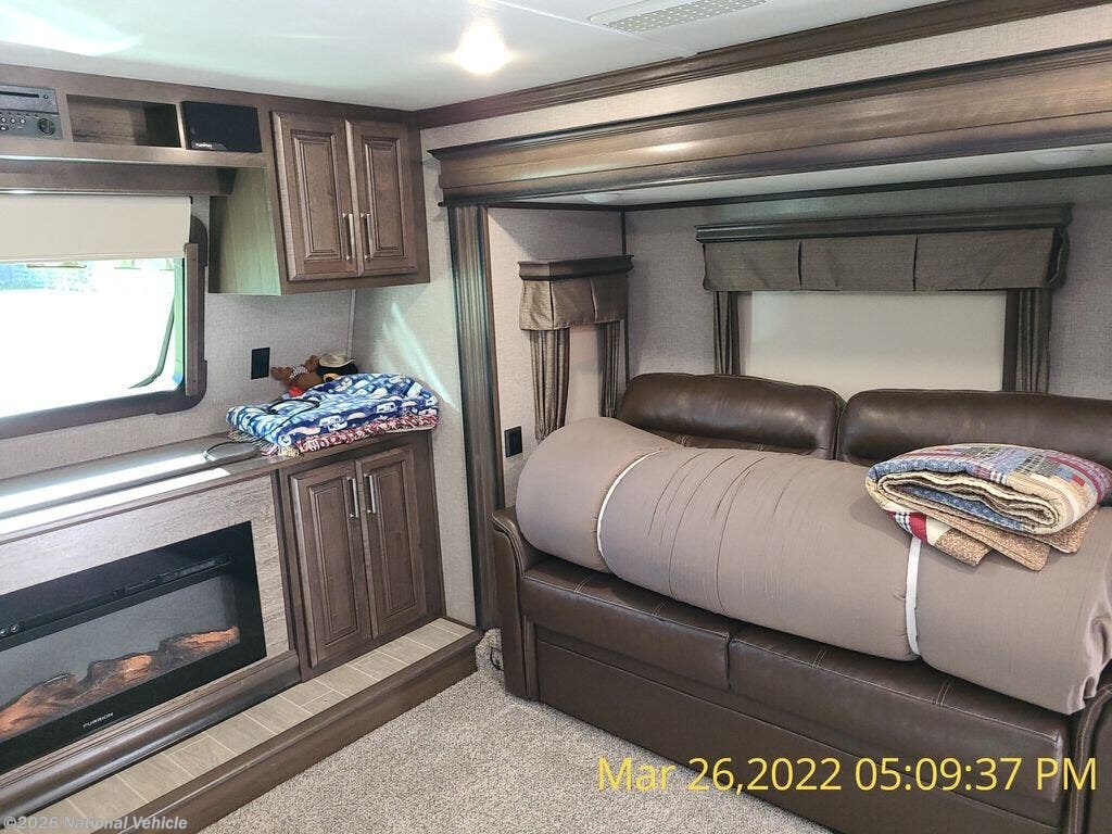 Experience true residential comfort in this beautifully maintained Keystone Alpine 3701FL. This highly sought-after front living floorplan offers spacious design, upscale finishes, and thoughtful separation of living spaces - ideal for extended travel or full-time living.