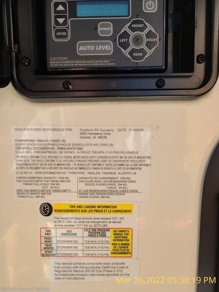 Request More Info on this 2019 Keystone Alpine 3701FL Offered for sale by National Vehicle