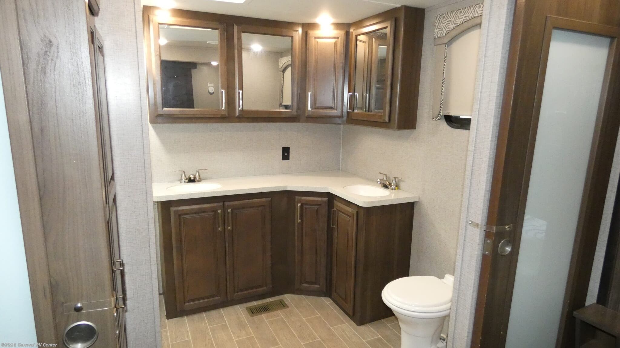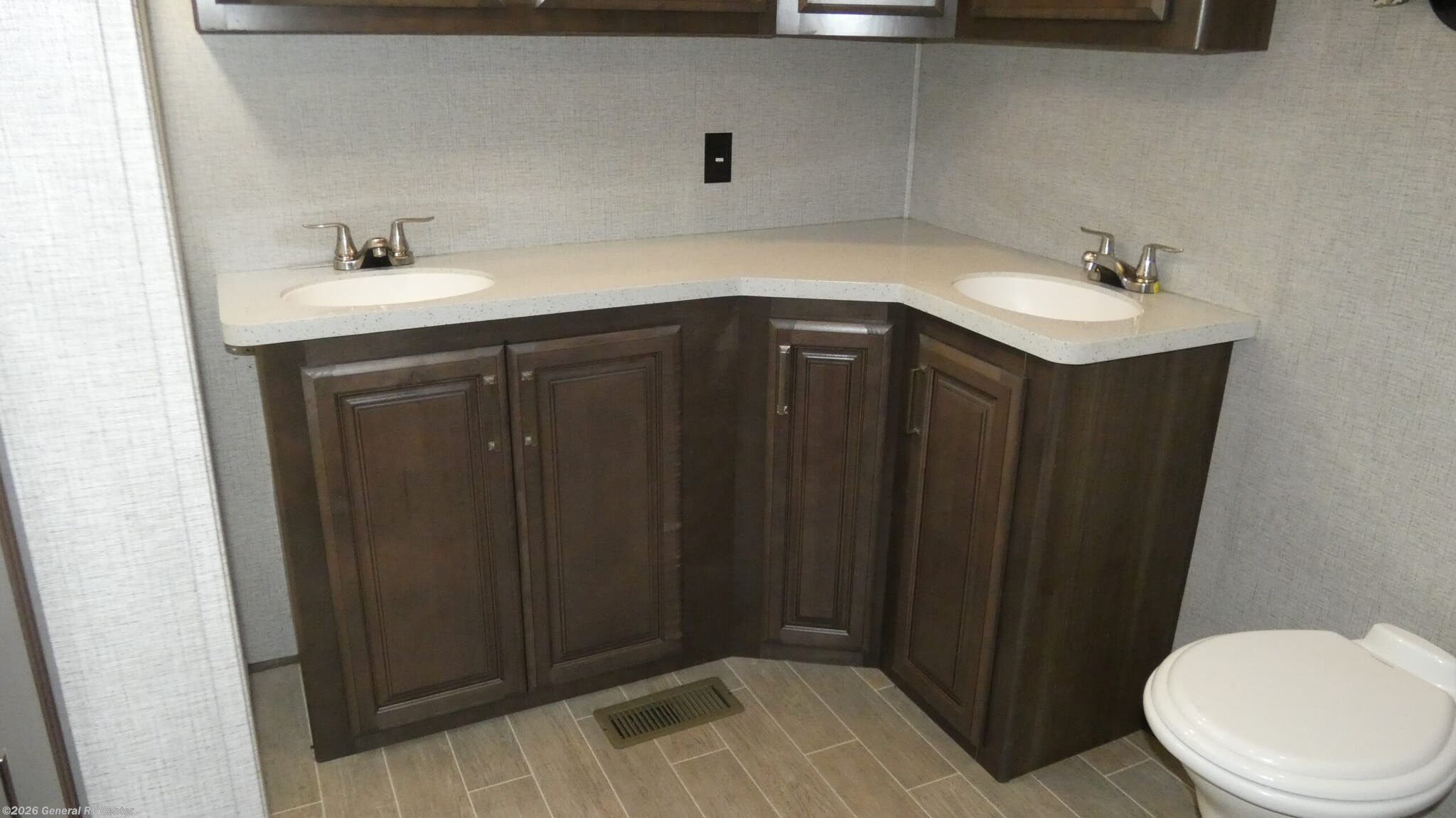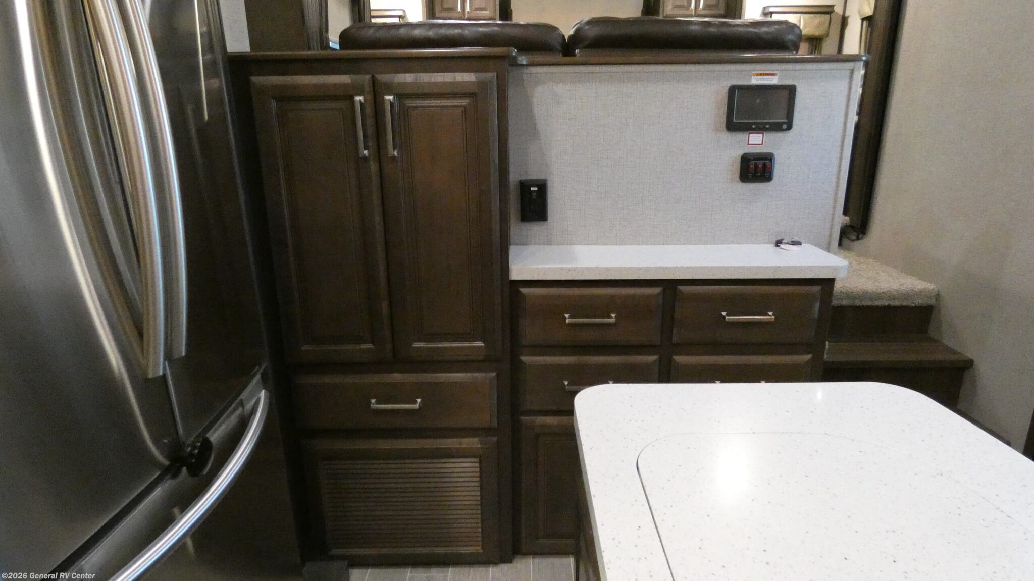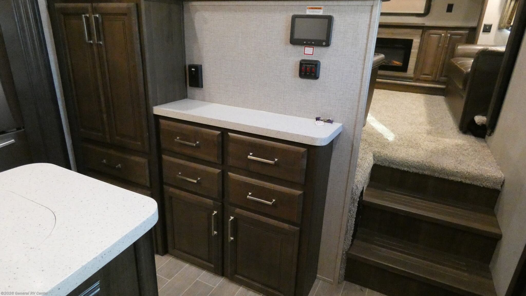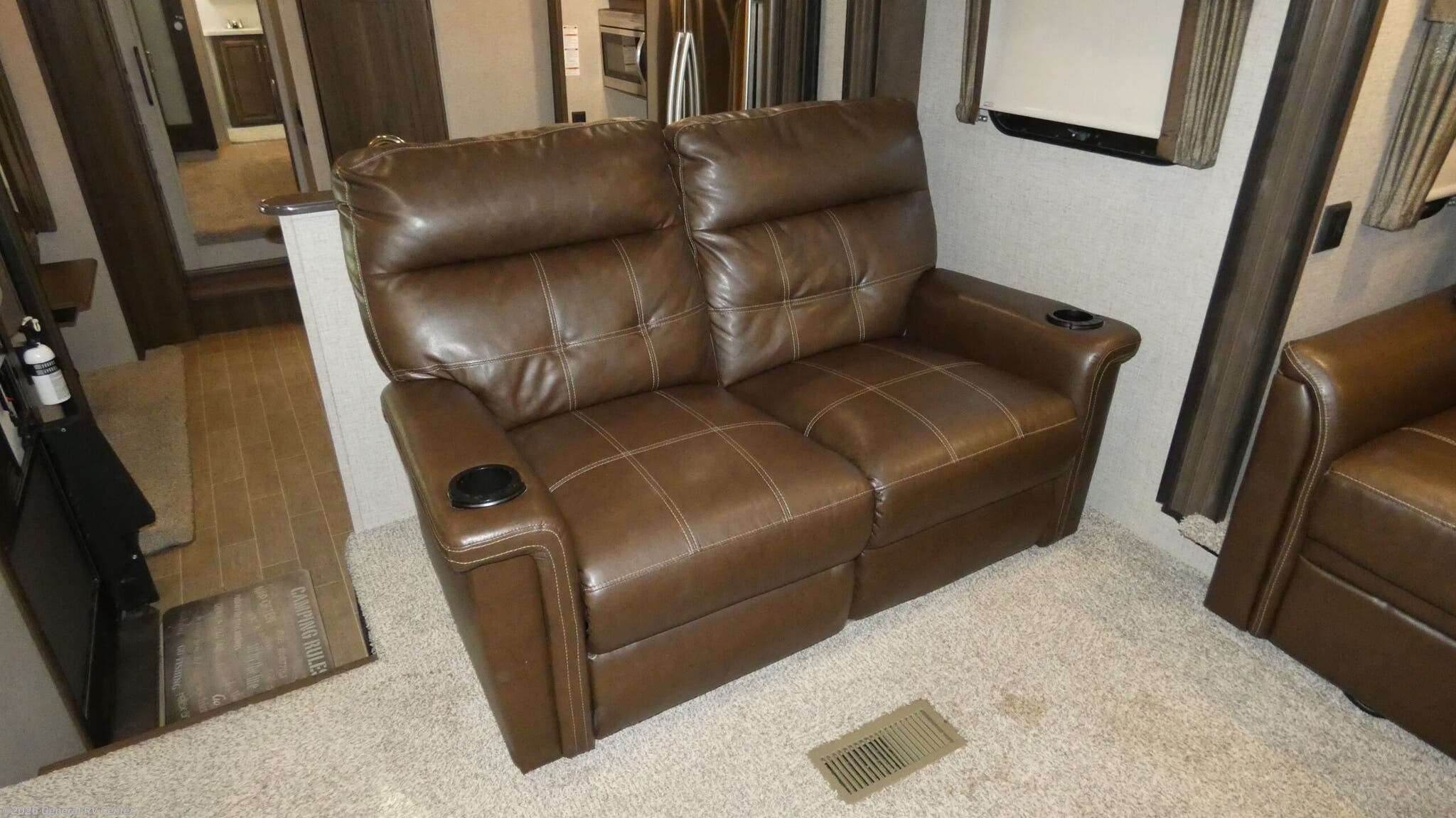 **Keystone RV Alpine fifth wheel 3701FL highlights:** - Kitchen Island - Five Slides - Full and Half Bath - Two Electric Awnings - Separate Living Room Come see just how fun and easy camping can be with this luxurious five-slide Alpine fifth wheel by Keystone RV. Getting ready for the day is easy with a large master bathroom that has two sinks, plenty of counter space, and a shower, and the second half bathroom is conveniently located just off of the kitchen. In the kitchen area, you will find dual opposing slides and all of the amenities you need to fix your favorite meals, such as a convection microwave, a two-burner range, and an 18 cubic foot refrigerator. Step up to the front living room where you will find two tri-fold sofa sleepers, theater seats, a fireplace, and an entertainment center with a 50" LED TV. When you choose an Alpine fifth wheel by Keystone RV, you are choosing luxury. The Whisper Air System is the quietest cooling system ever developed, and it keeps your RV at the perfect interior temperature no matter what the outside weather may bring. Every aspect of the Alpine has been designed to enhance your full-time camping experience, like the oversized pass-through storage which is the industry's largest at roughly 200 cubic feet, and the central vacuum system will help you keep your Alpine looking its best throughout each adventure. You will also love the Furrion RV Chef Collection that gives you the ability to cook with precision and consistency as you travel the country and helps you provide your guests with a higher level of cuisine during each camping trip.