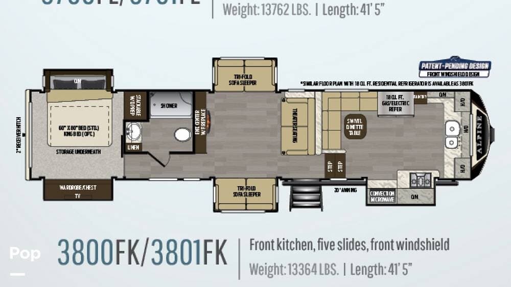 Request More Info on this 2019 Keystone Alpine 3800FK Offered for sale by Pop RVs