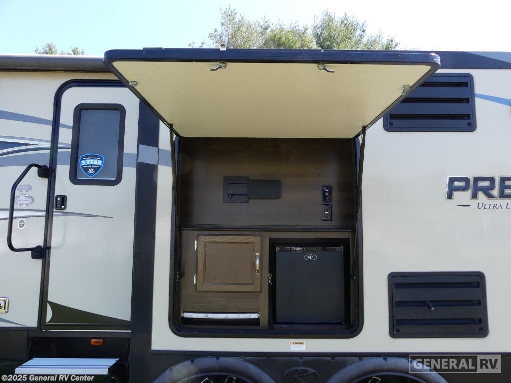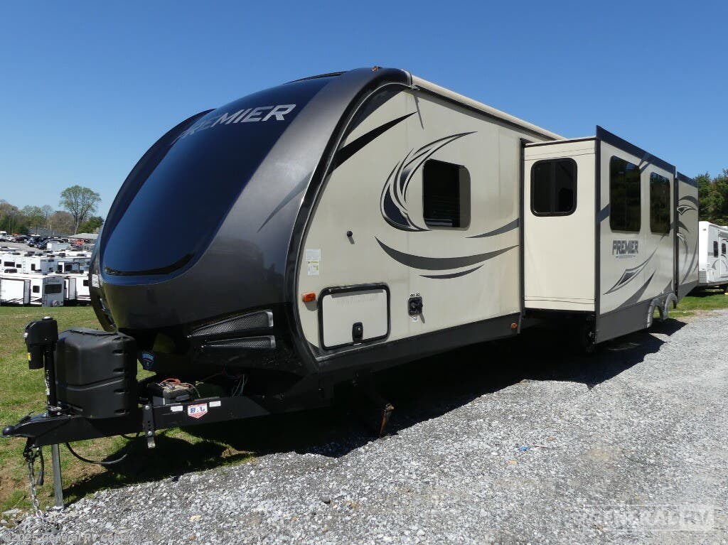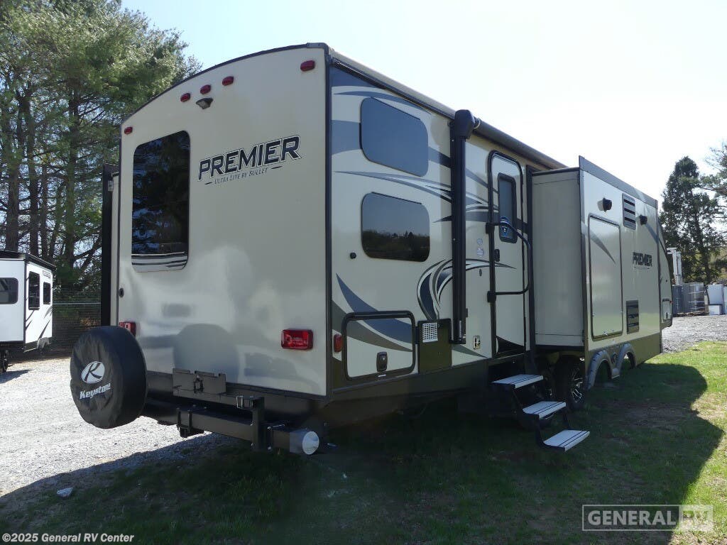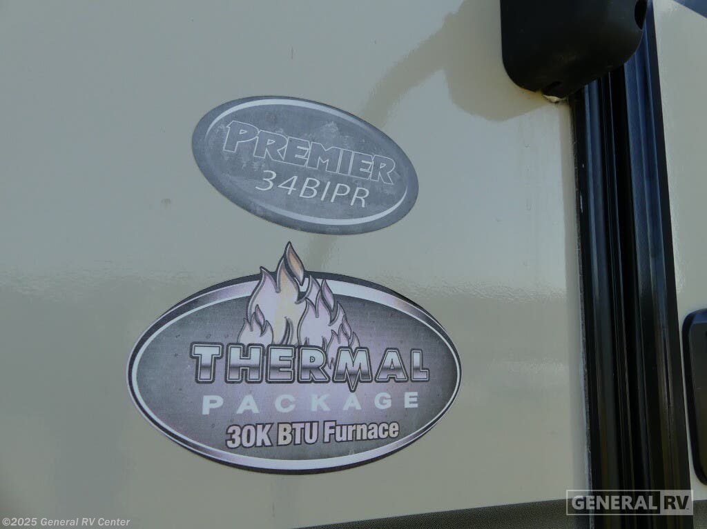 Keystone Premier Ultra Lite 34BIPR travel trailer highlights: Outdoor Entertainment Master Suite Private Bunkhouse Kitchen Island Three Slides If you want a unit that is both functional and elegant, then you need this Premier Ultra Lite travel trailer. Every inch of this unit is kept open and spacious because of the three slides that have been added, and because this unit has both a private bunkhouse and a private master suite, it is the perfect choice for those who enjoy traveling with guests. Everyone will love getting together in the living area in the evenings to take in the delicious aromas coming from the kitchen island. Because of the innovative and modern approach that Keystone has taken with the construction of the Premier travel trailer, you receive a unit that is both functional and comfortable. The residential in-floor heating system gives the stain-resistant Beauflor linoleum flooring a warm and cozy touch, and the 6' 11" vaulted ceilings keep the entire trailer open and inviting to all guests. If you enjoy hosting late-night get togethers with those guests, then the outdoor electric awning with LED lights is a perfect spot for you and your friends to get together as you listen to your favorite music on the exterior speakers.