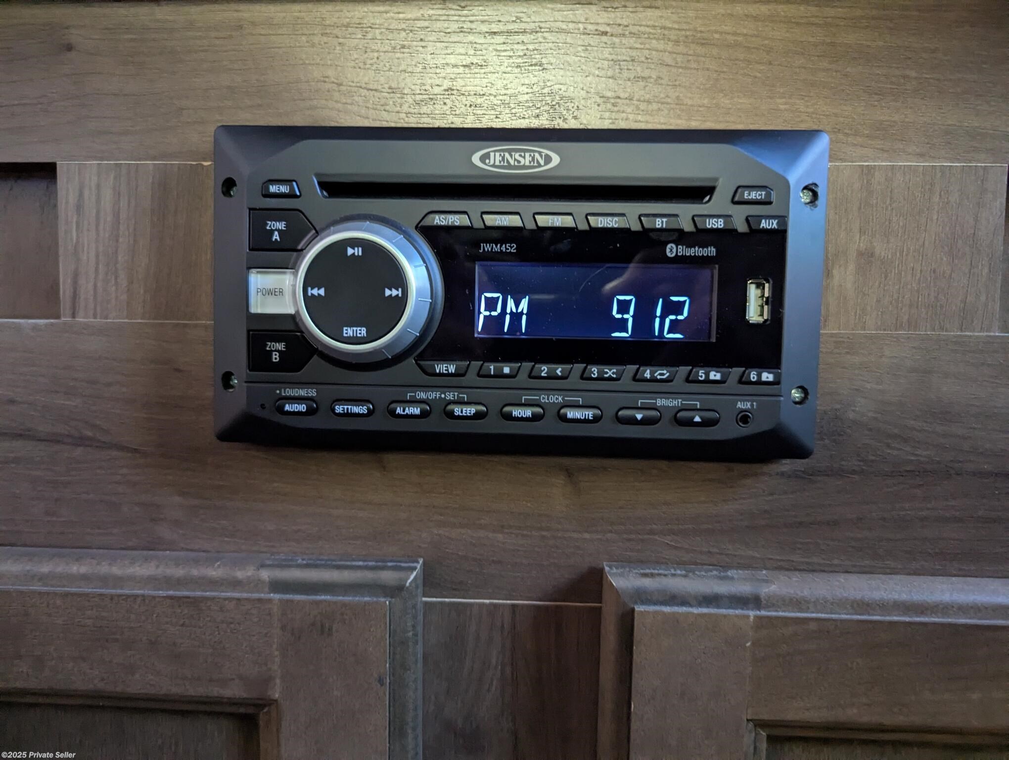 - New Jensen radio/DVD player, 2 spkr zones, bluetooth, remote, connected to TV