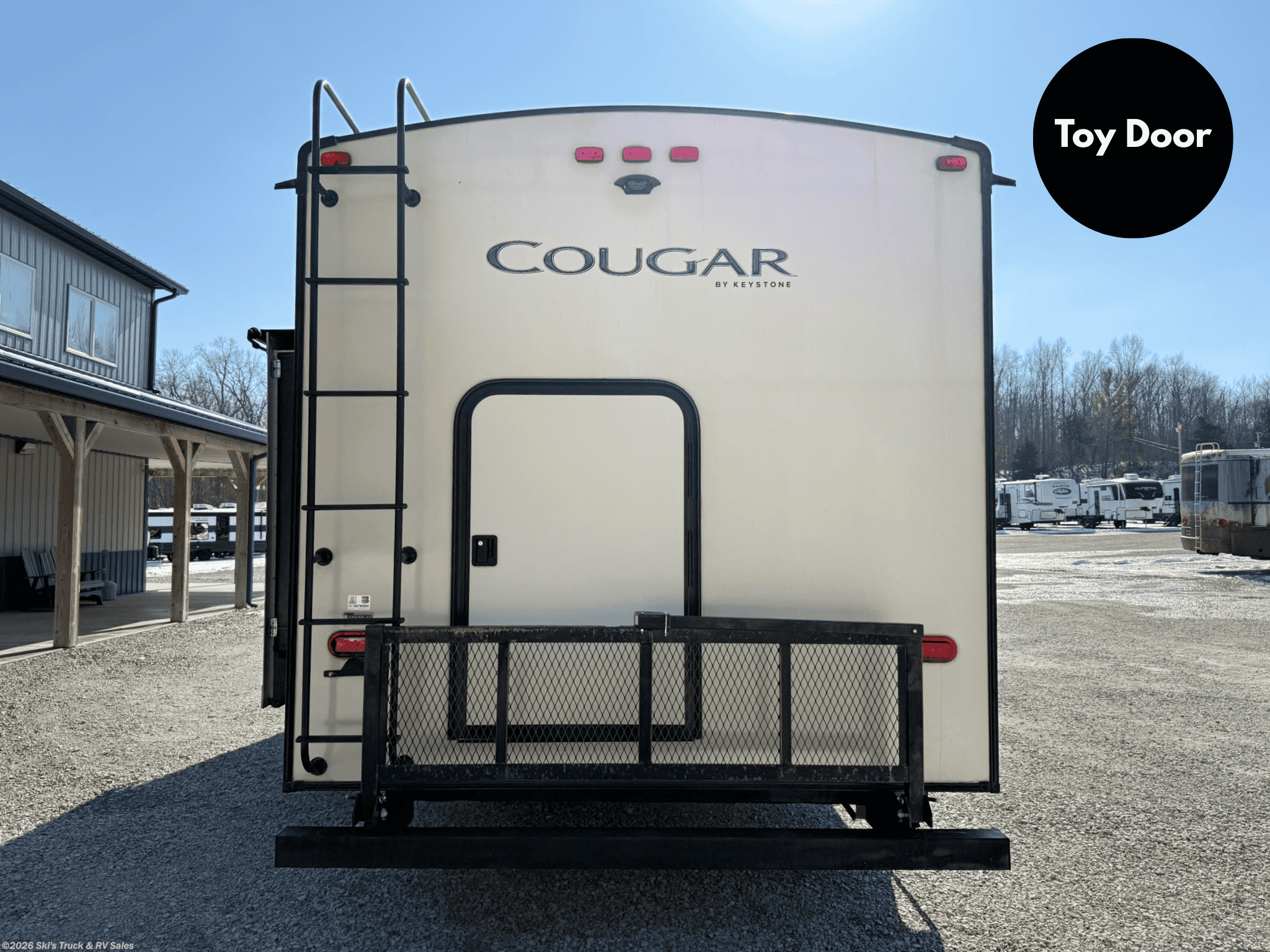 Pre-Owned 2019 Keystone Cougar 29BHS Bunkhouse Travel Trailer; 31 Foot; 1 Slide with Topper; Sleeps 8; Hitch Weight: 810 Lbs.; Dry Weight: 6885 Lbs.; 50 Amp; Auto Leveling; 60 Gal. Fresh Water Cap.; 30 Gal. Black Water Cap.; 60 Gal. Gray Water Cap.; Two 30 Lbs. Propane Tanks; 15,000 BTU AC (Wired for Second AC); 35,000 BTU Furnace; 6 C.F. Gas/Elec. Refrigerator; 6 Gal. Gas/Elec. Water Heater; Microwave; 3-Burner Stove/Oven; Two TV Jacks; 50 In. TV; AM/FM/CD/DVD; Speakers; Pantry; Stainless Steel Sink; Booth Dinette; Trifold Sofa (Shows a Little Wear); Queen Bed; Double Bunks; Rear Toy Door for Lower Bunk; One Bathroom with Shower/Tub Combo; 20 Foot Power Awning with LED Lights; Backup Camera Prep.; Solar Prep.; Outside Kitchen; Outside Shower; Exterior Storage; Grab Handle; Roof Ladder; Fold Down Rack; Battery Disconnect; Black Tank Flush; Climate Package; Fiberglass Sidewalls; Tinted Windows; Pleated Shades; Aluminum Wheels; Spare Tire; Financing Available; Good Pre-Owned Bunkhouse Travel Trailer for the Price: $18,995. Call Skis Truck & RV Sales at 765-344-1111 or visit us at for more information.