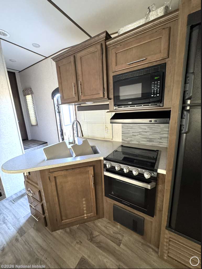 Designed for practical, extended use, this Cougar includes a 60-gallon fresh water tank, 76-gallon gray water capacity, and 38-gallon black tank. A 6-gallon water heater and 14.2-gallon propane capacity ensure you?re ready for off-grid adventures. Electric rear stabilizer jacks simplify setup, while the integrated sewer hose storage keeps things tidy and efficient.