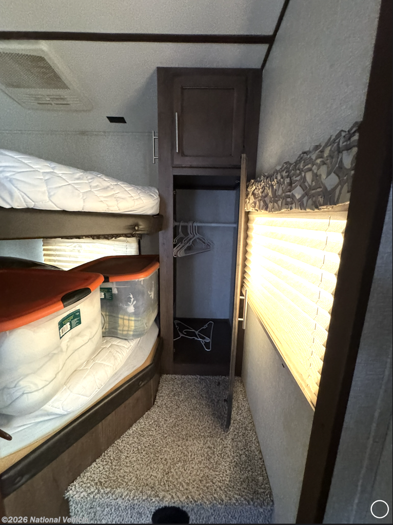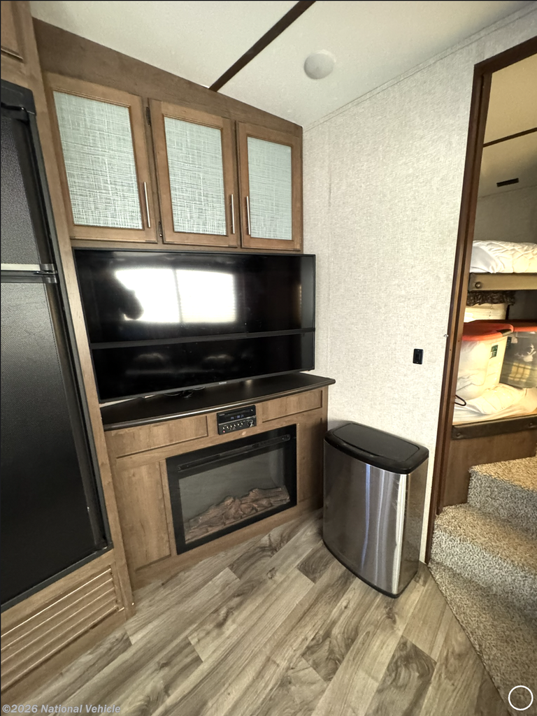 Inside, you?ll find a spacious rear bunkhouse layout perfect for families or guests, paired with a warm, inviting living area. Enjoy year-round comfort with a powerful 15,000 BTU air conditioning system and a 35,000 BTU furnace. The electric fireplace adds both ambiance and supplemental heat, making this coach feel like home wherever you land.