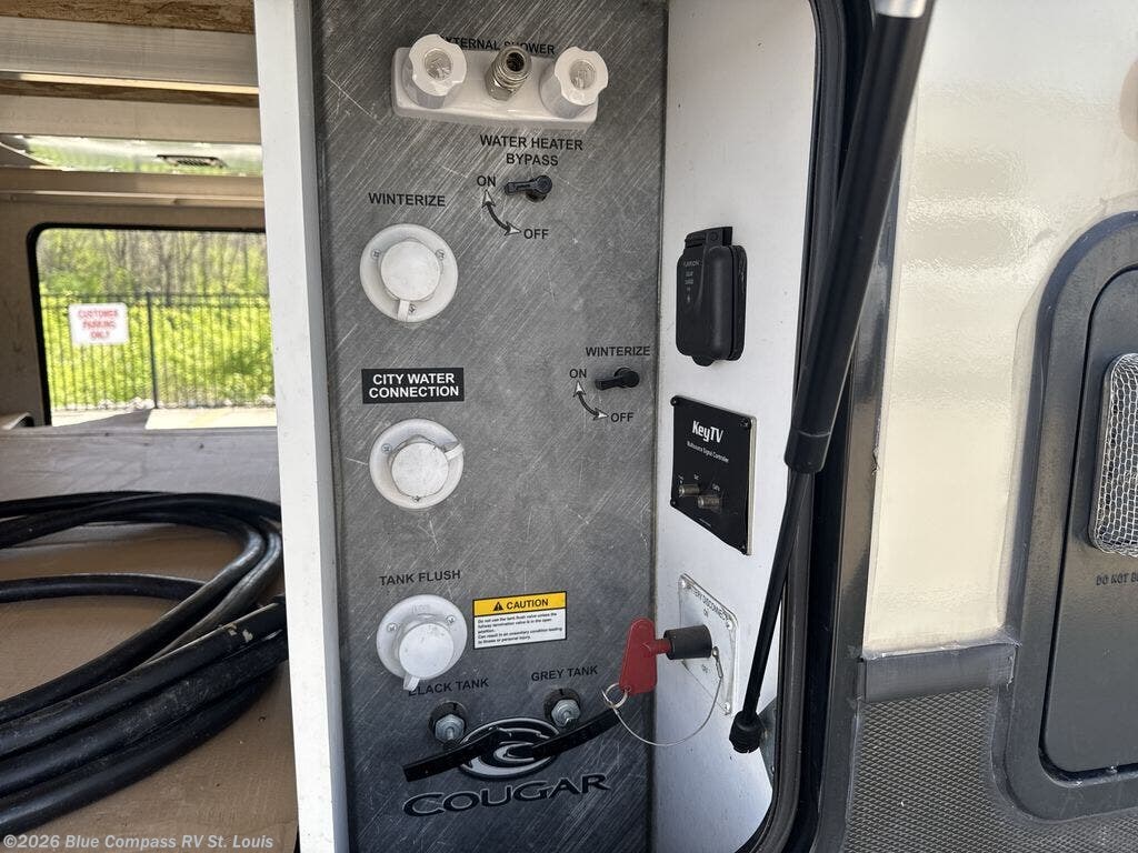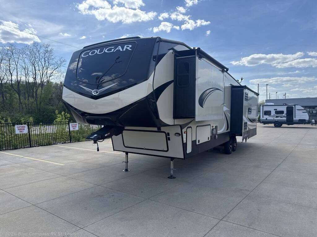 With any Keystone Cougar you will enjoy the Max Turn technology in the front cap when driving around town and parking the fifth wheel. You will be able to camp in any weather with the forced-air heated and enclosed underbelly with enclosed dump valves and Astrofoil insulated slide floors. If you need to stay cool or warm, these units have you covered. Inside, you are sure to love the LG solid surface countertop upgrade in the galley, the two TVs, the Cougar vintage maple glazed hardwood, and much more! You will also love the IN-Command Smart automation with global connect offering full remote thermostat control including scheduling with the mobile app, control of slide rooms, awnings, and light groups also available on the touchscreen display commander, plus there is a panic/intruder alert. Come get your favorite Cougar model and start making memories.
