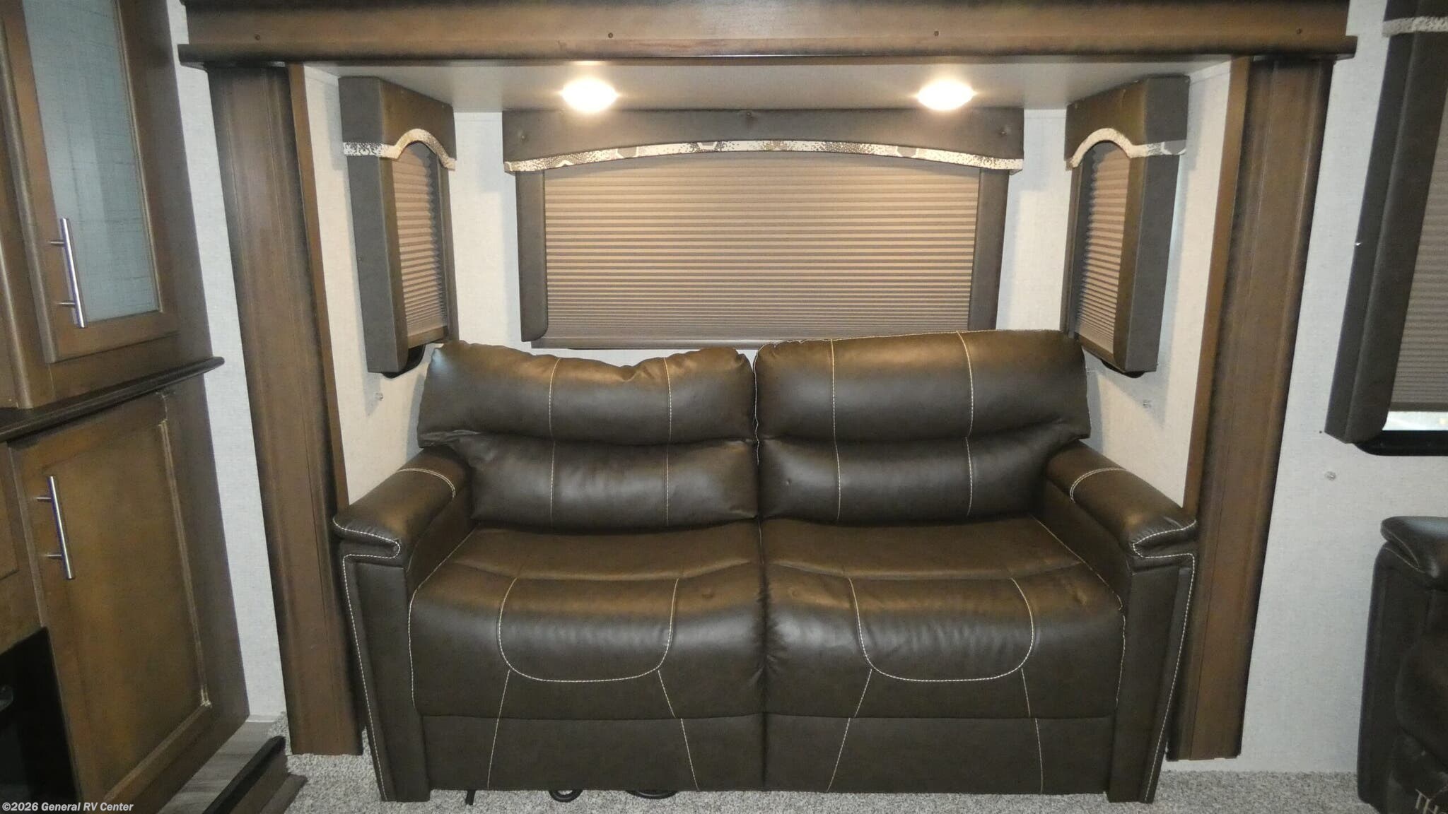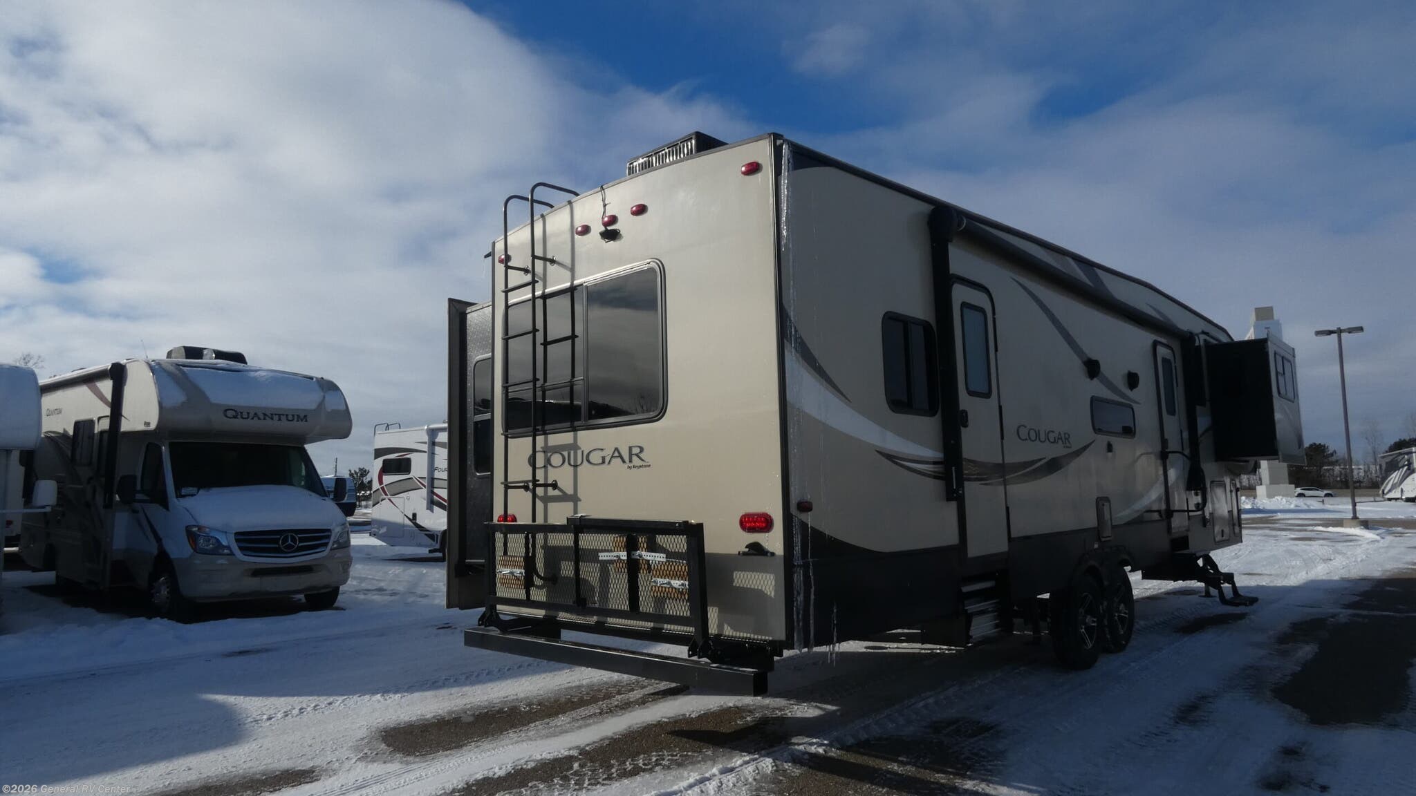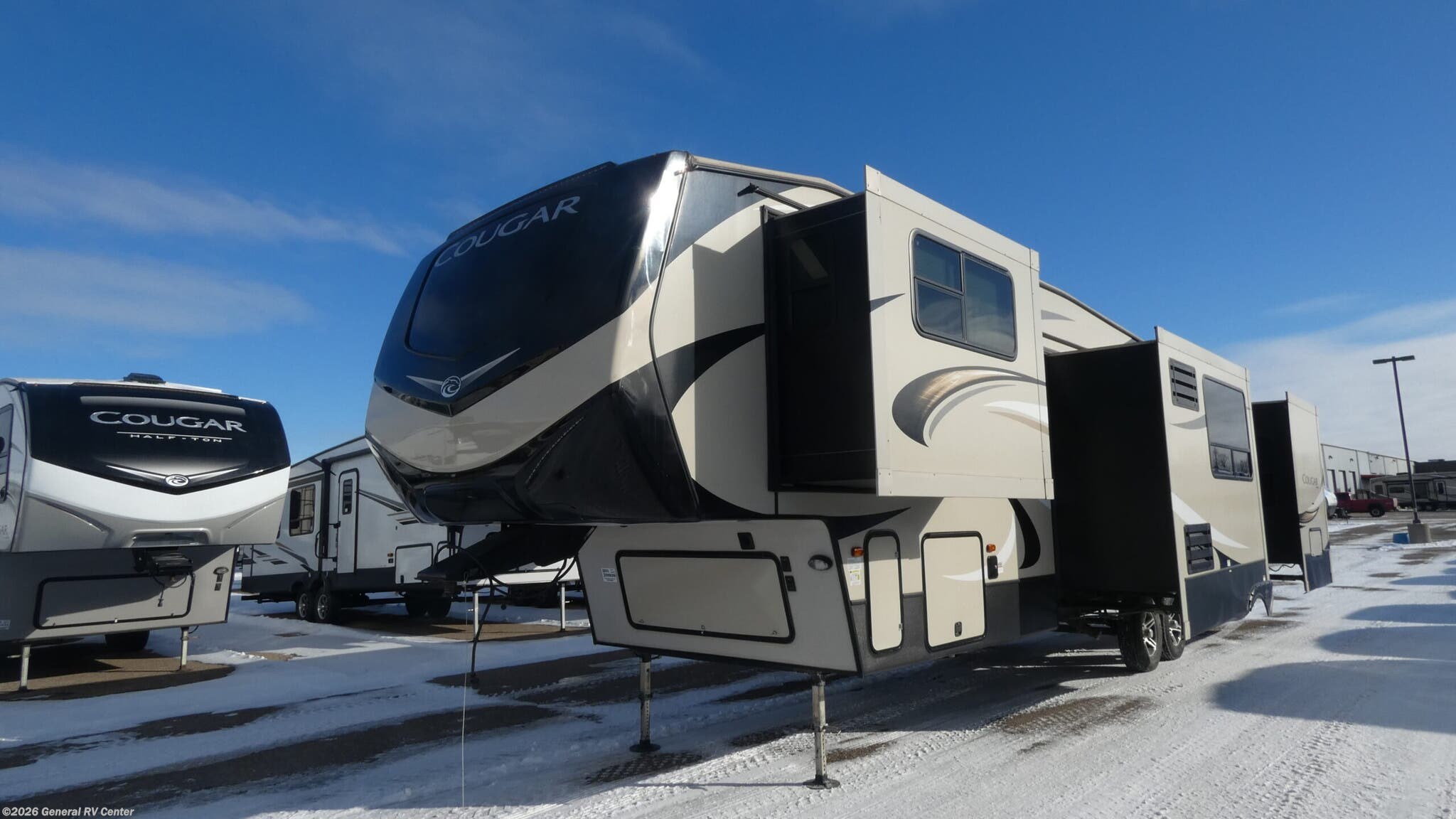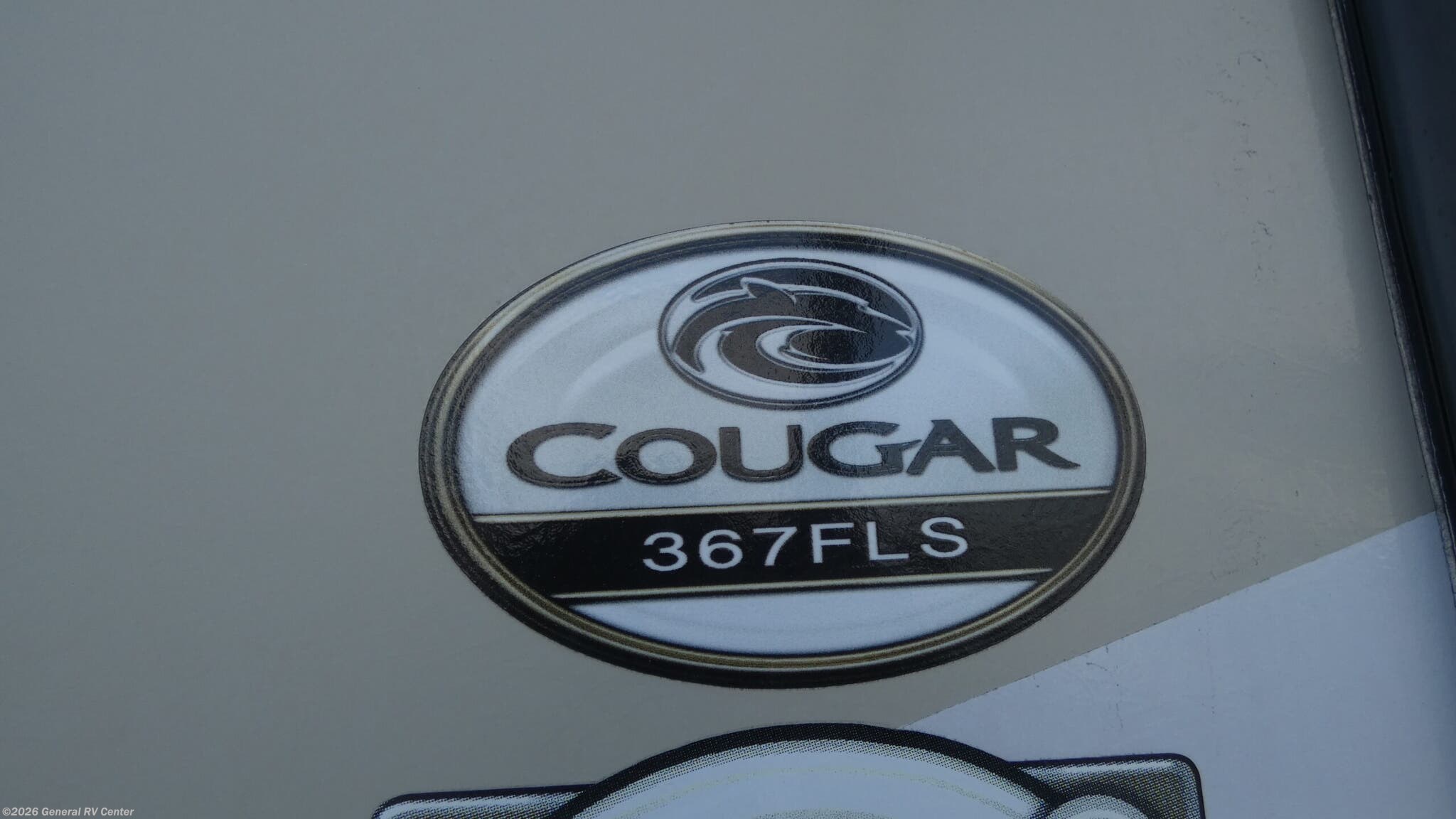 Keystone Cougar fifth wheel 367FLS highlights: Patent-Pending Windshield Dual Entry Separate Living Two Tri-Fold Sofas Large Pantry/Storage This Cougar will have you traveling every chance you get or maybe even turn you into a full-timer. From the front Patent-pending windshield design giving you amazing views while entertaining guests in the separate living area up front to the dual entry, you will love this fifth wheel. There is plenty of seating for everyone in the separate living area, and you will find a dinette in the kitchen. The convenient double entry bath allows hallway access for your friends and bedroom access for you. The bedroom also includes a slide and the second entry into the unit. You will find plenty of storage for your things inside, and the exterior unobstructed pass-through storage allows you to bring along larger items such as your outdoor mat and table, grilling utensils, and fishing rods. You can even entertain outdoors under the 20 foot awning. Take one look, and you will be hooked! With any Keystone Cougar you will enjoy the Max Turn technology in the front cap when driving around town and parking the fifth wheel. You will be able to camp in any weather with the forced-air heated and enclosed underbelly with enclosed dump valves and Astrofoil insulated slide floors. If you need to stay cool or warm, these units have you covered. Inside, you are sure to love the LG solid surface countertop upgrade in the galley, the two TVs, the Cougar vintage maple glazed hardwood, and much more! You will also love the IN-Command Smart automation with global connect offering full remote thermostat control including scheduling with the mobile app, control of slide rooms, awnings, and light groups also available on the touchscreen display commander, plus there is a panic/intruder alert. Come get your favorite Cougar model and start making memories.
