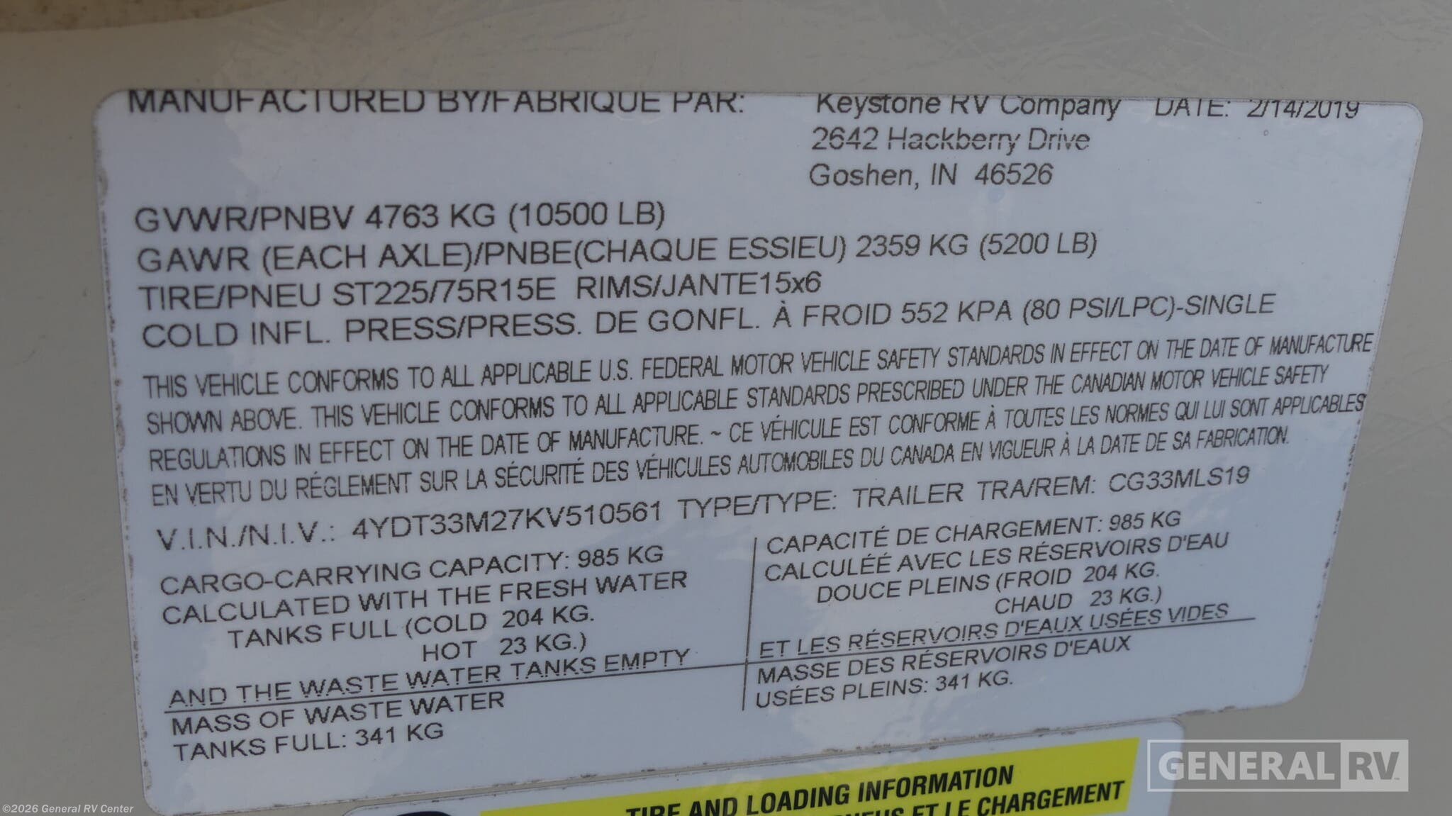 - VIN4YDT33M27KV510561