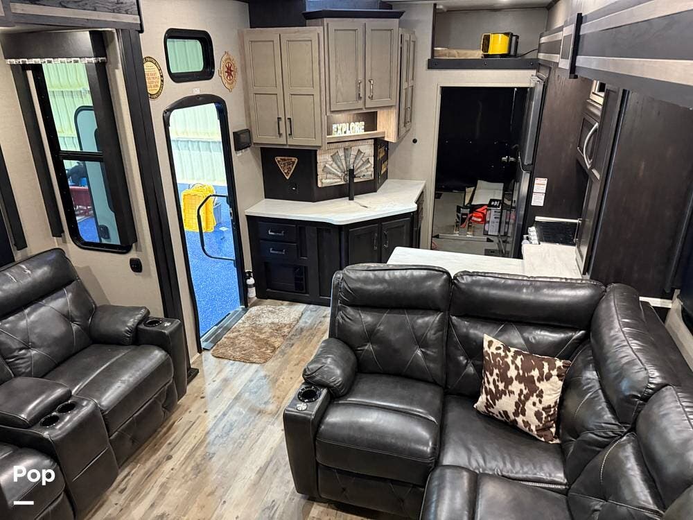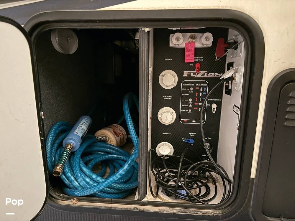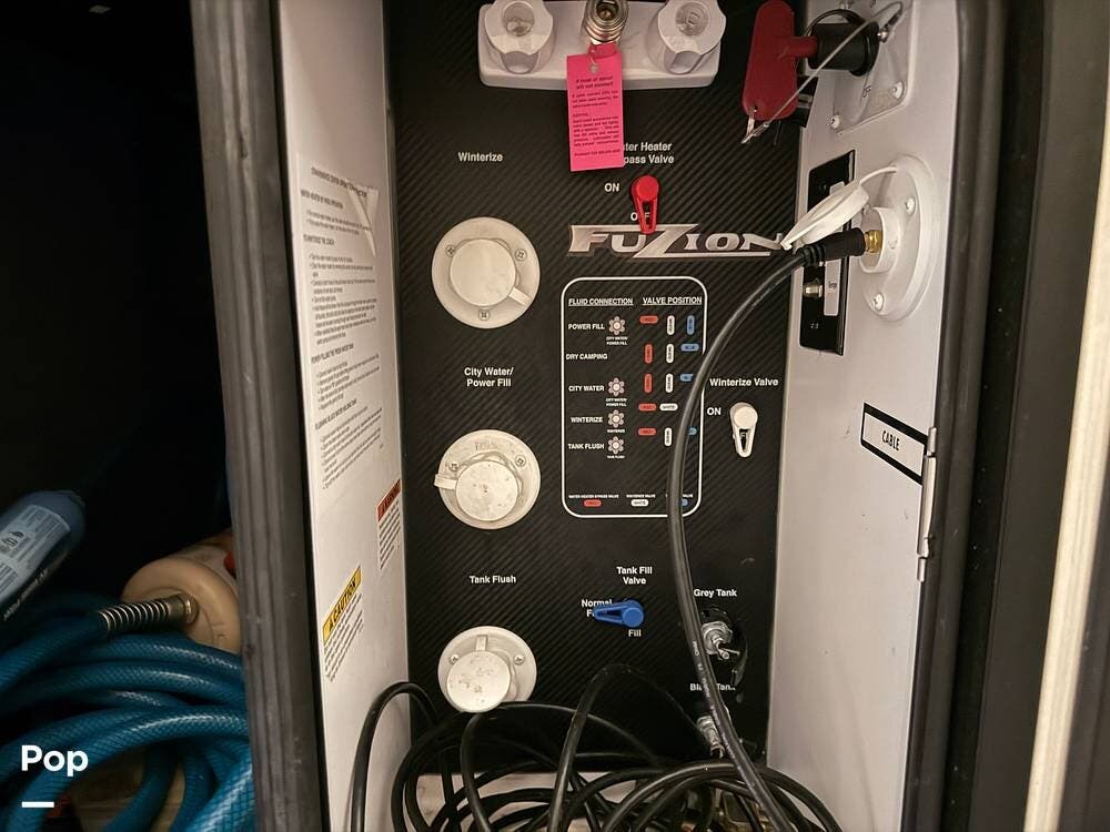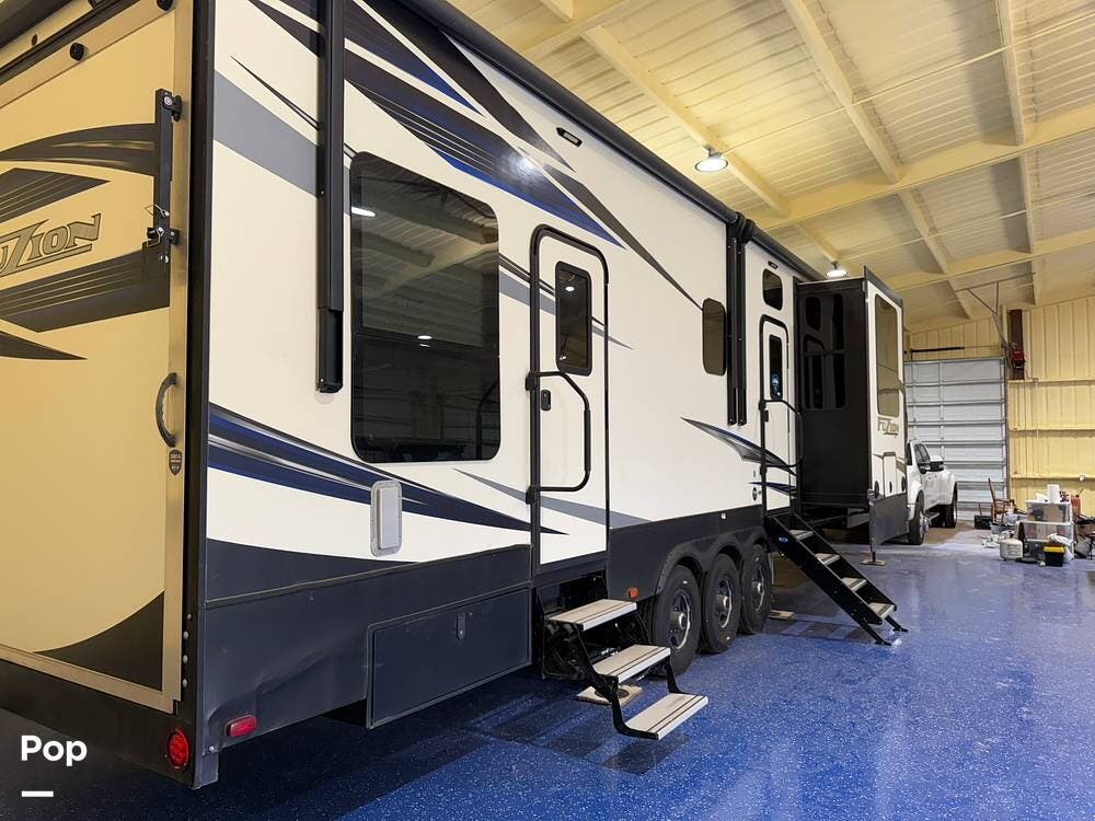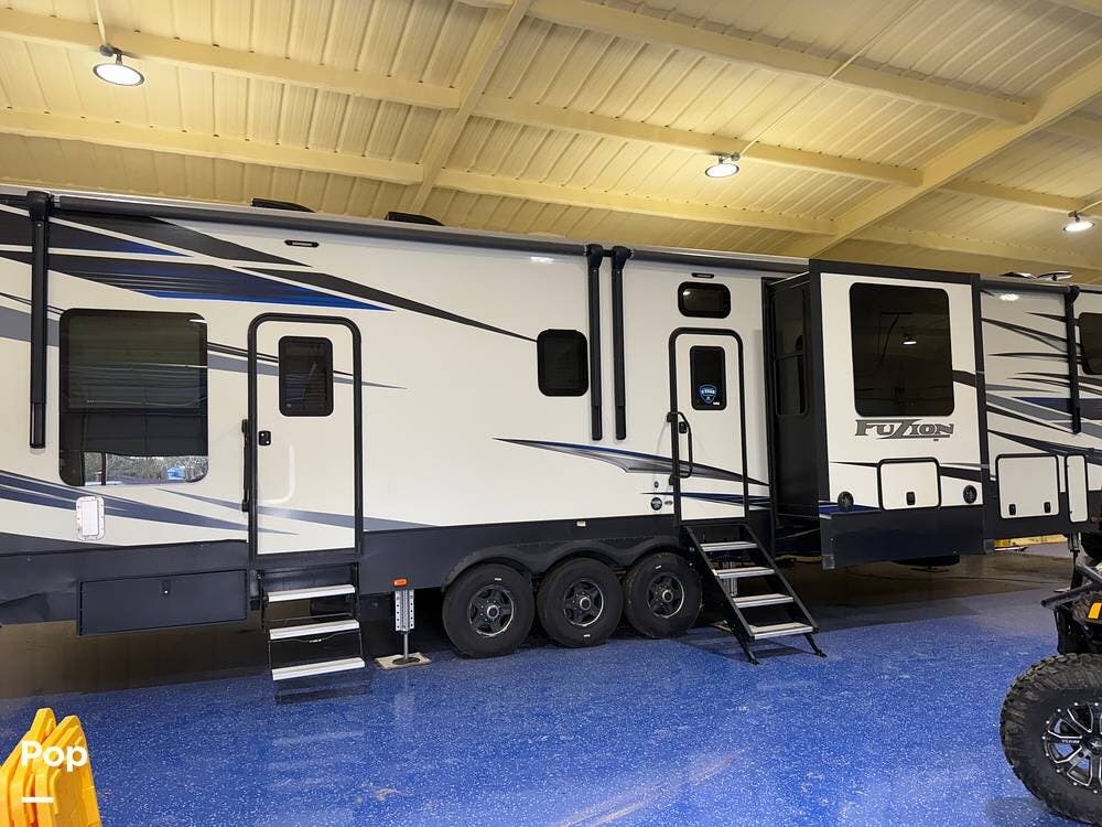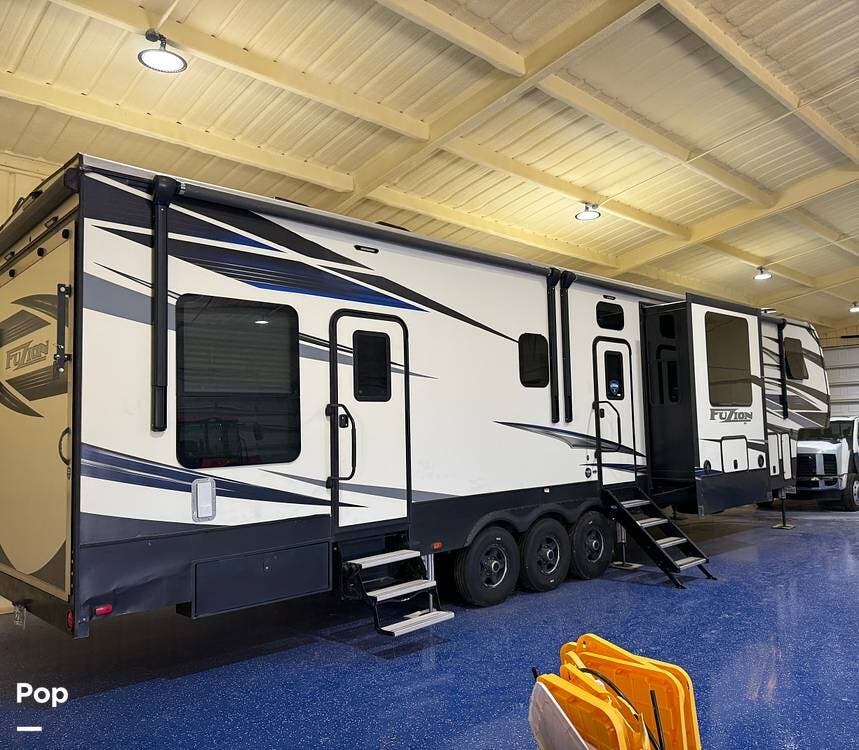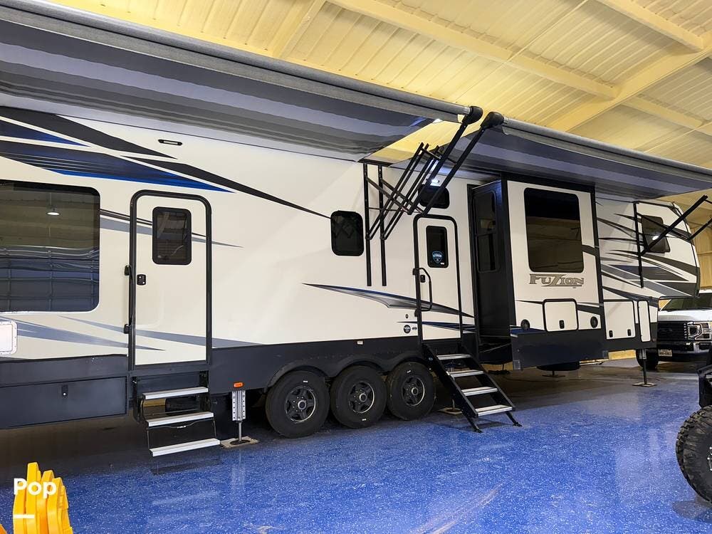 This 2019 Fuzion 429, a 44-foot toy hauler, is in Seven Points, Texas.