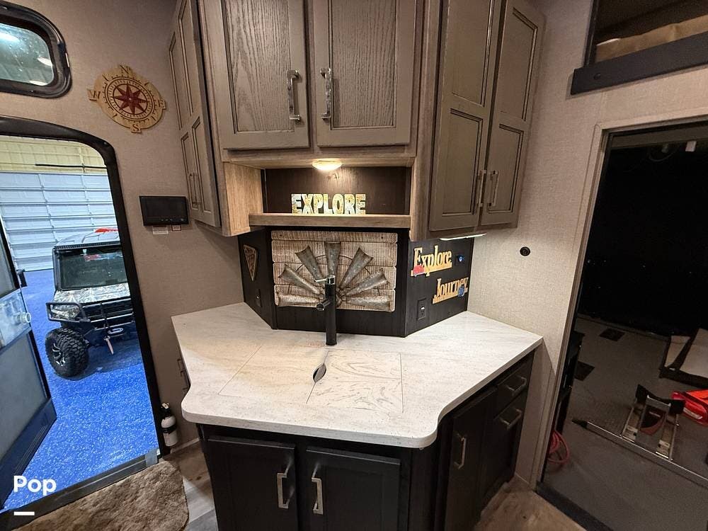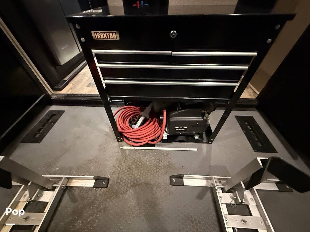 It boasts a spacious 12'6" garage with the popular half-bath option, providing ample room for all your toys. The onboard fueling station ensures you can carry up to 30 gallons of fuel, keeping your toys running smoothly.