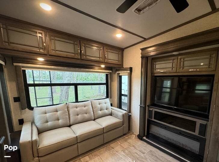 Relax in the power theater seats or on the sofa/sleeper, and enjoy the flat-screen TV and fireplace.