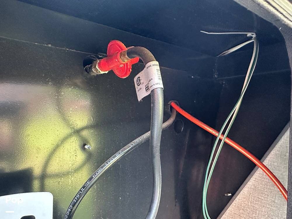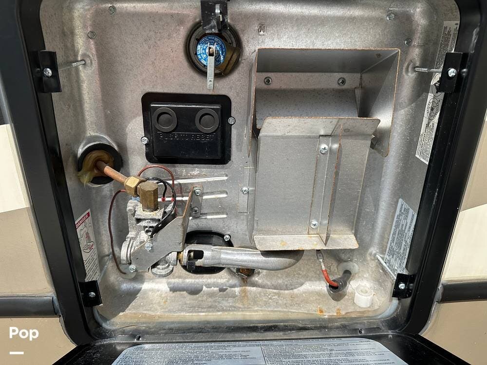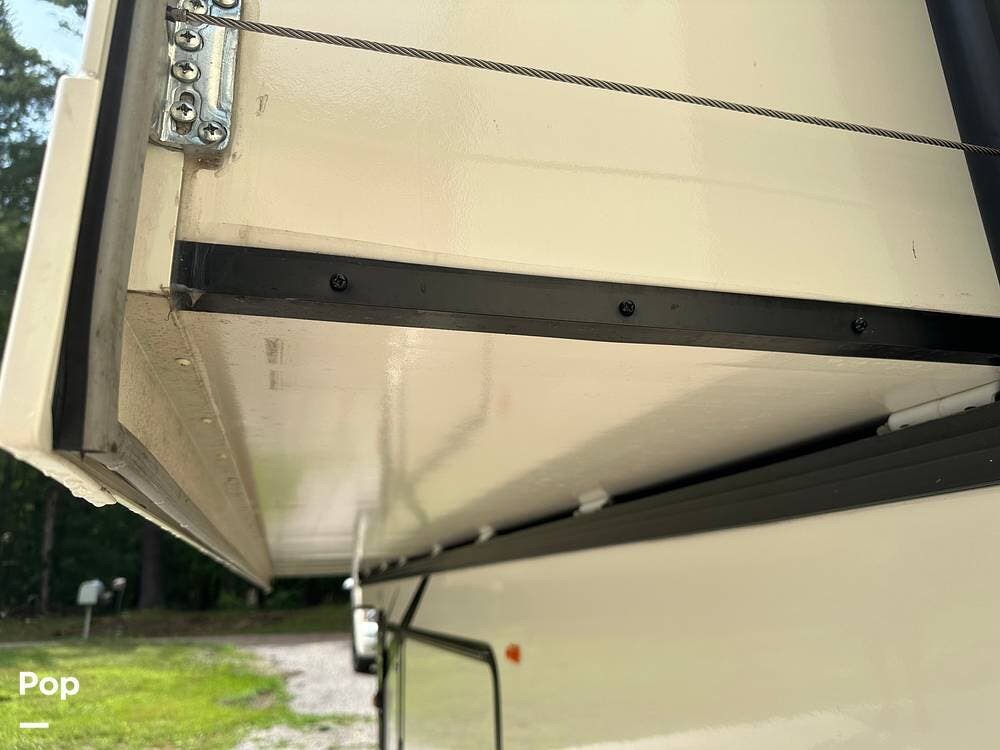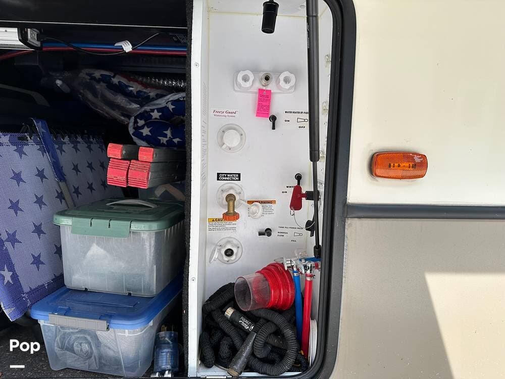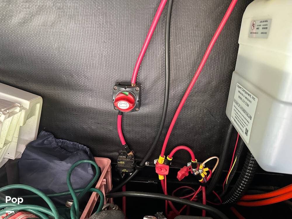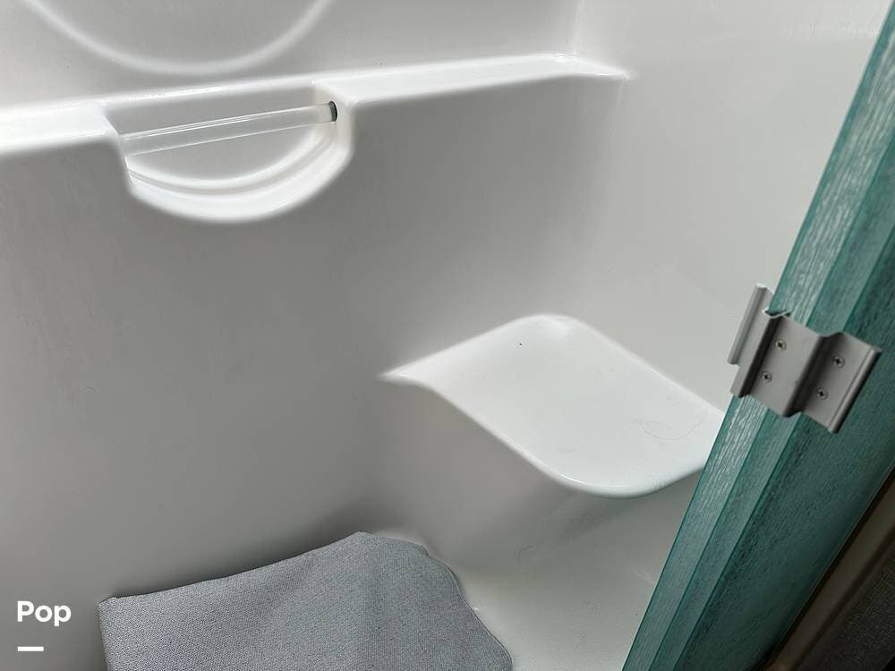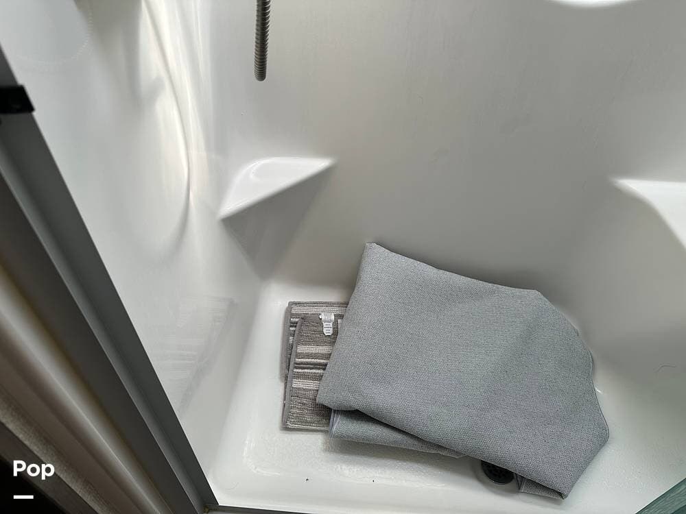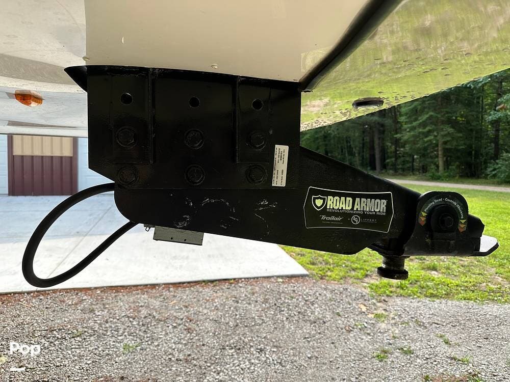 There is a large pass-through storage area with a docking station, outdoor shower, mini refrigerator, and homemade wood pull-out drawer. Two awnings for plenty of shade. Roof ladder and spare tire. Four seasons package for camping year-round.