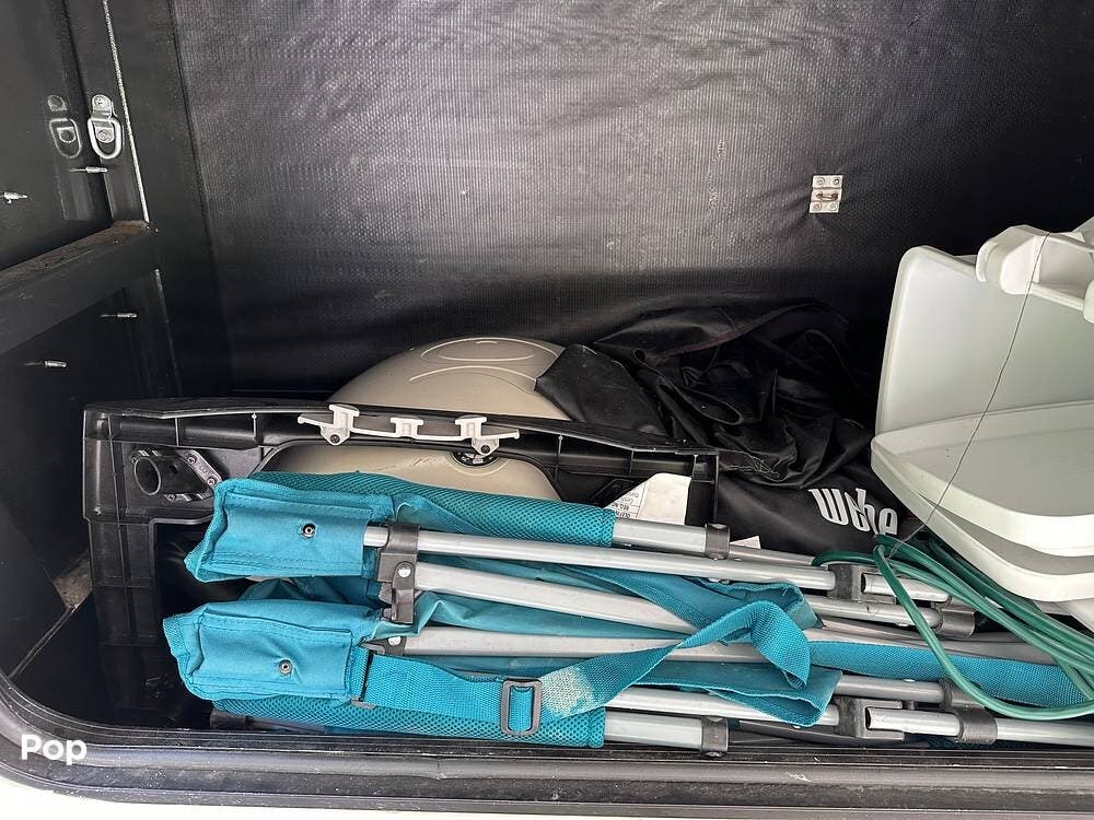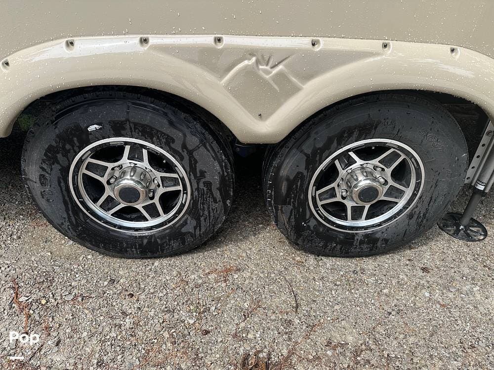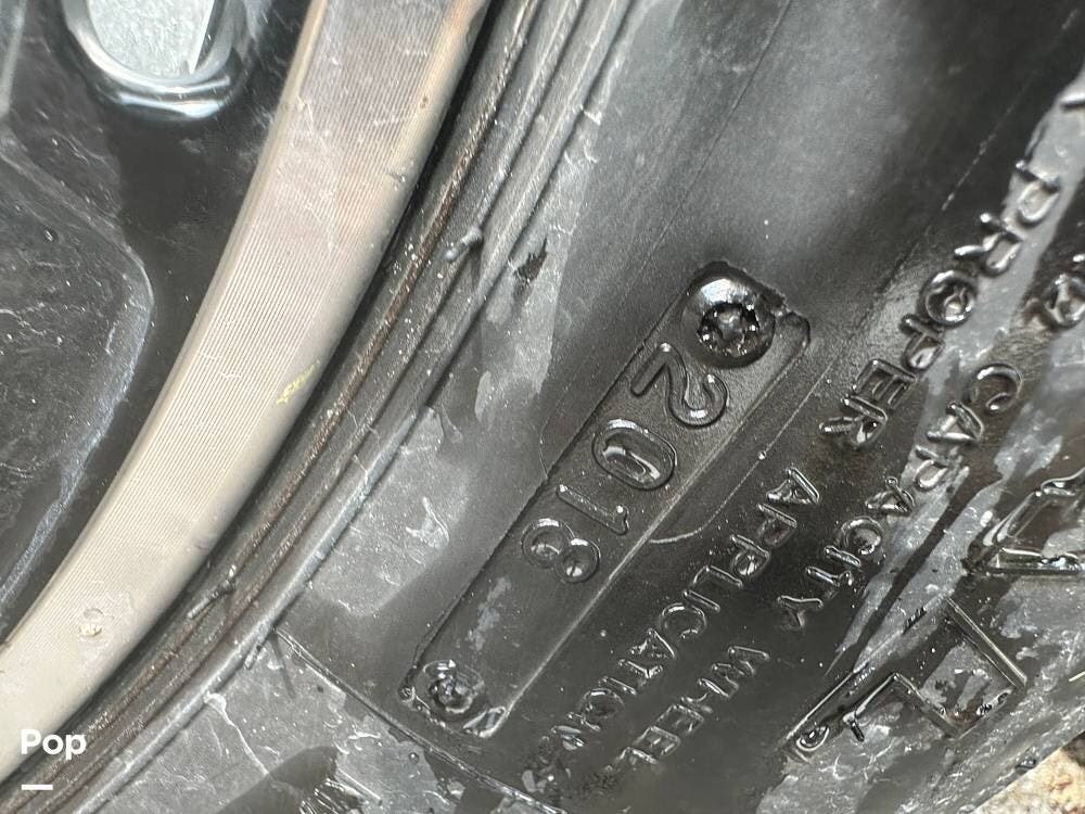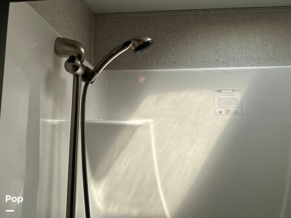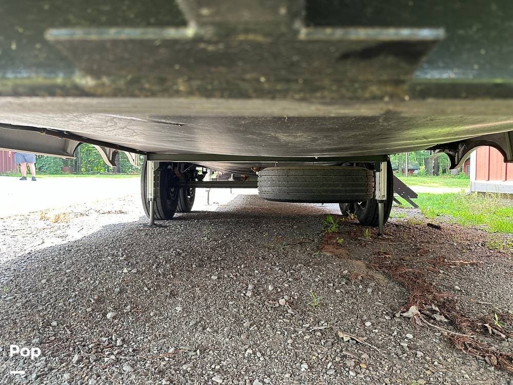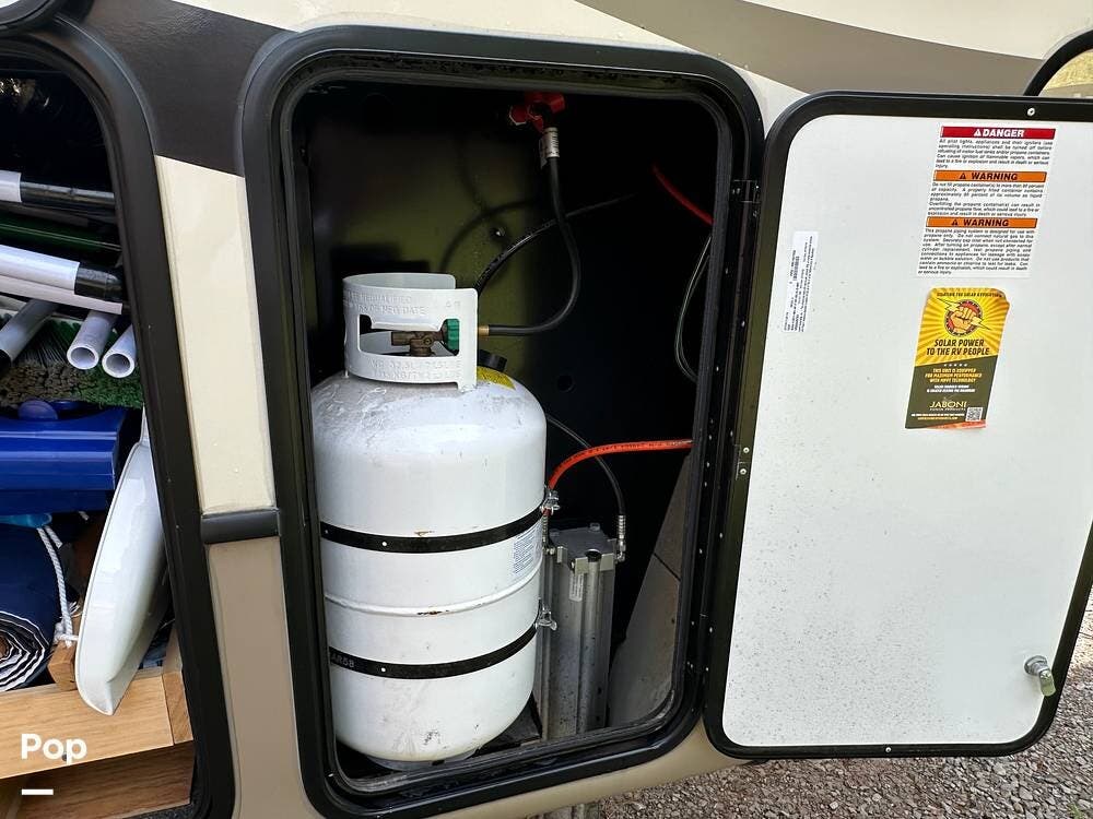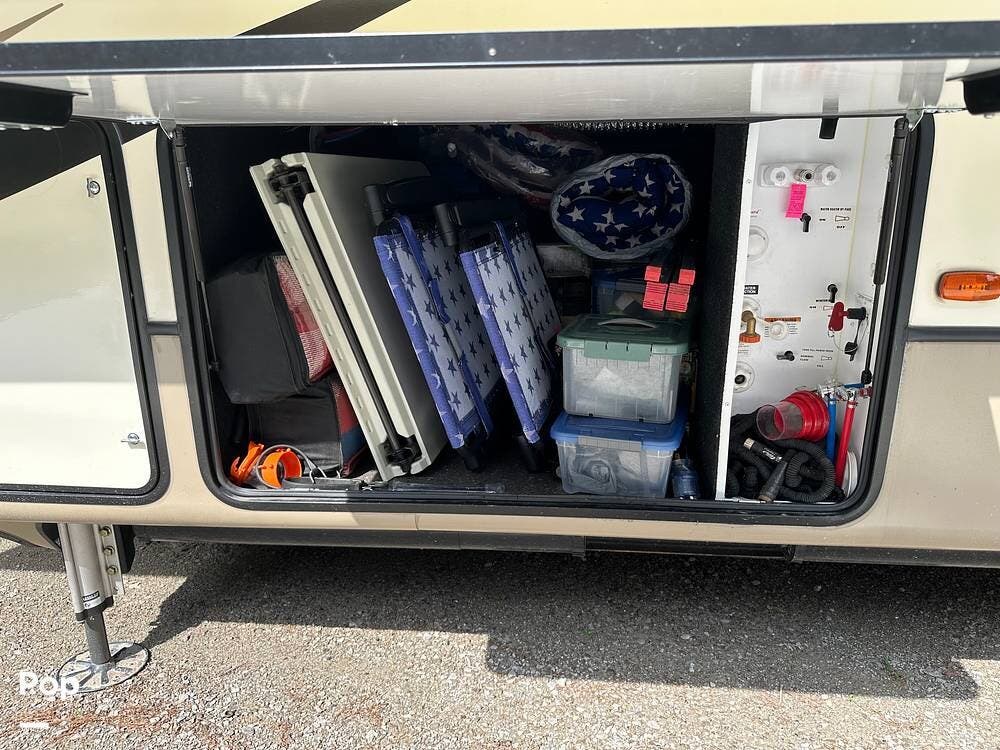 There is a large pass-through storage area with a docking station, outdoor shower, mini refrigerator, and homemade wood pull-out drawer. Two awnings for plenty of shade. Roof ladder and spare tire. Four seasons package for camping year-round.
