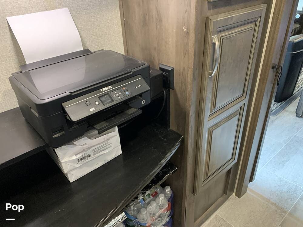The current owner has enjoyed the many benefits of this luxurious RV, which includes the central office space which is located just off the kitchen. This area provides a quiet, private workspace. There is an endless hot water tank which is a notable feature that ensures comfort and convenience.