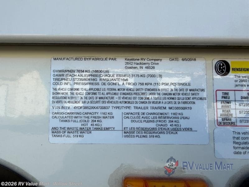 Request More Info on this 2019 Keystone Montana 3855BR Offered for sale by RV Value Mart - Willow Street