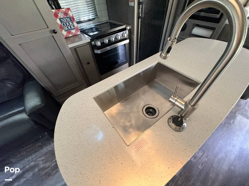 Climate control features include a 13,500 BTU AC, a 35,000 BTU furnace, an Elements insulation package, and an on-demand water heater, allowing for use across all seasons.