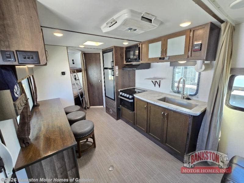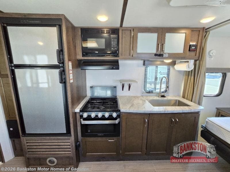 Have you been envisioning your family sitting around the campfire after riding bikes all day? Or daydreaming about visiting all the state parks with the comforts of home hitched up to your tow vehicle? This Passport just makes sense when you need sleeping space for six to seven, appreciate having your own full bathroom, and love cooking outdoors. From the Murphy bed and sofa combination allowing for a bedroom up front or a living area to the rear set of double size bunk beds, you will be able to enjoy this model for years. Don't forget about the outside kitchen, and the exterior pass-through compartment. Family fun and loads of memories will happen when you travel with this Passport!