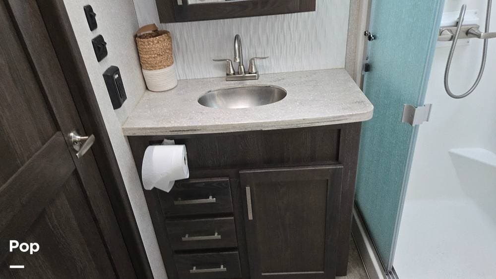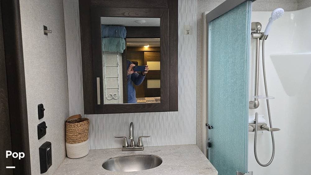 With a well-thought-out layout, high-end features, and ample storage, this RV is perfect for extended trips or weekend getaways.