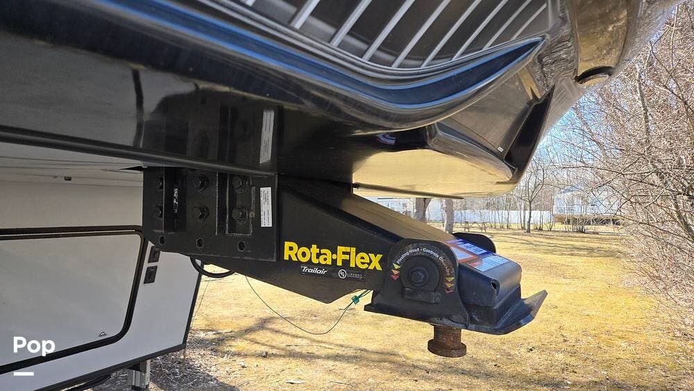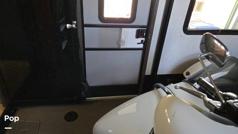 Measuring approximately 39 feet in length, this model offers a spacious living area, a fully equipped kitchen, and a dedicated garage space to bring your favorite toys.