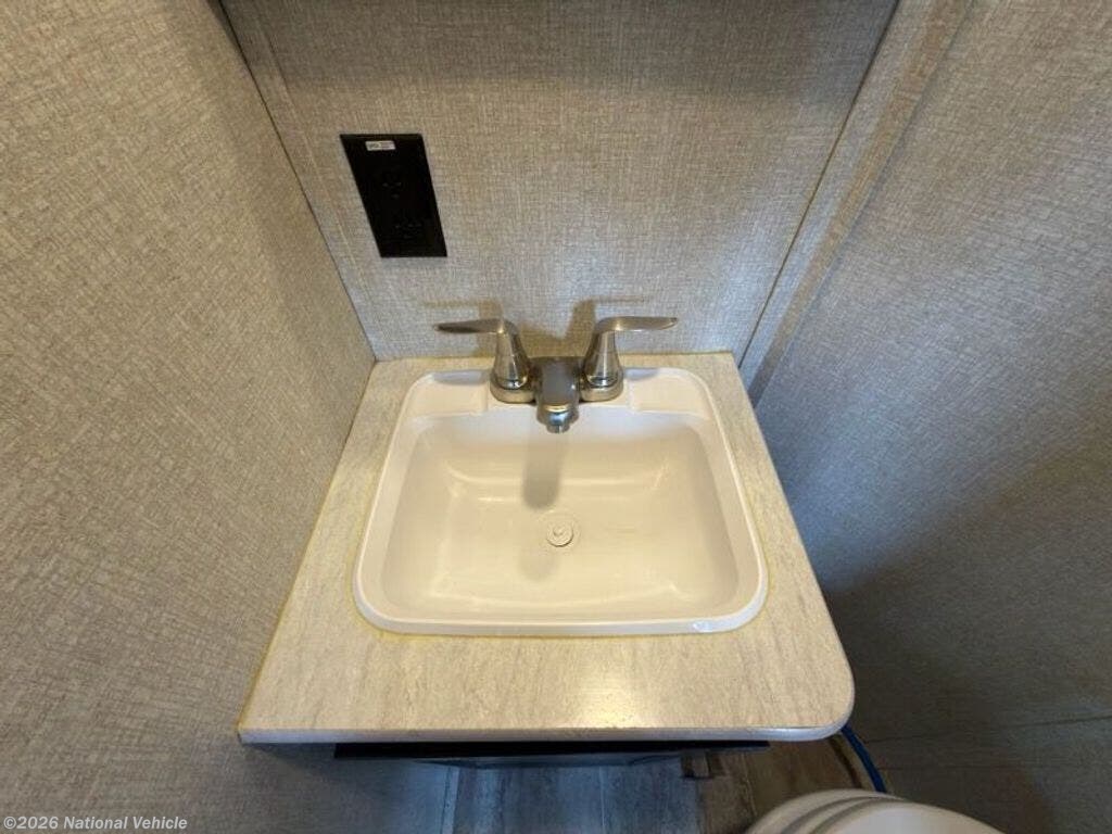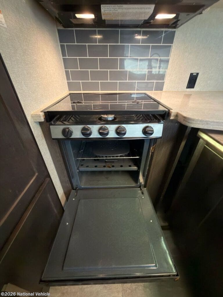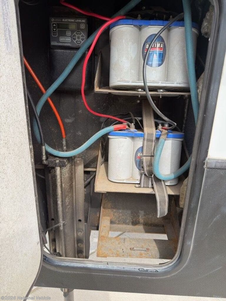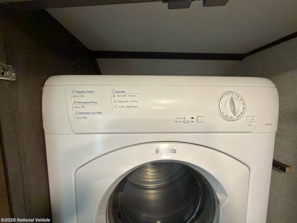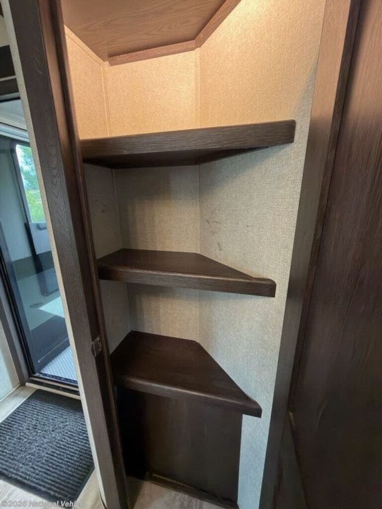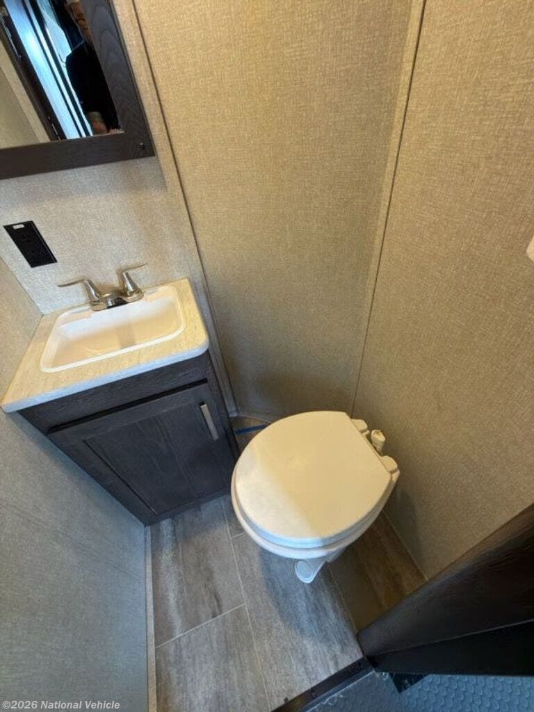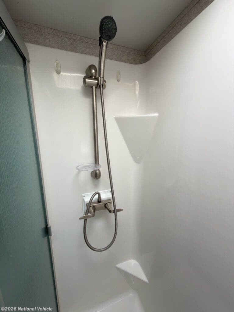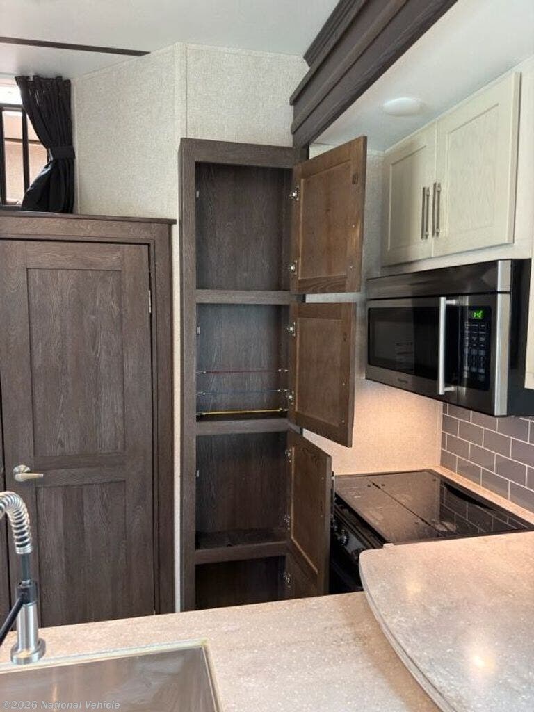 In the front, the private master suite provides a comfortable retreat with a king-size bed, generous wardrobe space, and washer/dryer prep for extended stays. The spacious bathroom includes a large shower and residential-style fixtures, giving you all the comforts of home on the road.