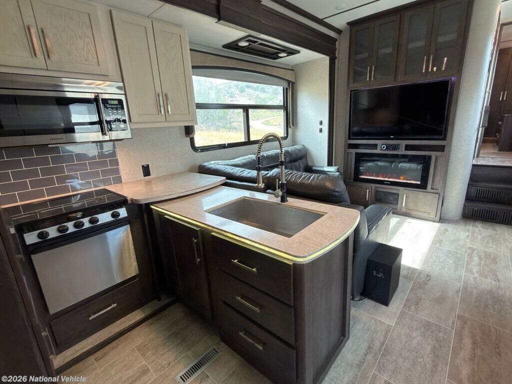 Inside, this coach delivers a true residential experience. Multiple slide-outs create a wide-open living area, complete with plush seating, an entertainment center, and a cozy electric fireplace?perfect for relaxing after a day of adventure. High-end finishes, modern d?cor, and solid construction reflect Keystone?s commitment to quality and style.
