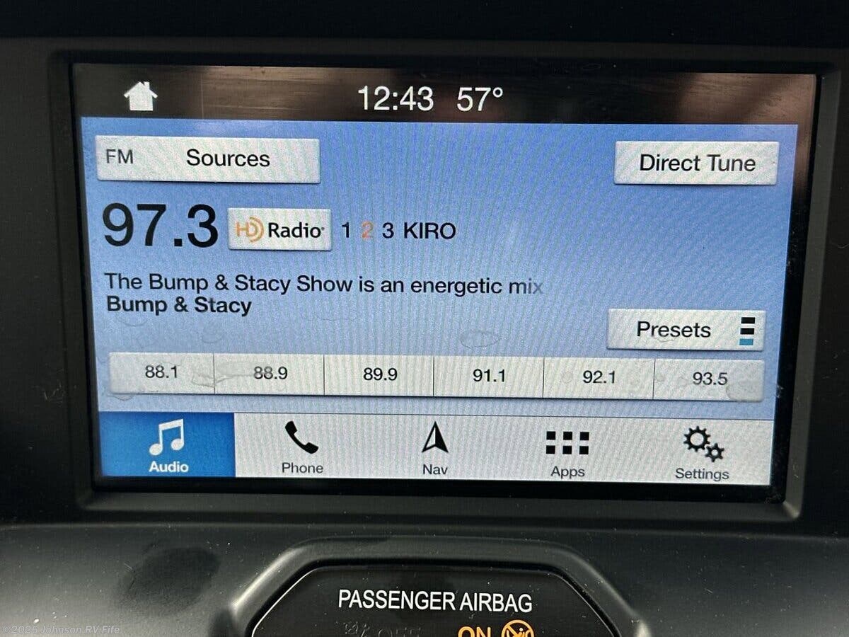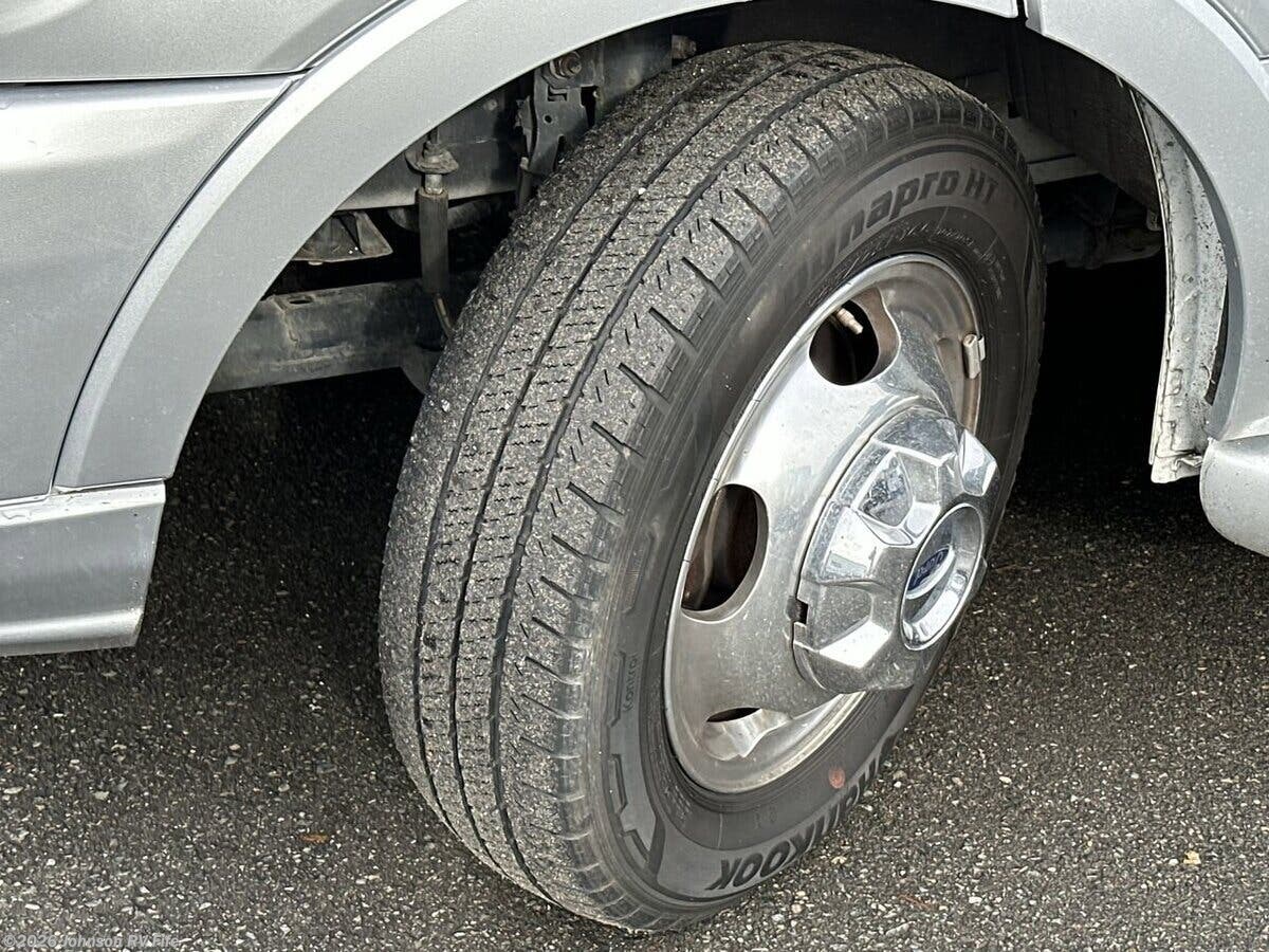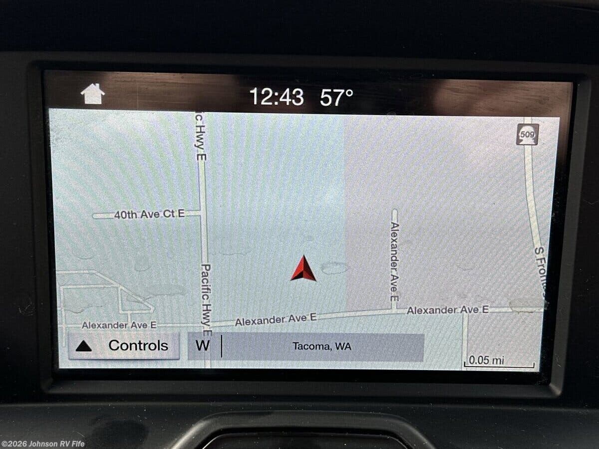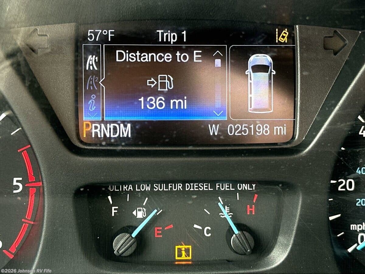 Features Include: 178-inch Wheelbase, 210-Amp Alternator, Dual Rear Wheels, Halogen headlamps, Keyless Entry, Ultraleather Seats, AC, AM FM NAV Bluetooth, Apple CarPlay, Android Auto, Voice Navigation, LED Patio Light, 6' 5" High Ceiling, Roller Blind Shades, Garbage Can Storage, Sink Cover, Accessory Channel, Concealed Microwave, Systems Center, WiFi +4G LTE + TV, 28-inch LED TV, Medicine Cabinet, Stainless Steel Sink, Skylight, Shower Door, Shower Grab Handle, 1200w Inverter, 110v GFI Receptacles, 13.2-Gal LP Tank, 16k Furnace, Antifreeze Kit, Black Tank Flush, Chassis Undercoating, Aluminum Framed Cage