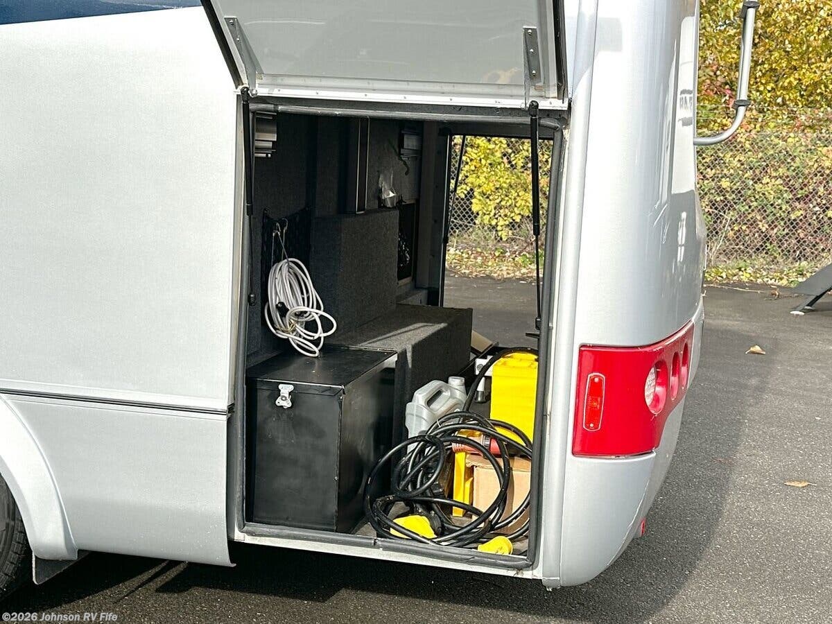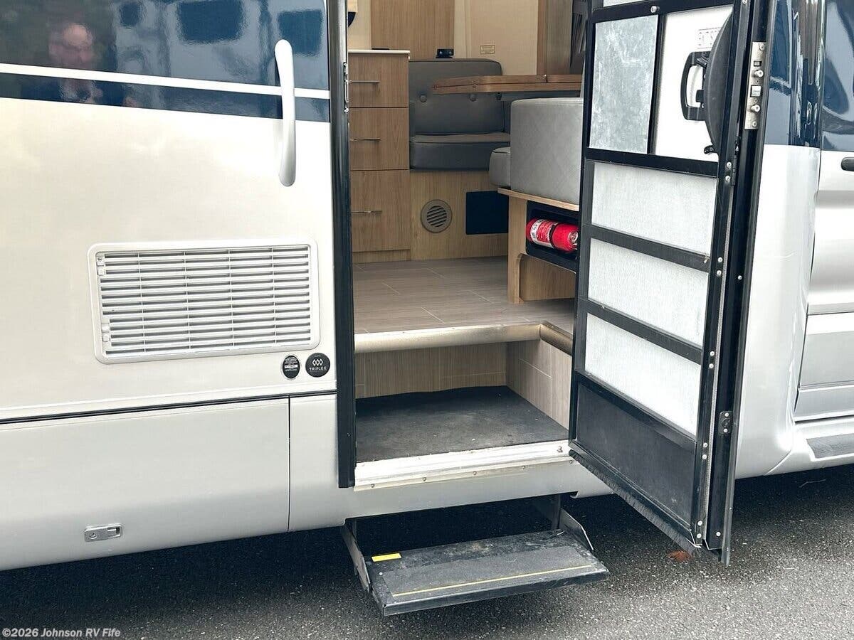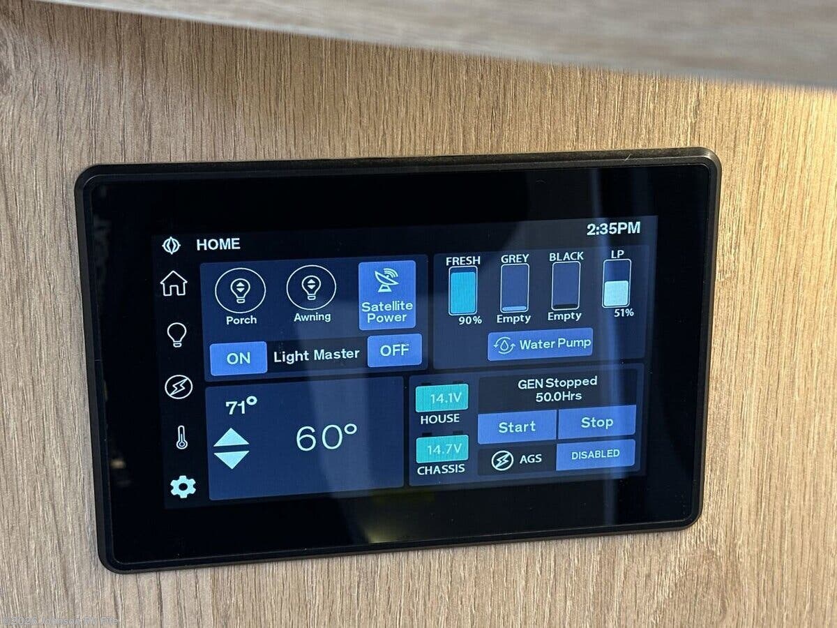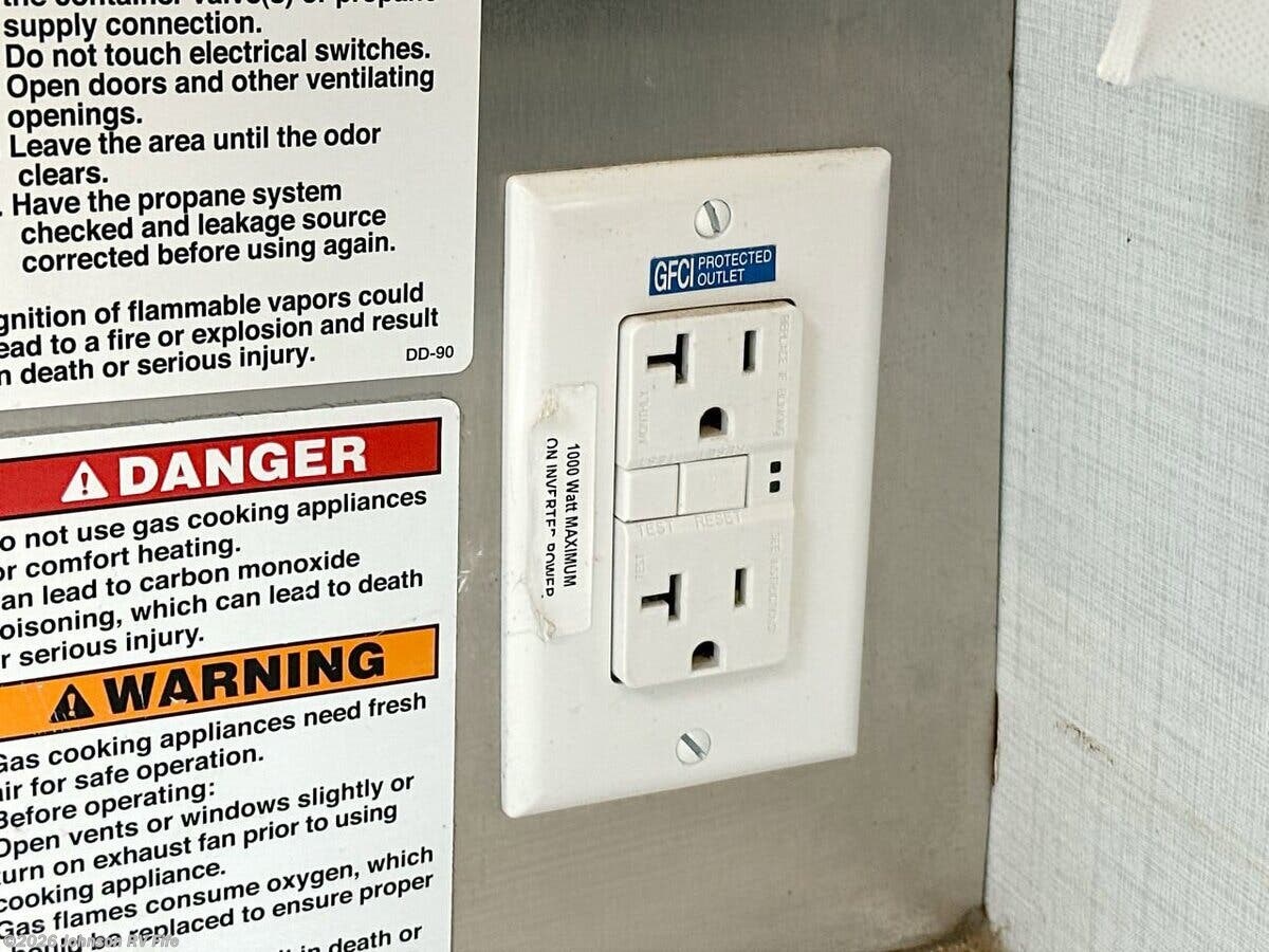 Features Include: 178-inch Wheelbase, 210-Amp Alternator, Dual Rear Wheels, Halogen headlamps, Keyless Entry, Ultraleather Seats, AC, AM FM NAV Bluetooth, Apple CarPlay, Android Auto, Voice Navigation, LED Patio Light, 6' 5" High Ceiling, Roller Blind Shades, Garbage Can Storage, Sink Cover, Accessory Channel, Concealed Microwave, Systems Center, WiFi +4G LTE + TV, 28-inch LED TV, Medicine Cabinet, Stainless Steel Sink, Skylight, Shower Door, Shower Grab Handle, 1200w Inverter, 110v GFI Receptacles, 13.2-Gal LP Tank, 16k Furnace, Antifreeze Kit, Black Tank Flush, Chassis Undercoating, Aluminum Framed Cage
