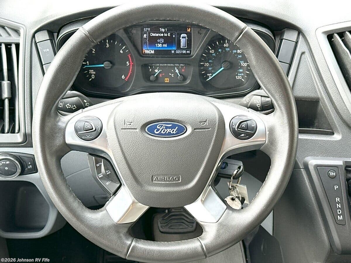 The 2019 Leisure Travel Vans Wonder 24RTB is a versatile and luxurious Class C RV designed to offer comfort and convenience on the road. This vehicle is built on a Ford Transit 350 Cab Chassis, featuring a robust 178-inch wheelbase and powered by a 3.2L I-5 Power Stroke Turbo Diesel Engine. With 185 horsepower and 350 lb-ft of torque, it ensures a smooth and powerful drive. The 6-speed automatic transmission and dual rear wheels enhance stability and handling, making it a reliable choice for long journeys. **Exterior Features:** - Full body paint with clearcoat for a sleek and durable finish. - Halogen headlamps for clear visibility. - Keyless entry for easy access. - Heated remote side-mirrors for improved visibility in cold weather. - Power box awning with LED lighting and LED patio light for outdoor enjoyment. - Retractable power entry step and contoured entry door with screen door for convenience. - Large rear storage compartment and pass-through cargo slide storage for ample space. **Interior Comfort:** - Ultraleather seats with a swivel passenger seat for added comfort. - 6' 5" high ceiling with padded vinyl headliner for a spacious feel. - Tile look vinyl flooring and dimmable LED lighting for a modern touch. - Frameless tinted awning-style windows with roller blind shades for privacy and light control. - Integrated flexible seating dining arrangements with soft close cabinet doors and drawers. **Kitchen Amenities:** - NTM countertop with Corian edge and flip-down countertop extension. - Undermount stainless steel sink with sink cover and accessory channel. - 3-way 6.7cf 2-door refrigerator freezer and concealed microwave for meal preparation. - Flush cooktop with glass cover and stainless steel backsplash for a clean look. **Entertainment and Electronics:** - Ford SYNC Radio with MyFord Touch, AM FM NAV Bluetooth, Apple CarPlay, and Android Auto for connectivity. - 28-inch LED TV and Blu-ray player with Bluetooth soundbar for entertainment. - Winegard ConnecT 2.0 Antenna for WiFi, 4G LTE, and TV connectivity. - Satellite dish pre-wire for additional entertainment options. **Sleeping Arrangements:** - 60x80 Murphy bed with backrests for a comfortable night's sleep. - Two twins 32x76 or queen 64x76 options for flexibility. - 24-inch Smart TV in the sleeping area for added entertainment. **Bathroom Facilities:** - Medicine cabinet and stainless steel sink for convenience. - Skylight and shower door with integrated storage and grab handle. - Ceramic macerator toilet and power vent for comfort and hygiene. **Mechanical and Safety Features:** - Battery disconnect switch and dual 6v coach batteries for reliable power. - 1200w inverter and 110v GFI receptacles for electrical needs. - 13.2-gallon LP tank, 15k low profile AC heat pump, and 16k furnace for climate control. - Truma AquaGo Comfort Plus hot water system and antifreeze kit for all-weather use. - Black tank flush and outdoor shower for added convenience. The 2019 Leisure Travel Vans Wonder 24RTB is a well-equipped RV that combines luxury, functionality, and modern technology, making it an ideal choice for those seeking adventure and comfort on the road. ???