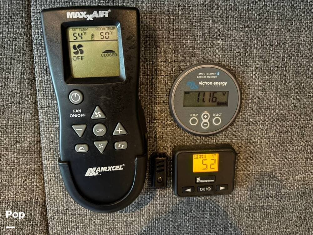 CR Lawrence T-vent windows open for breeze, Maxxair fan moves air fast. Espar D2 diesel heater keeps it warm with its own thermostat, runs off the tank.