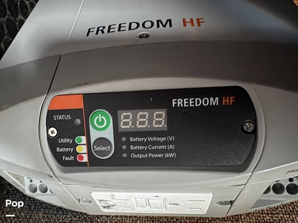 Dometic 12v/120v cooler fridge, 12v lighting, plenty of USB and 110v plugs from the Xantrex 1800 inverter. 220 amp hour battery bank, 190 watt roof solar, bluetooth monitor, plus engine charging while you drive.
