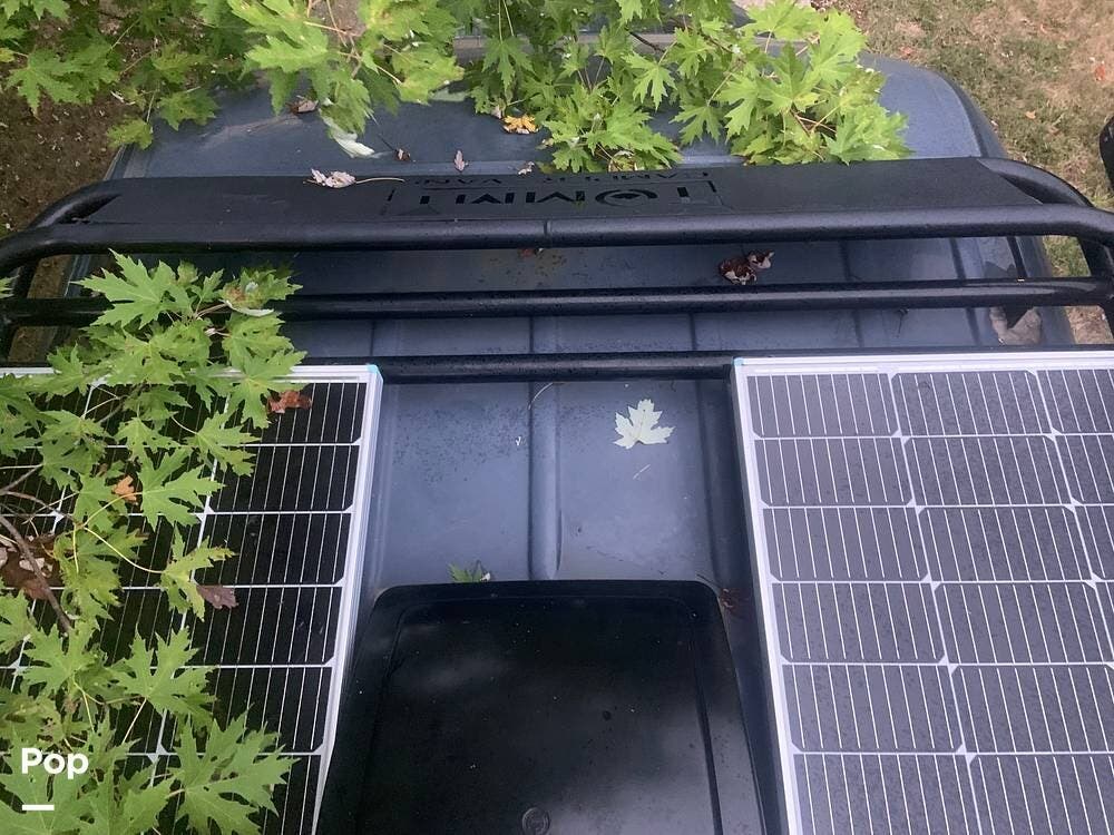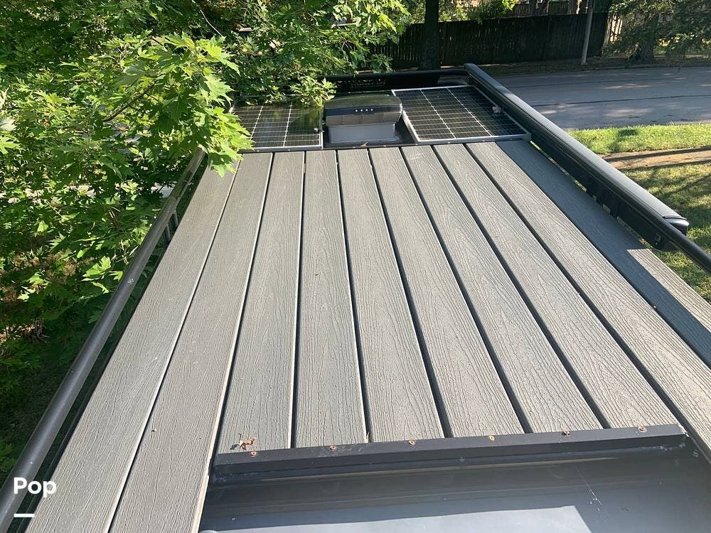 The roof includes two large solar panels and a deck with a railing around the entire roof area--this is a great place to enjoy the stars or catch your favorite bands at your next outdoor concert.