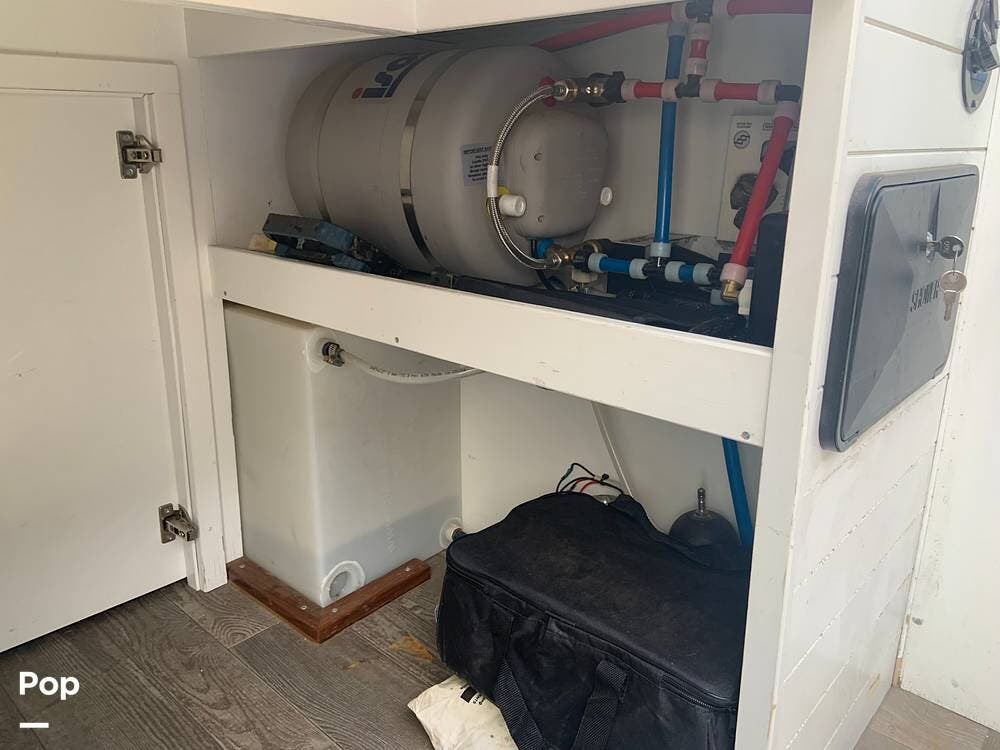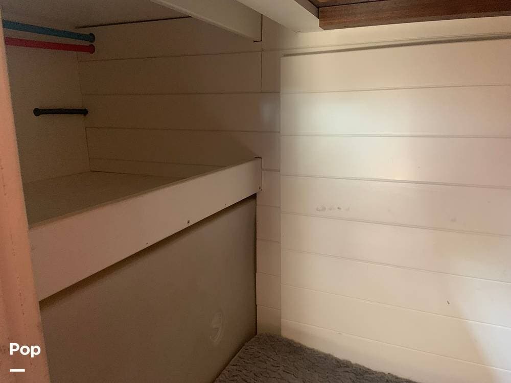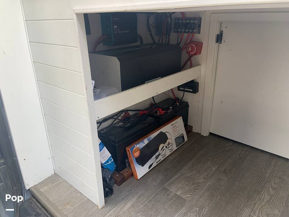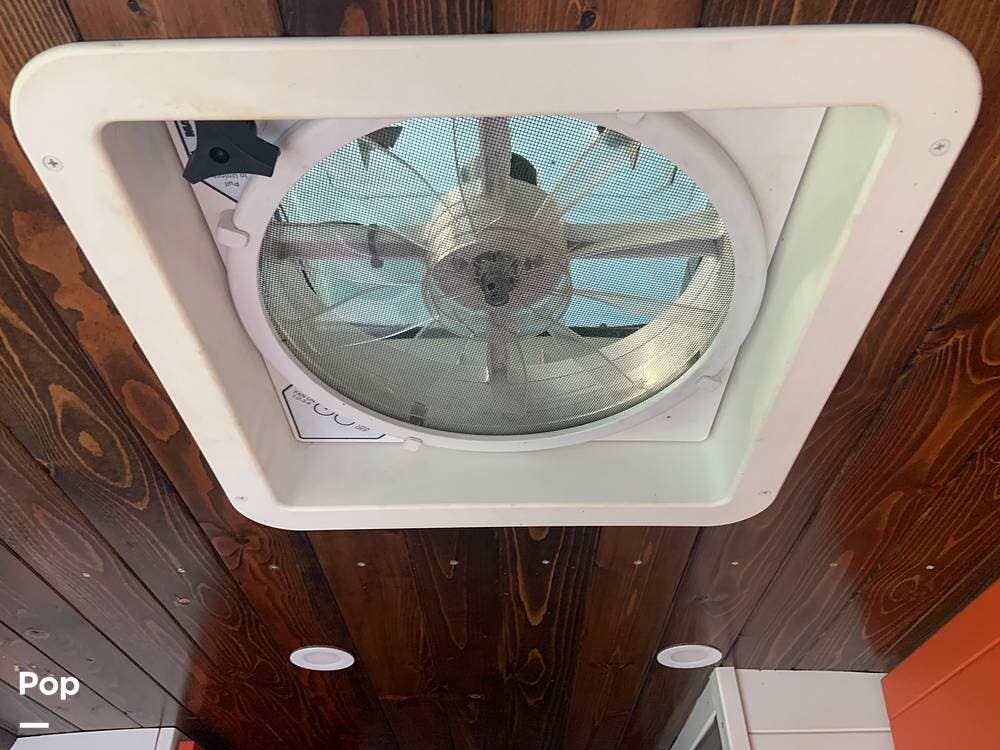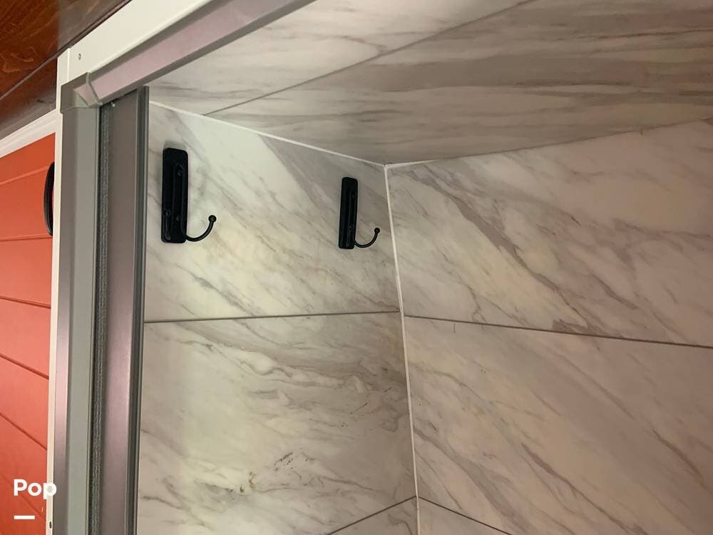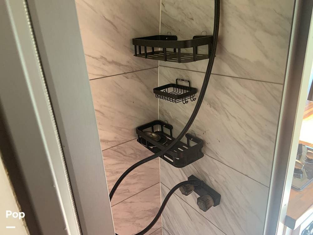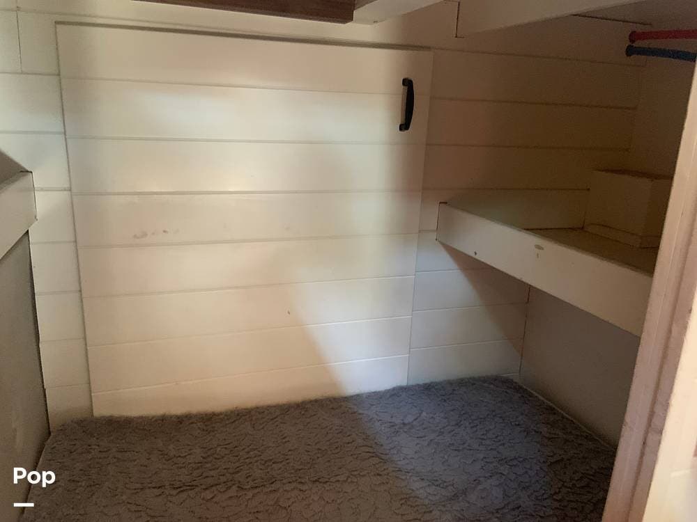 The bathroom features a stand-up shower, but the composting toilet (which would fit under the bed) has been removed and will remain with the seller for his next one.