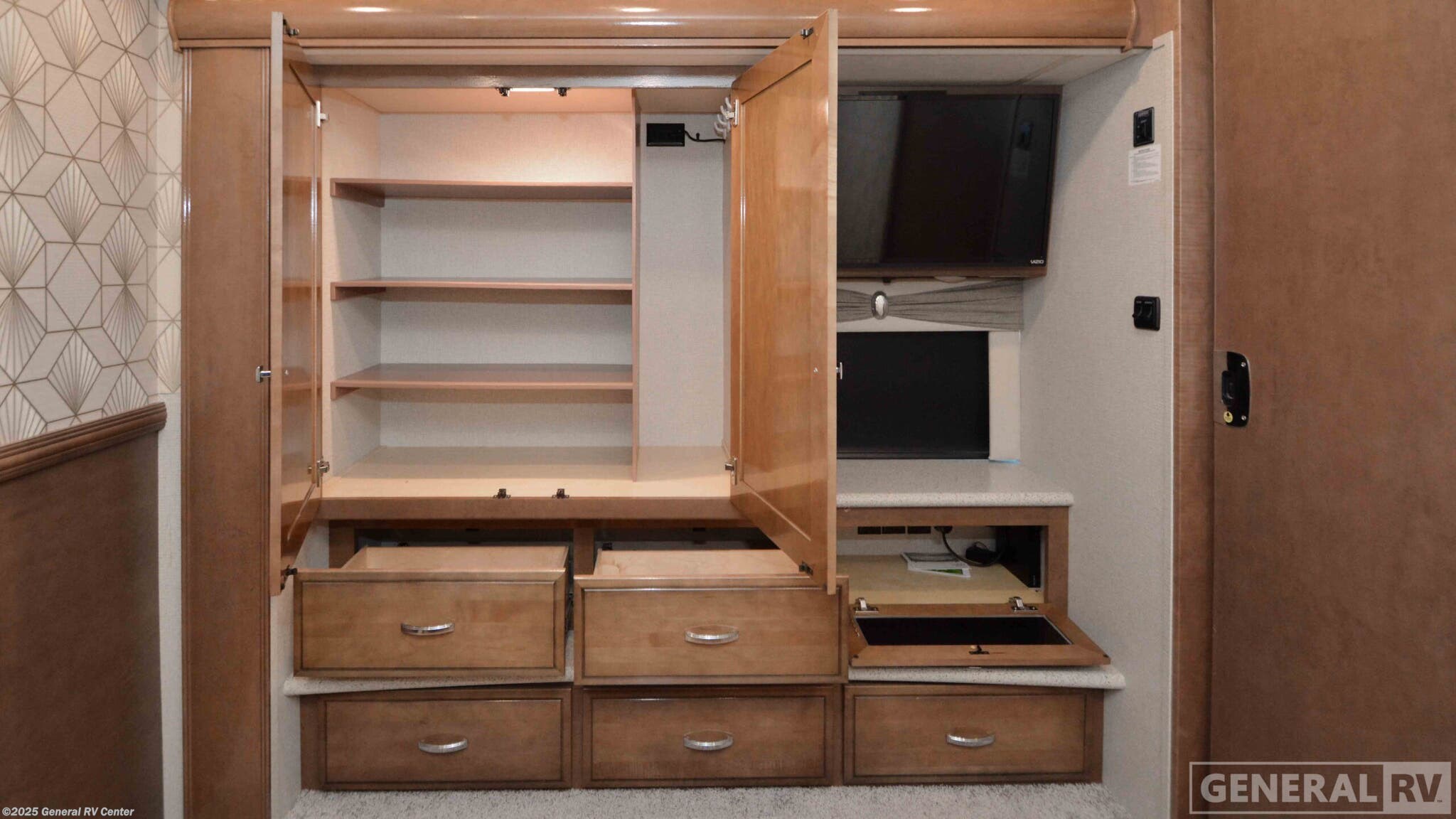 Newmar Bay Star class A motor home 3014 highlights: Full Wall Slide Out Queen Bed 74" Jack Knife Sofa Sleeps Six People Get ready to enjoy any vacation at your leisure with this 3014 Bay Star class A motor home. The full wall slide out gives you the space that you need to fully move around this unit. In the front there is plenty of seating space at the 74" jack knife sofa, the dinette, plus the driver and passenger seats swivel around. At night come retire to the queen bed to get a good night's rest and before you drift off to sleep you may want to watch a little TV while resting in bed. Whether you enjoy traveling or camping with your family of six or maybe grandma and grandpa are ready to set out on a road trip, then this model is ideal for you! Get ready for any road trip with a Newmar Bay Star class A motor home! Along the exterior there is a Masterpiece full painted graphics with clearcoat finish plus a DuraShield protection on the front cap which is sure to turn heads as soon as you enter the campground! Inside each model you will find Calypso Glazed Maple cabinet doors, solid surface counter tops in the bathroom and bedroom, plus Flexsteel deluxe leather sofa and front seats. Your trips are made easier with the 8 cu. ft. Norcold refrigerator and the 30" over-the-range microwave. You won't be lacking for entertainment with the Vizio LED TV and DVD player in the living and bedroom area plus there is a dash radio/CD player. For luxury and convenience you will want a Bay Star class A motor home by Newmar! Come select your model today!