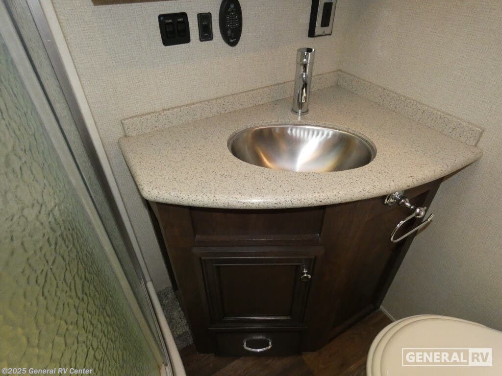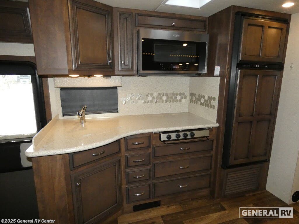 Discover the 2019 Newmar Bay Star 3124, where luxury meets practicality in a beautifully crafted motorhome. This RV is designed to accommodate travelers comfortably, featuring a spacious king bed and versatile convertible sleeping space. The well-appointed front living area invites you to relax with a cozy jack-knife sofa and entertainment-ready setup, perfect for unwinding after a day of adventure. The heart of this motorhome lies in its center kitchen, equipped with a full-size refrigerator and a three-burner cooktop, ensuring you have everything you need to prepare gourmet meals on the road. The center bath offers a stylish radius shower, providing a touch of elegance to your daily routine. Towards the rear, the private bedroom promises restful nights with ample storage and a serene atmosphere. With its robust Ford F-Series Super Duty chassis and a powerful Triton V10 engine, the Bay Star 3124 delivers a smooth and reliable ride. Its impressive cargo capacity allows you to bring along all your essentials, while the powered retractable awning creates the perfect outdoor space for relaxation. Ready to experience this exceptional RV? Visit your nearest General RV dealership for more information.