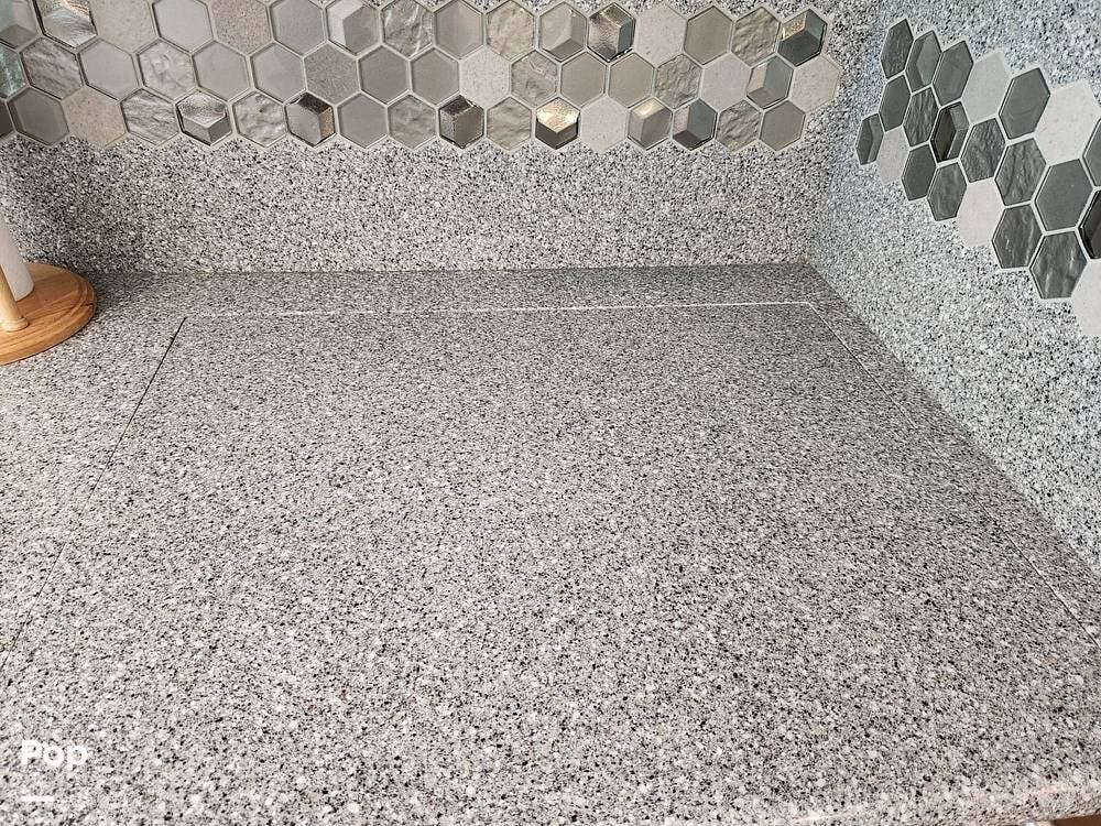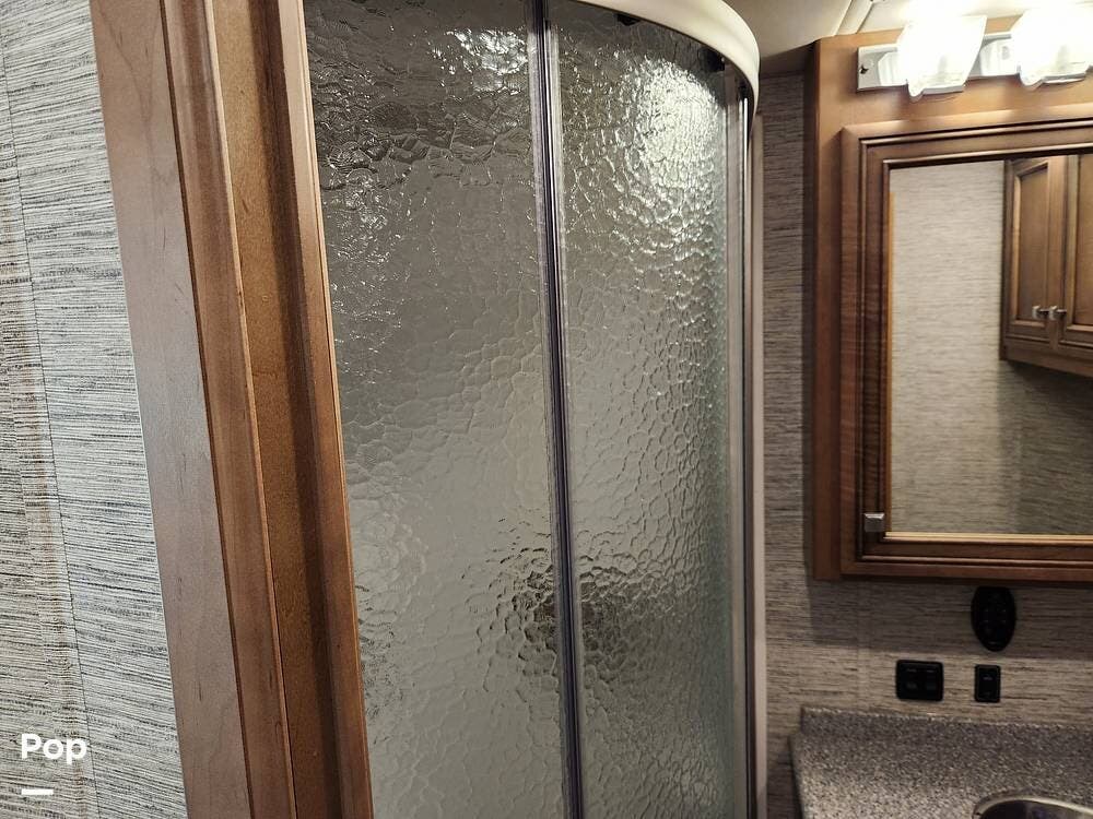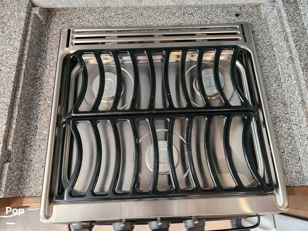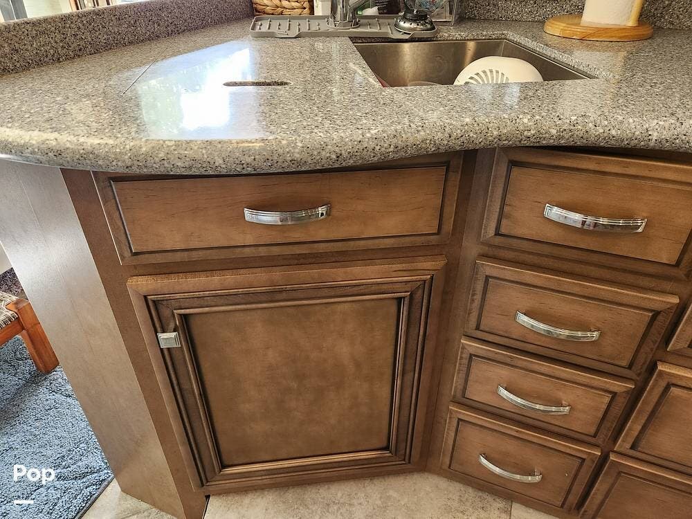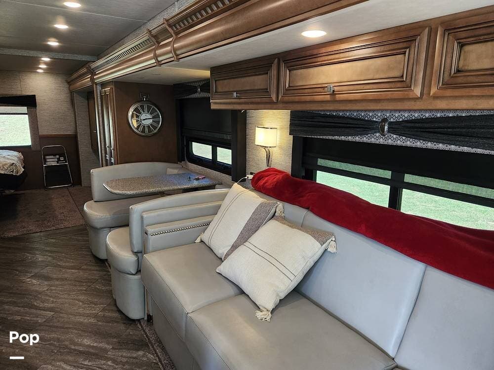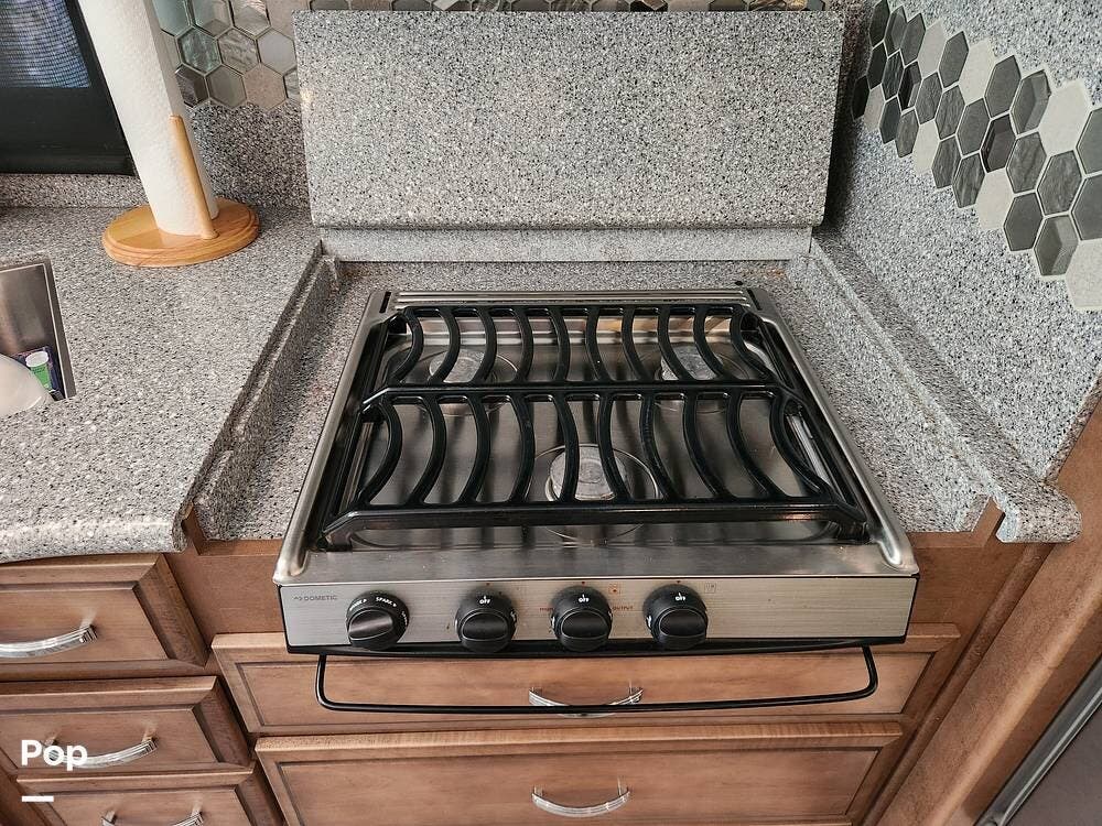 The heart of the coach is its fully equipped galley, designed to meet all your cooking needs on the road. It features a three-burner cooktop, microwave, refrigerator, solid-surface countertops, and ample cabinetry for storing kitchen essentials.