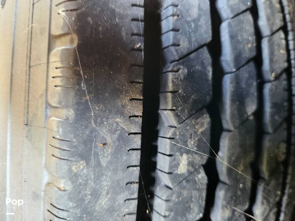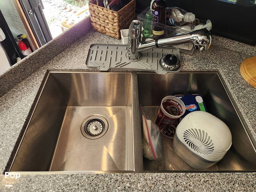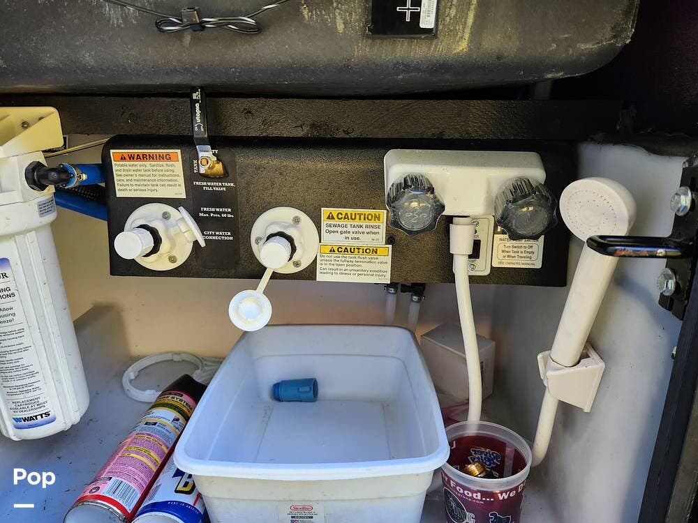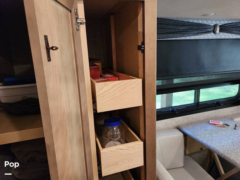 Other standout features include a full bathroom with a shower, a booth dinette, and a sofa for dining and lounging. There is ample storage space both inside and outside for all your gear.