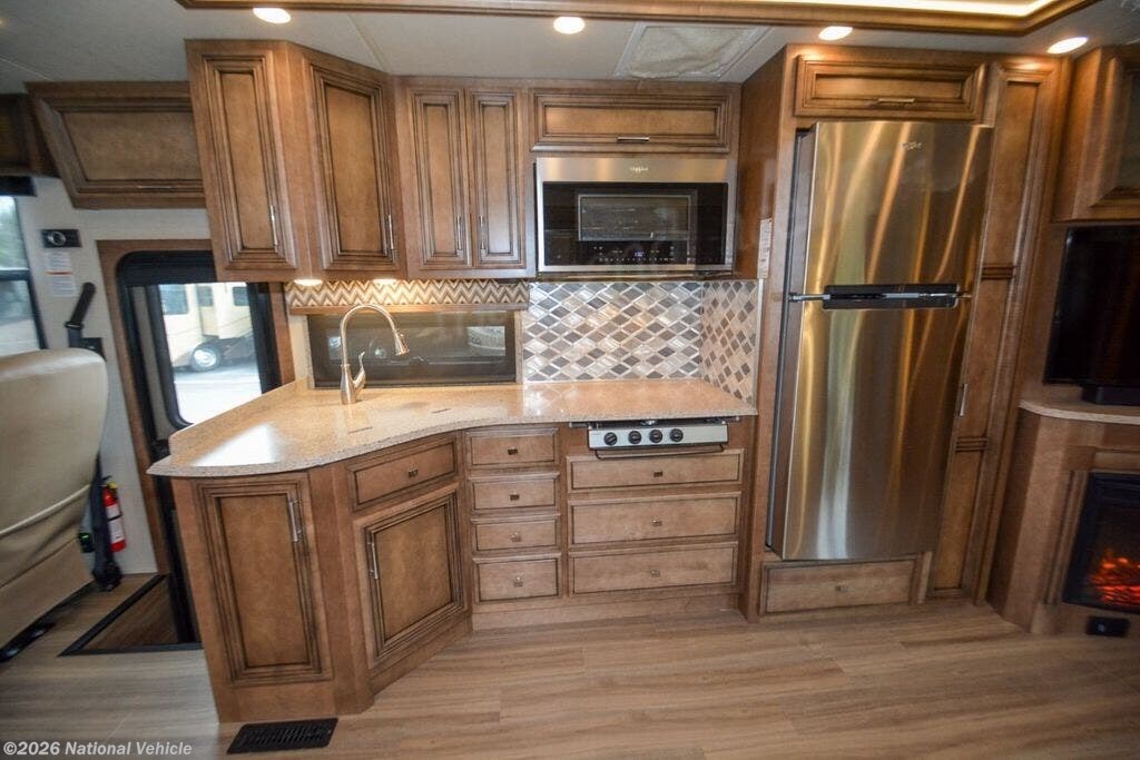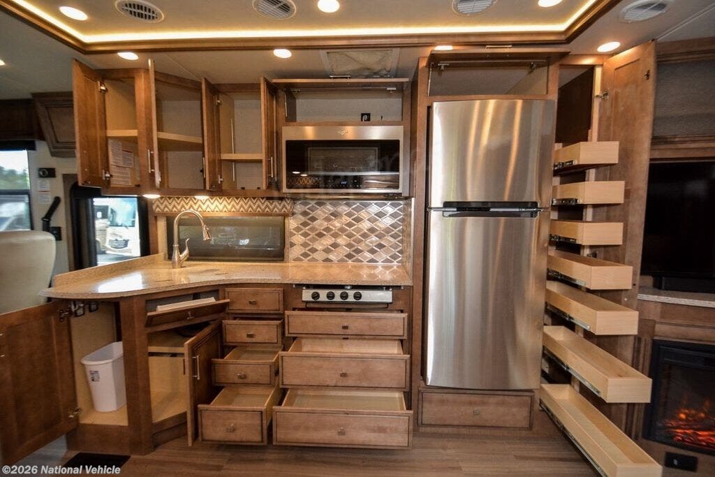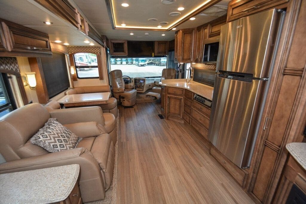 Inside, you?ll find a spacious, residential-style interior designed for extended travel and full-time living. With a bath & 1/2, a washer and dryer, and two plush recliners, this coach delivers both practicality and luxury. Four TVs are strategically placed throughout the living and sleeping areas, providing entertainment wherever you relax.
