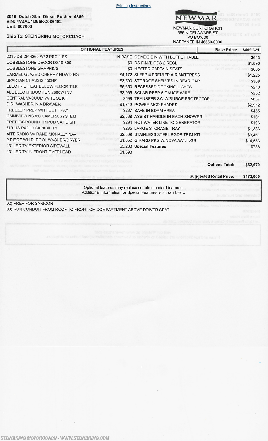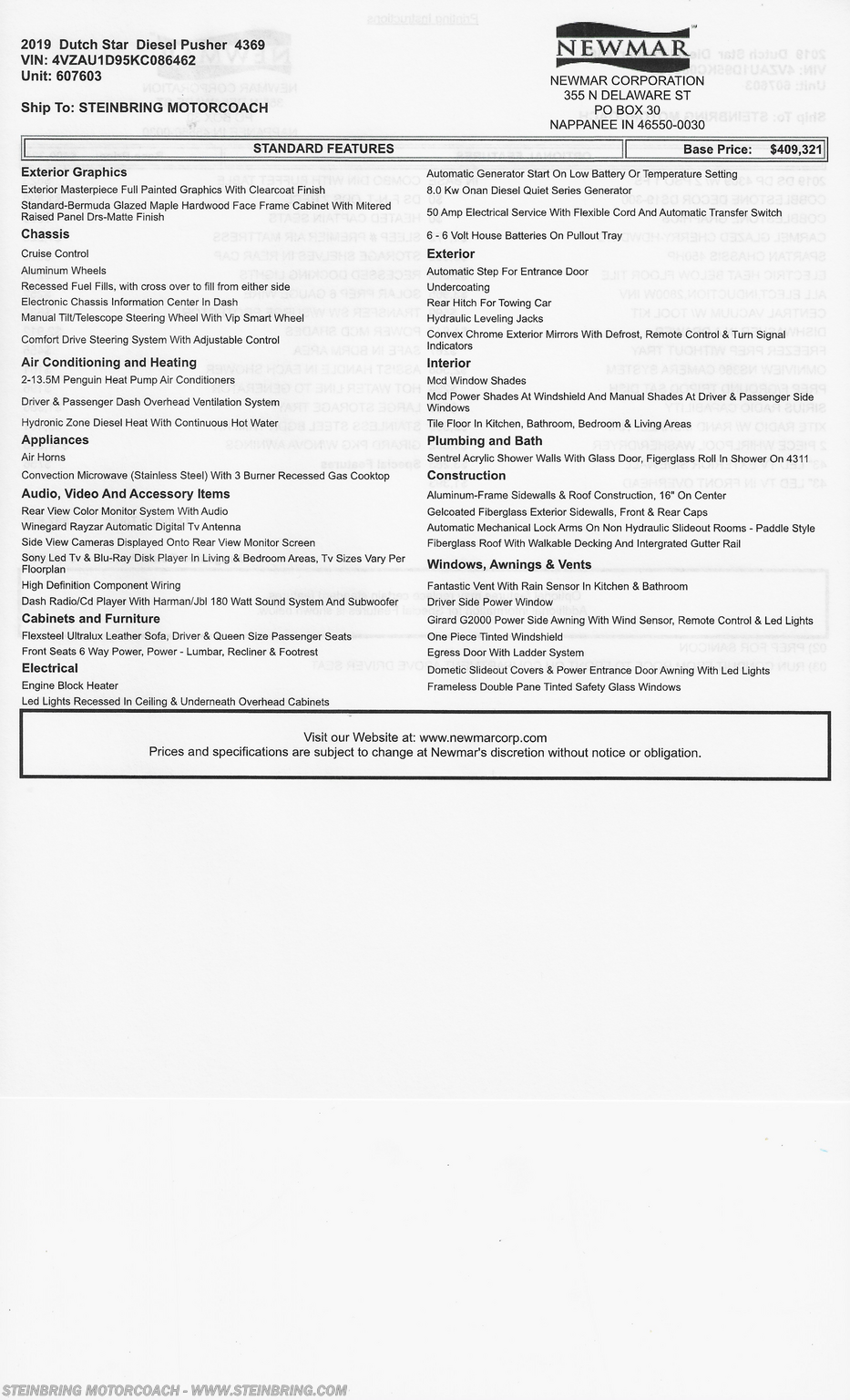 Request More Info on this 2019 Newmar Dutch Star 4369 Offered for sale by Steinbring Motorcoach