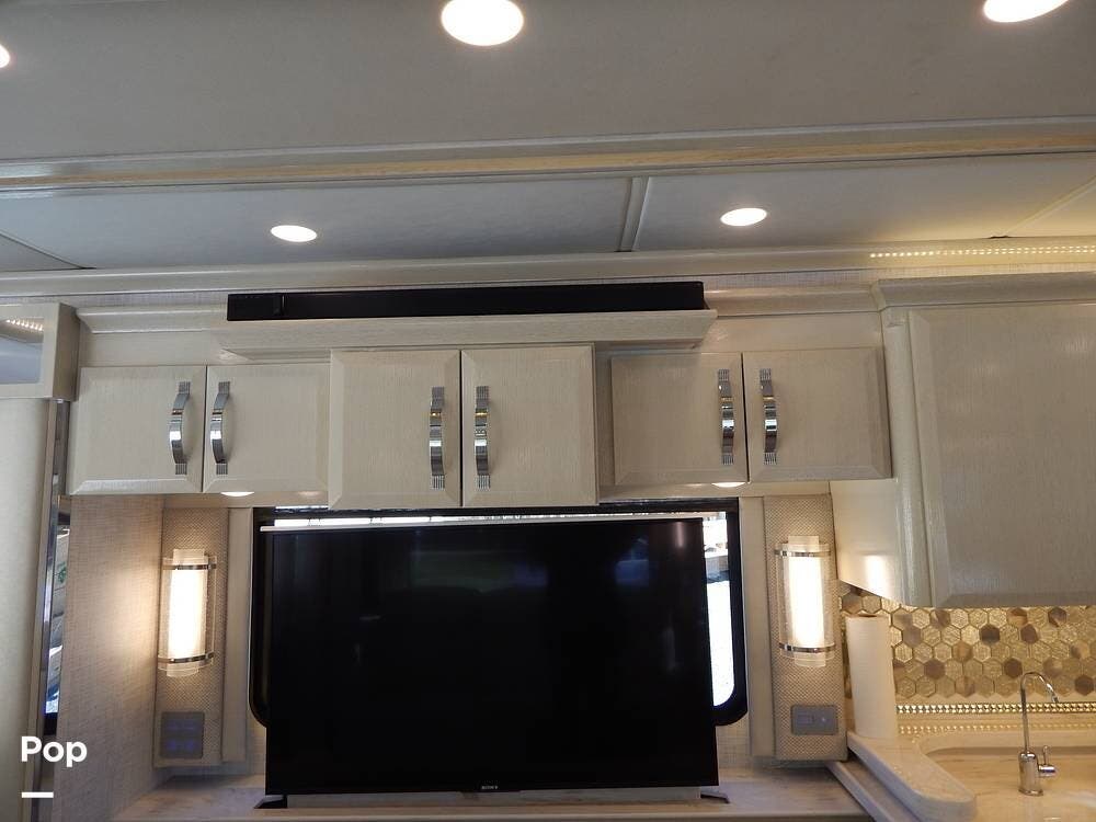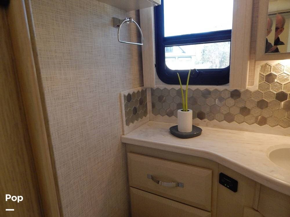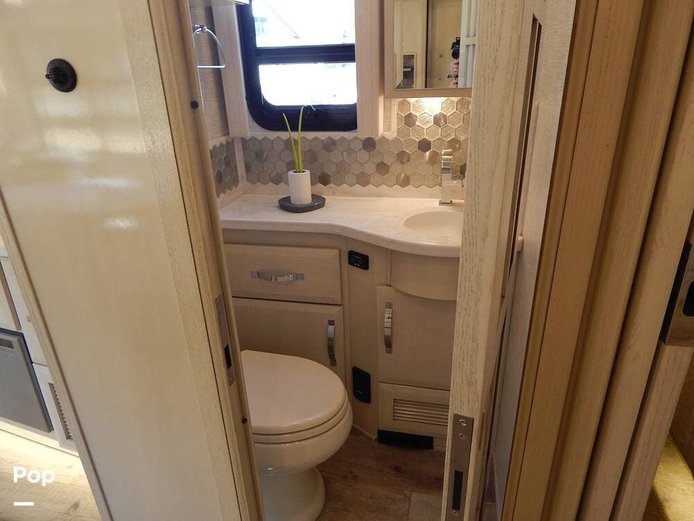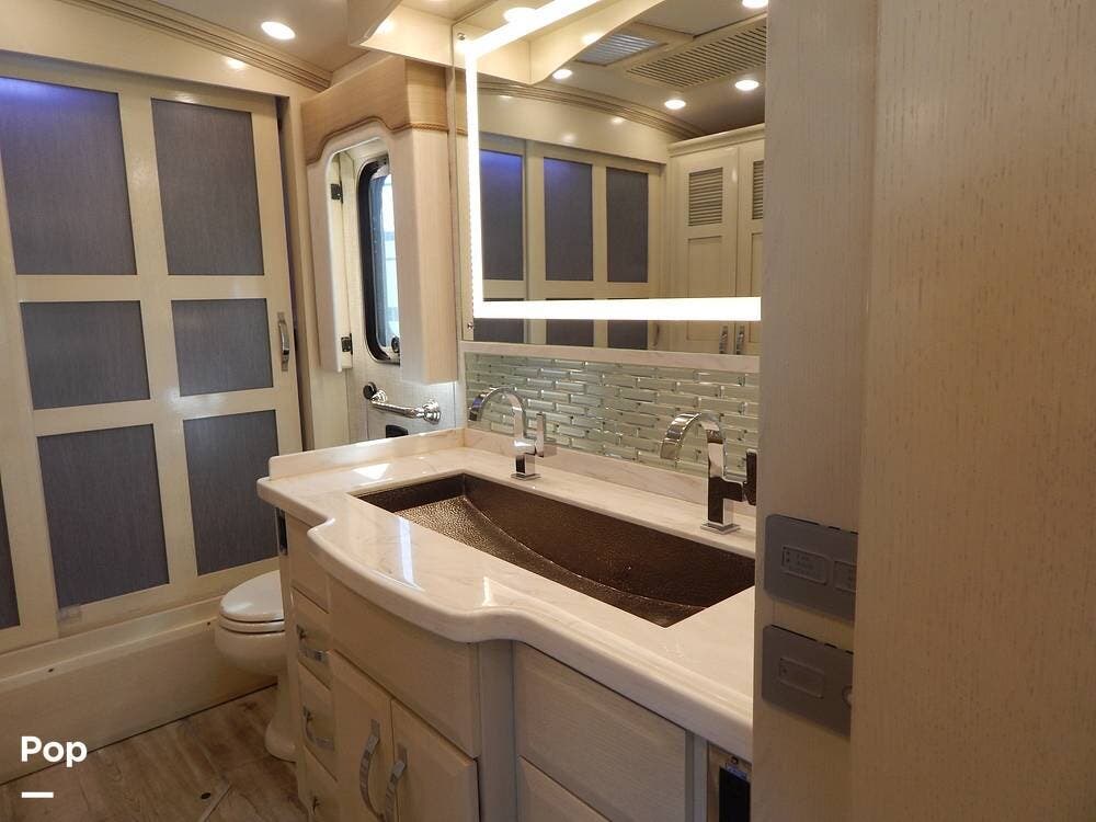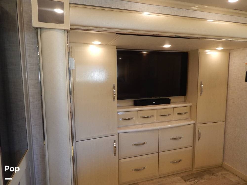 Midship, a well-appointed half bath, adds welcome convenience for guests. Entertainment is thoughtfully integrated, with Sony 4K UHD TVs positioned above the passenger seat, in a concealed lift behind the sofa, and in the exterior entertainment bay ideal for enjoying your go-to game or show wherever you're parked. A Bose SoundTouch 300 soundbar rounds out the experience.