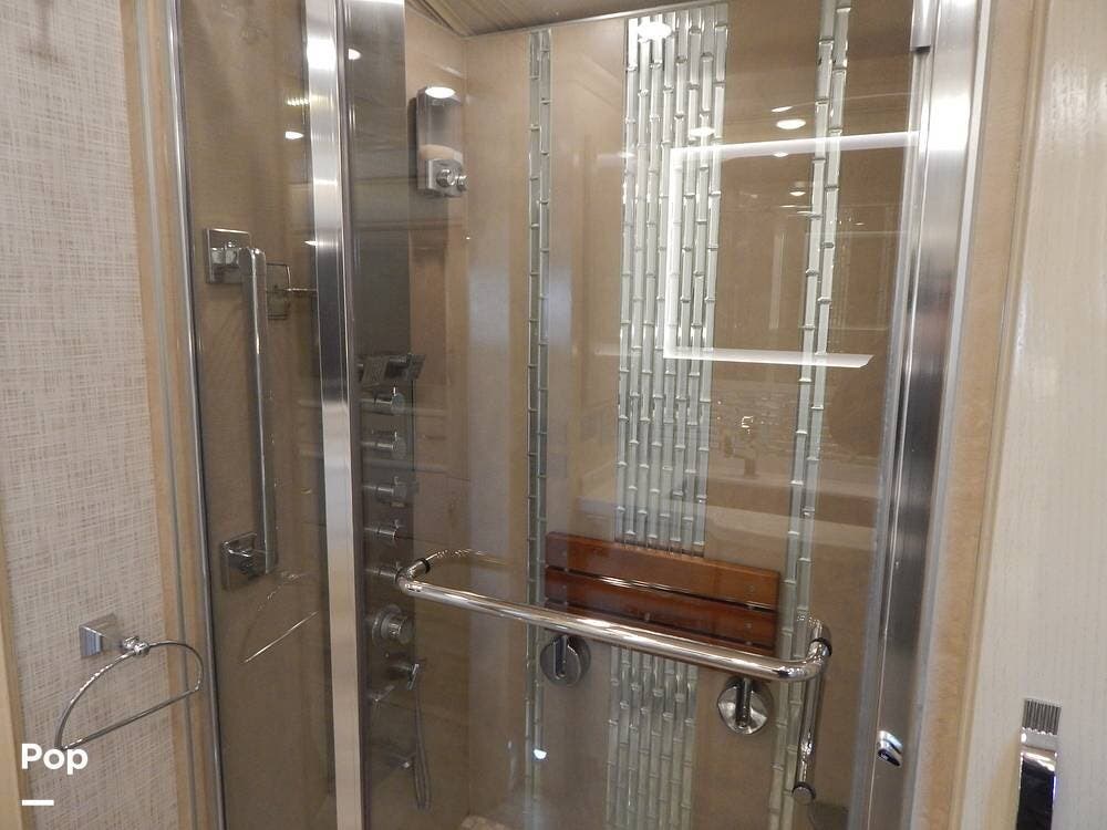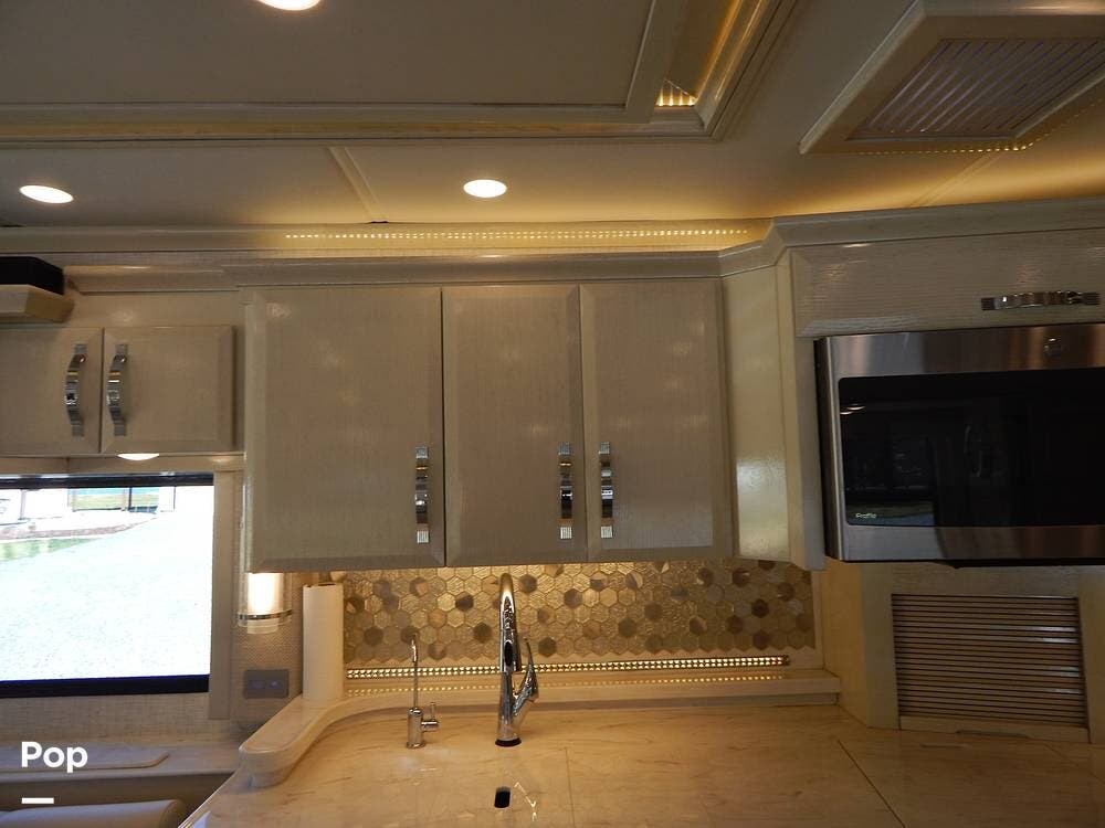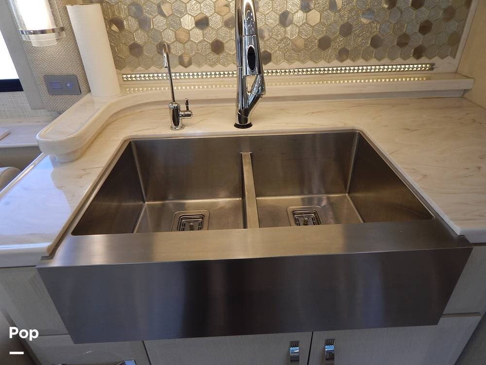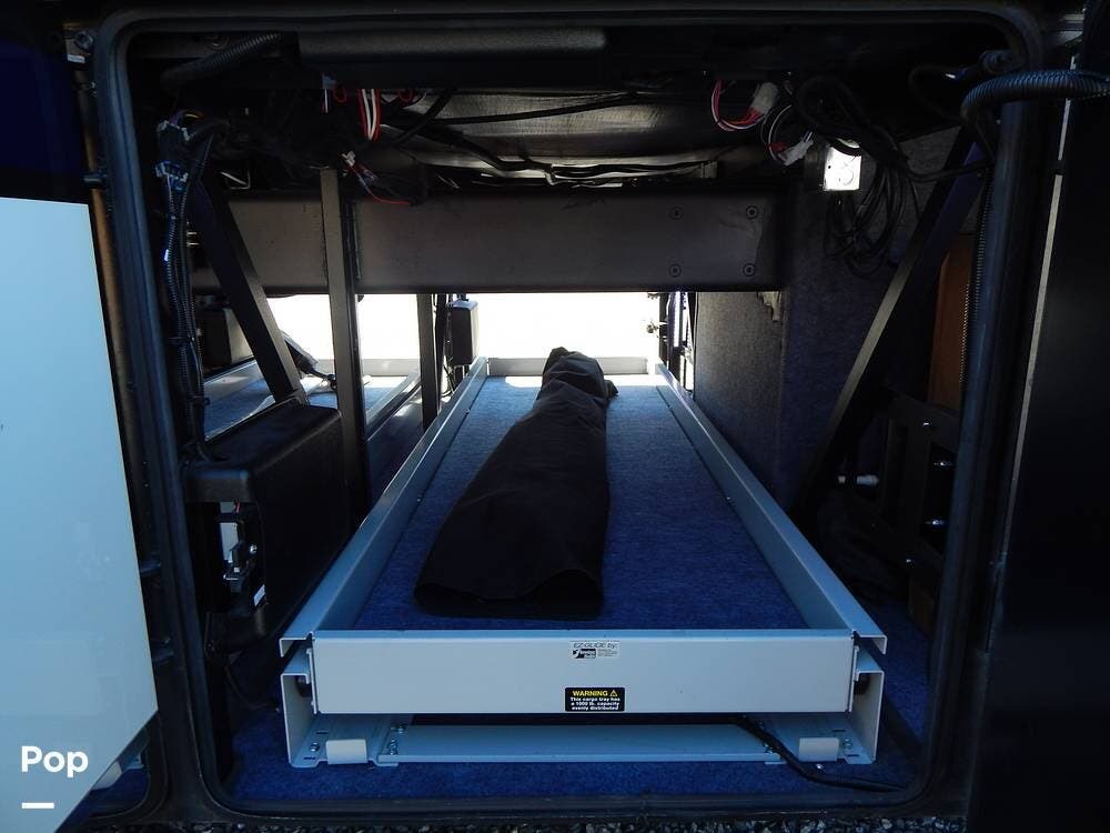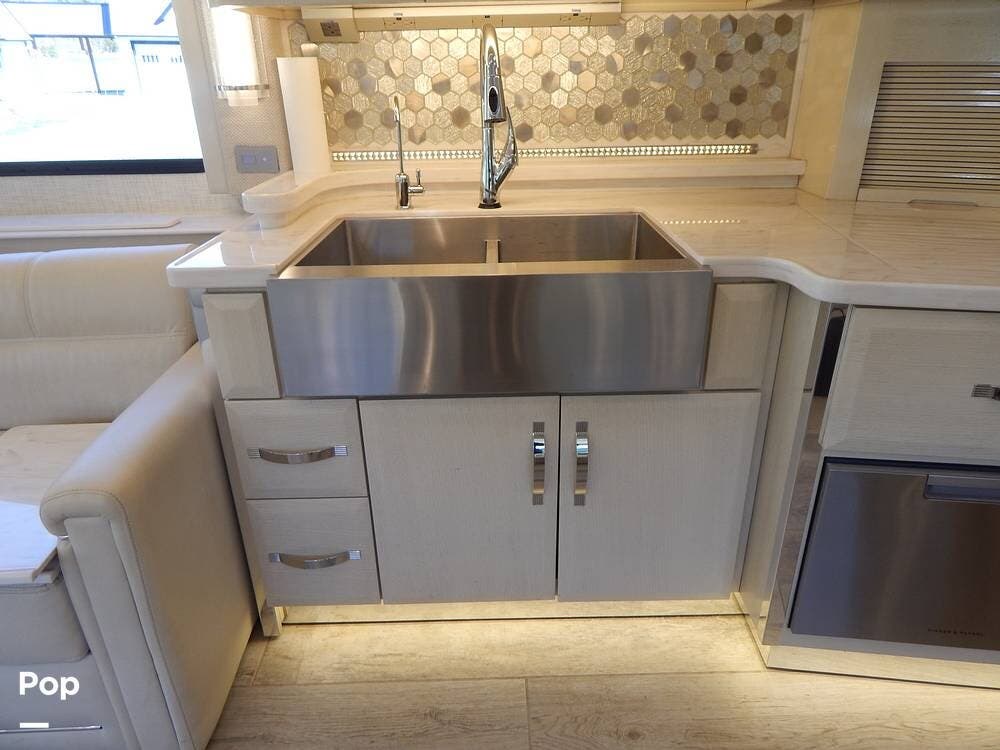 Midship, a well-appointed half bath, adds welcome convenience for guests. Entertainment is thoughtfully integrated, with Sony 4K UHD TVs positioned above the passenger seat, in a concealed lift behind the sofa, and in the exterior entertainment bay ideal for enjoying your go-to game or show wherever you're parked. A Bose SoundTouch 300 soundbar rounds out the experience.