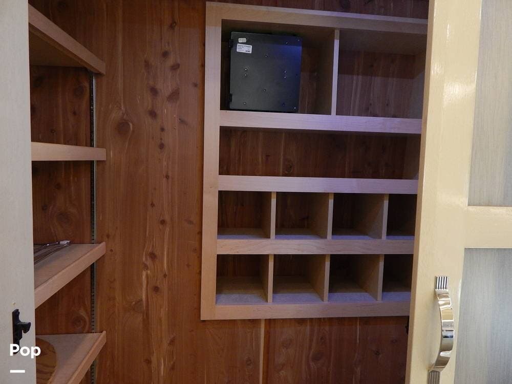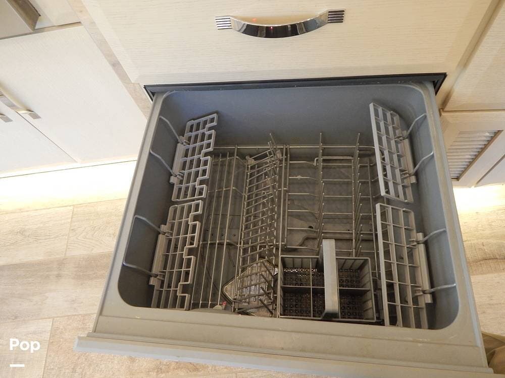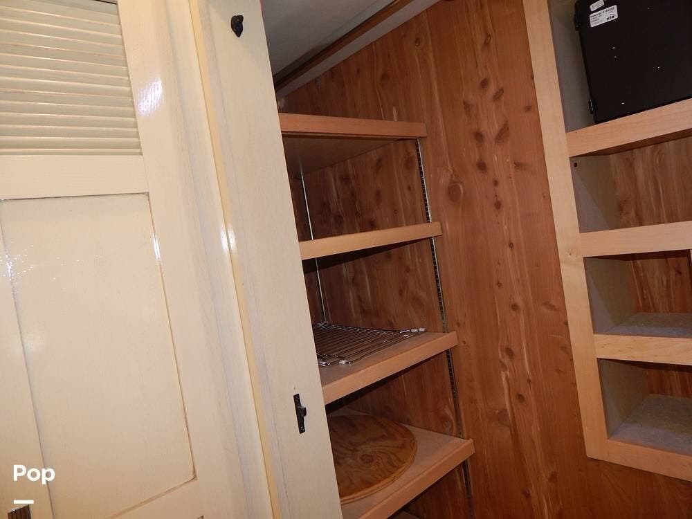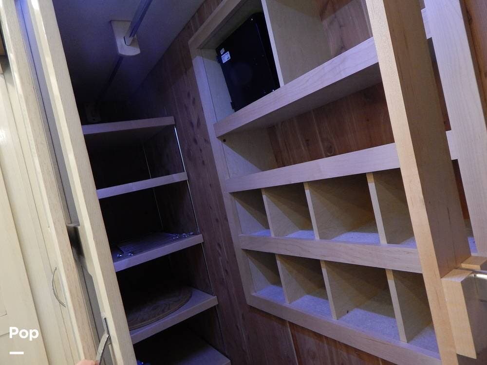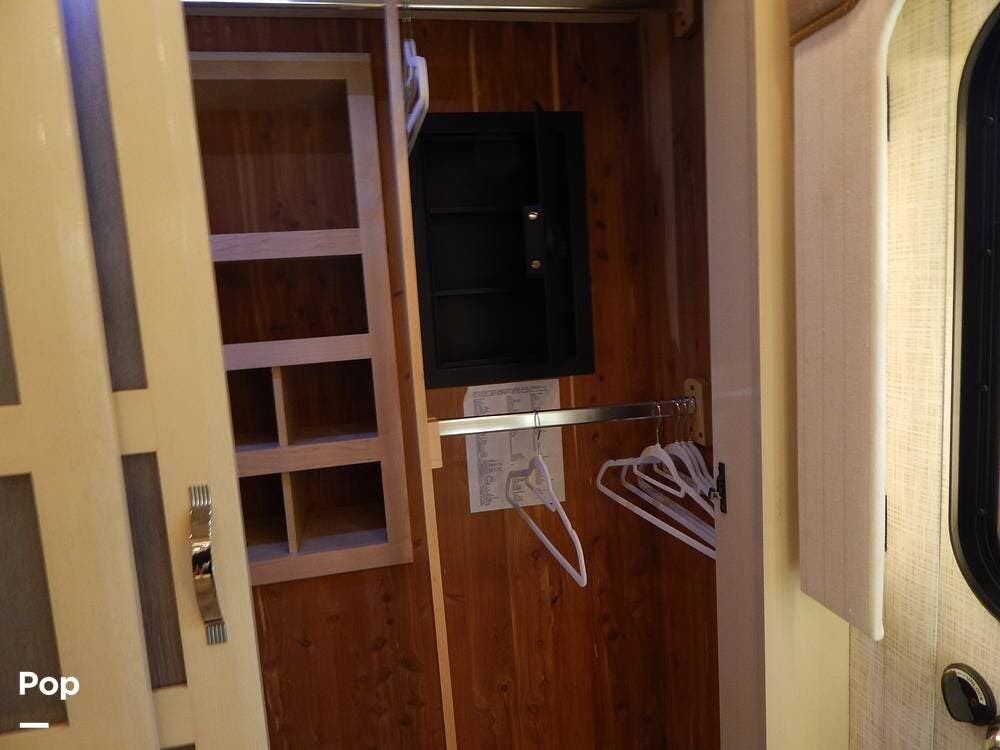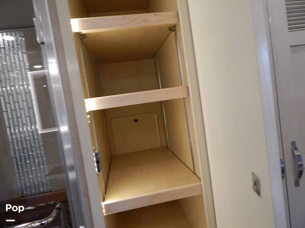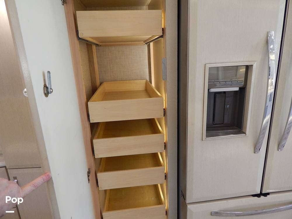 Storage is equally well considered, with slide-out shelves and slide locks, plus a dedicated travel latch that keeps cabinetry secure while underway.