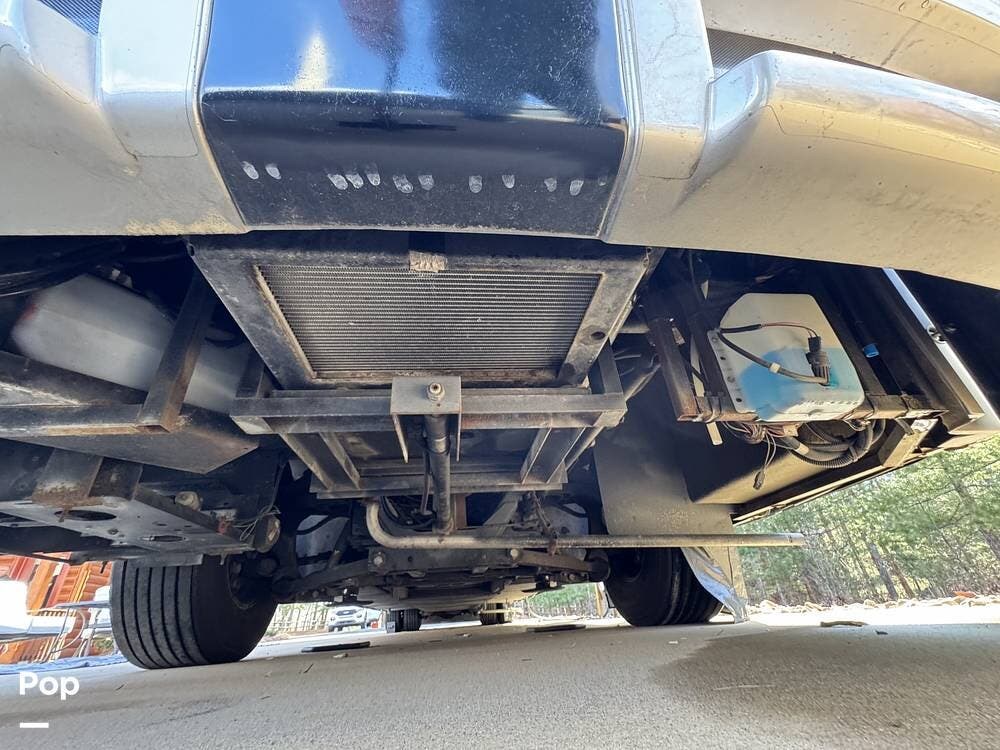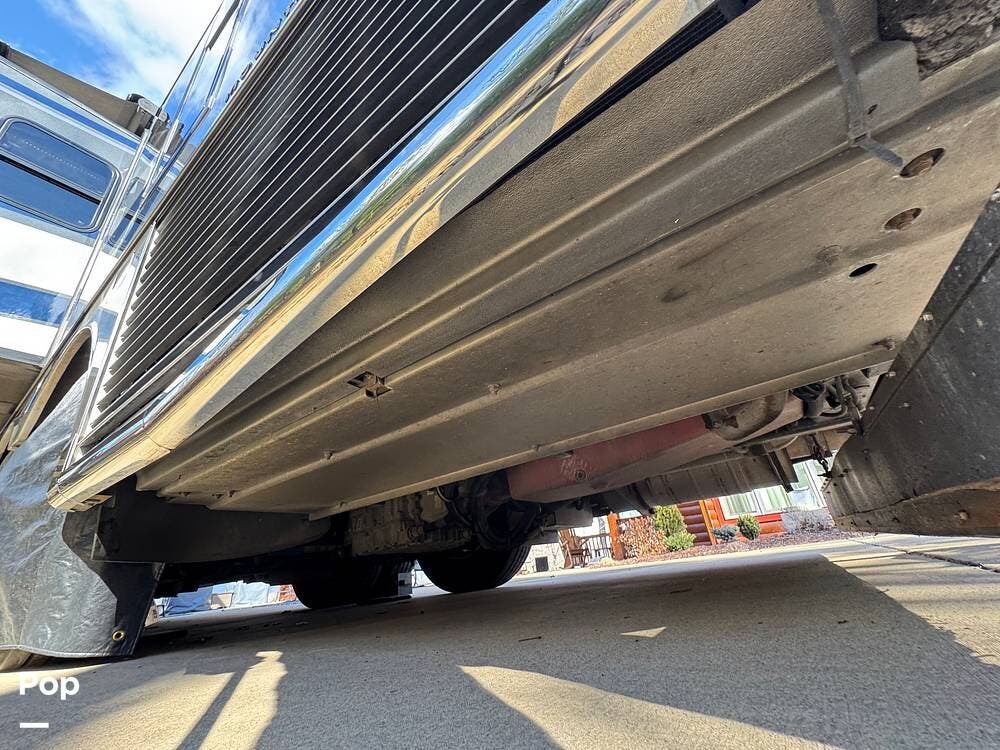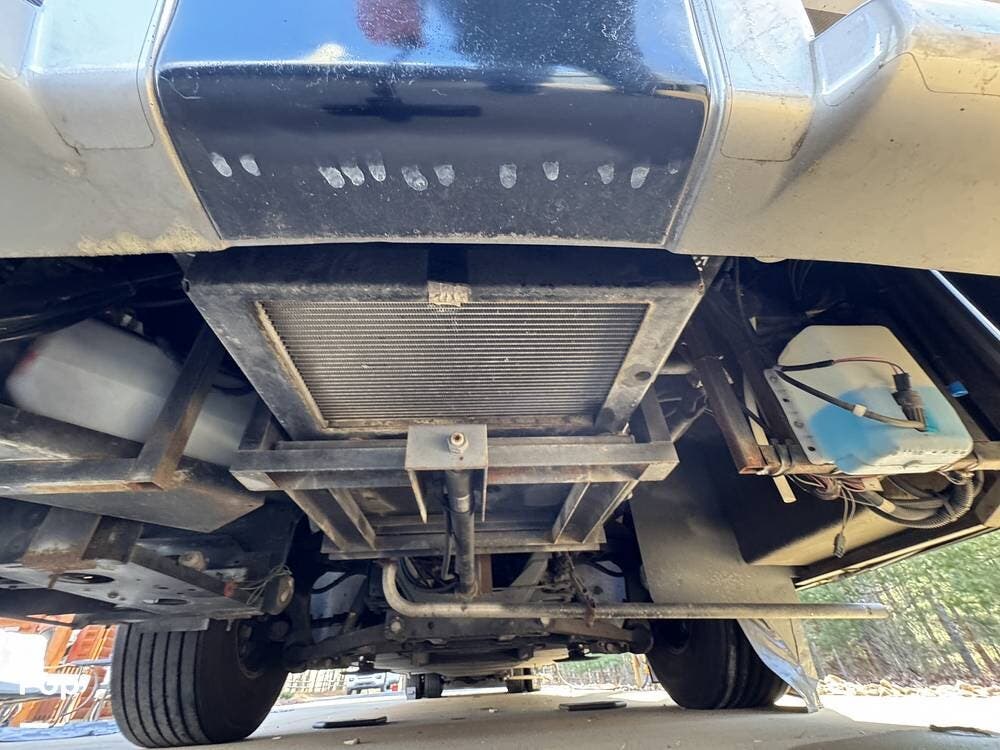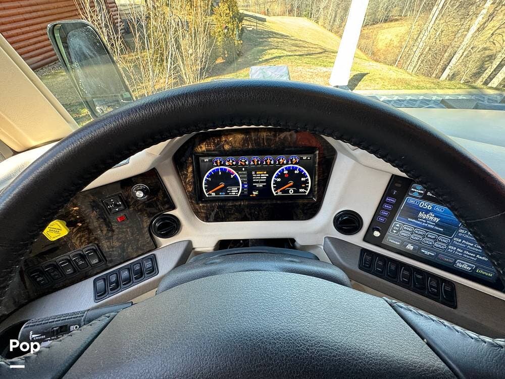 The Mountain Aire's weight and chassis design minimize lane disturbance from passing traffic. Adaptive cruise control and collision mitigation systems are integrated, automatically managing speed in traffic conditions. Engine braking provides strong downhill control on steep grades, reducing brake wear. An engine block heater is installed for cold-weather operation, and routine service has been performed as part of regular maintenance.