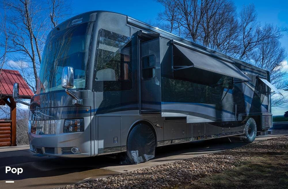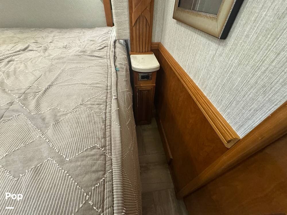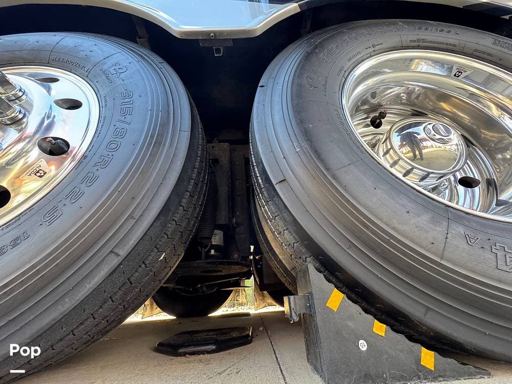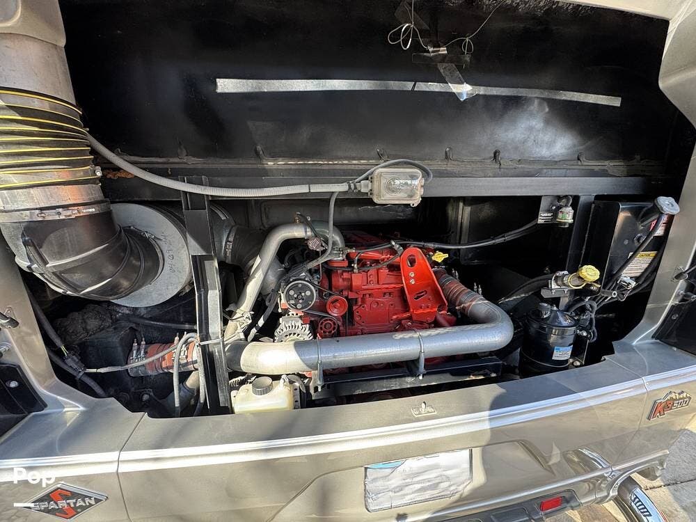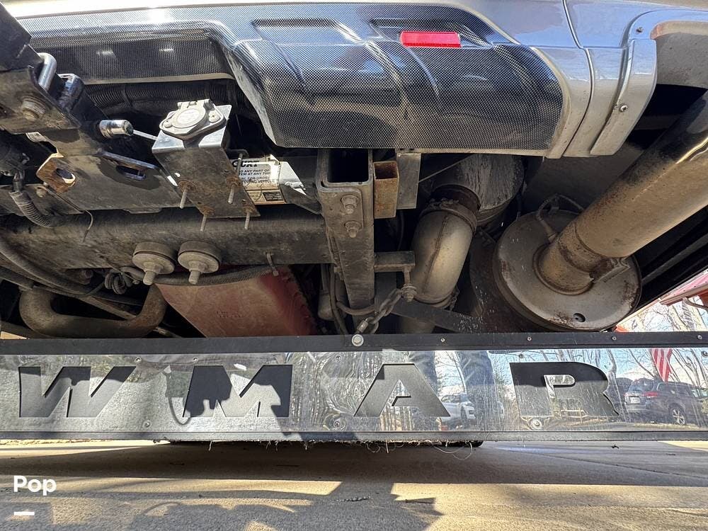 The Mountain Aire's weight and chassis design minimize lane disturbance from passing traffic. Adaptive cruise control and collision mitigation systems are integrated, automatically managing speed in traffic conditions. Engine braking provides strong downhill control on steep grades, reducing brake wear. An engine block heater is installed for cold-weather operation, and routine service has been performed as part of regular maintenance.