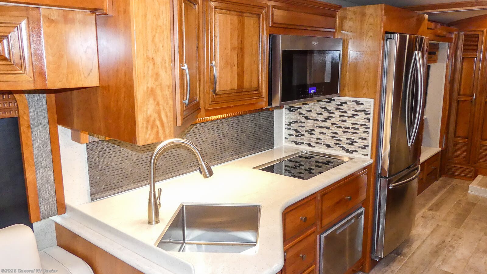 Newmar New Aire class A motor home 3345 highlights: Triple Slide Outs Rear Bedroom Fold and Tumble Sofa Full Wall Slide Out Are you ready to camp in style and comfort? With all of the modern conveniences inside this New Aire 3345 you will surely enjoy your time away from home. The full wall slide out along the door side opens up this model and gives you the maximum amount of floor space. When you are ready to visit with your family then you will find seating at the driver and passenger seats which swivel around, the Fold and Tumble sofa, plus the dinette. This kitchen area features plenty of room to work plus there is a stainless steel three door residential refrigerator for your perishables. In the rear bedroom you will get a good night's sleep on the bed plus there is plenty of storage with the large wardrobe and the dresser. The New Aire is a premium coach built to deliver plenty of luxuries in a smaller package. These class A motor homes are built on a Freightliner XCS chassis and have a 360-horsepower Cummins diesel engine. These models features a keyless ignition with a push button start and a RoadWatch safety package. You will love the polished porcelain tile throughout. The slide out fascia designs feature back-lighting throughout each coach plus there is a Bose Solo 5 sound bar. In the kitchen you will find a large residential stainless steel three door refrigerator, a recessed portable induction cooktop, and in the front living area there are beautiful designer ceiling panels and the rear bedroom has a cathedral ceiling that adds an additional 6". You will also enjoy the WiFiRanger Skypro pack router and so much more! Wherever your travels take you, you will want a New Aire to arrive in style and stay in comfort!